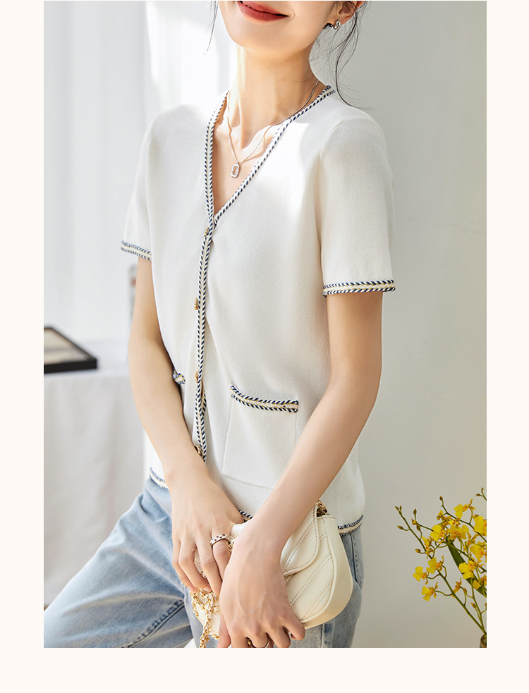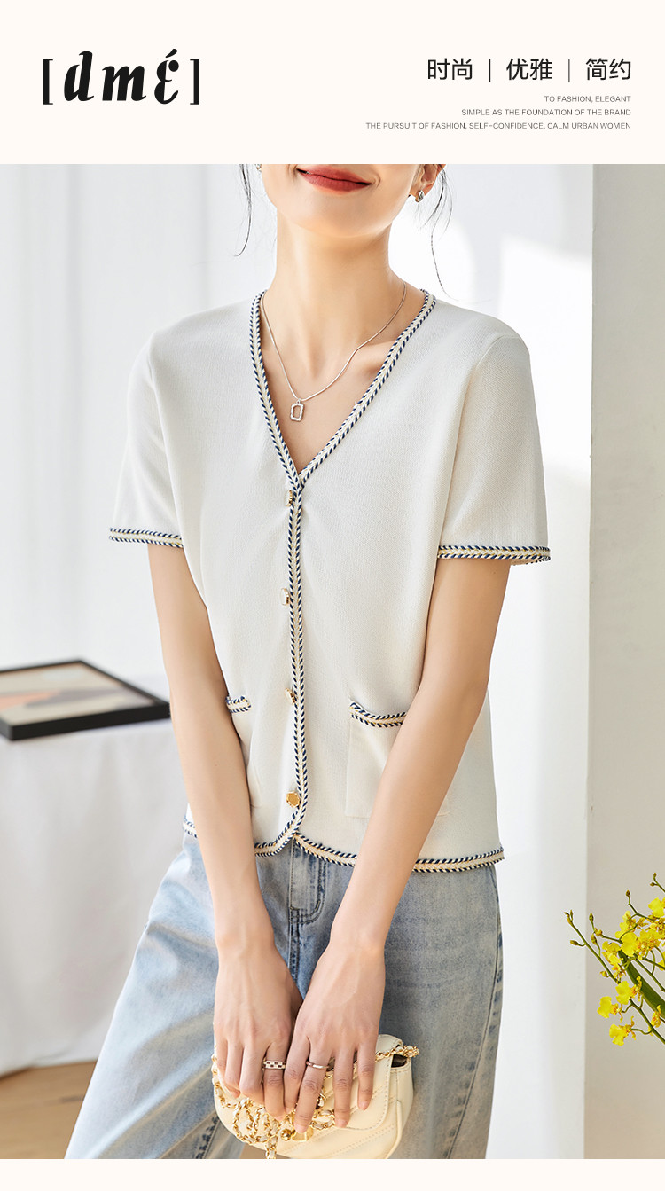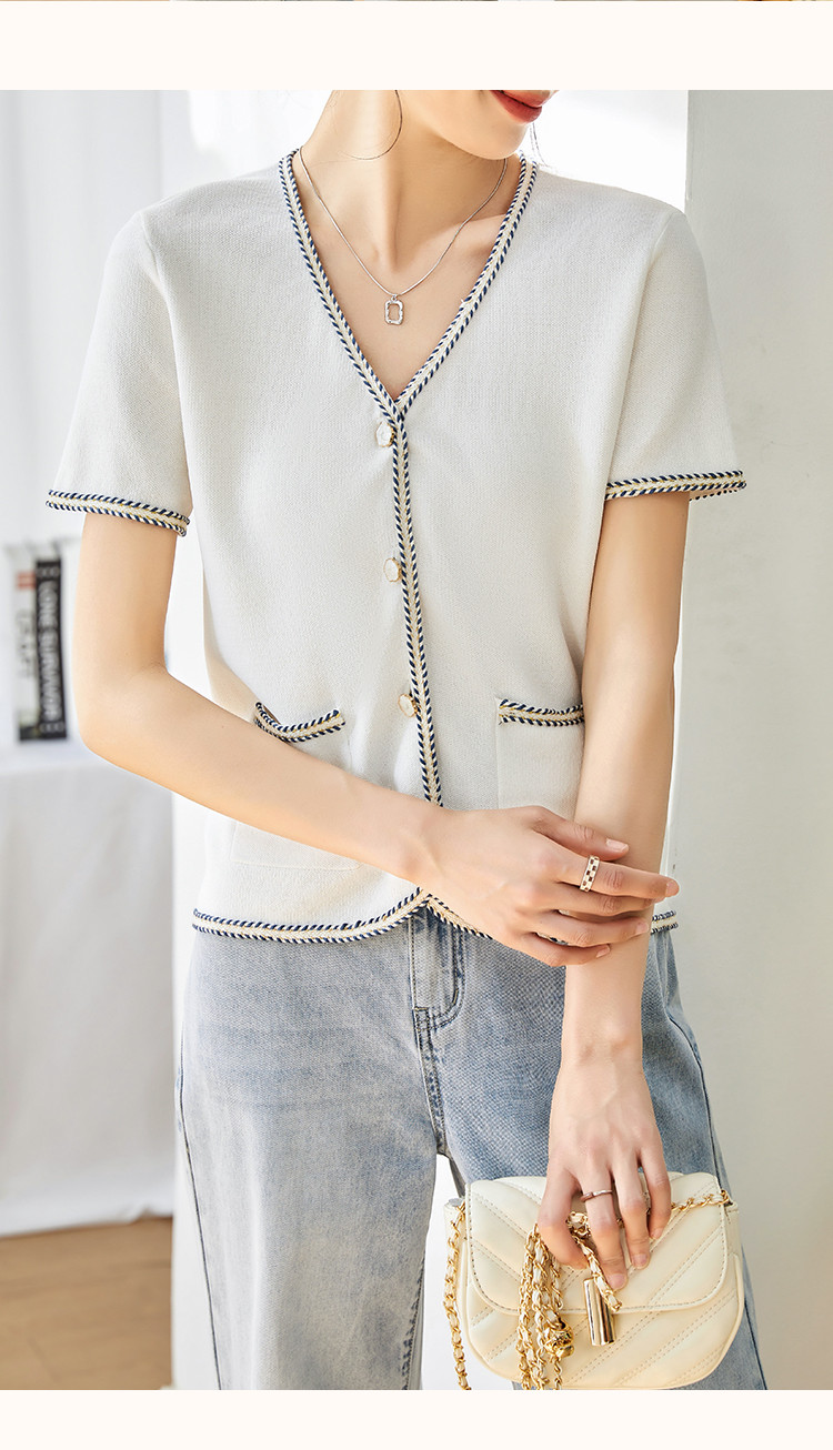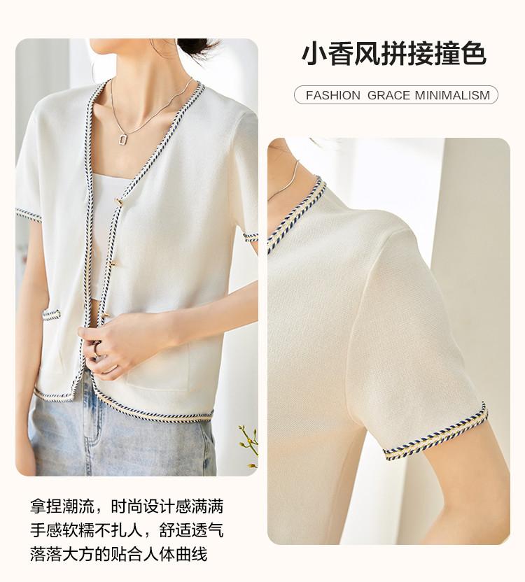 商品名称:【气质短袖开衫】夏季优雅简约短袖拼接舒适遮肉针织衫女上衣 584129
