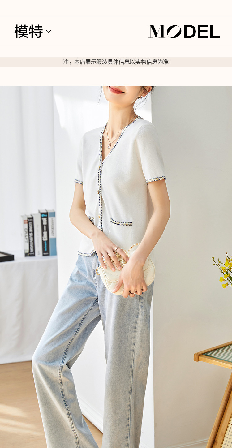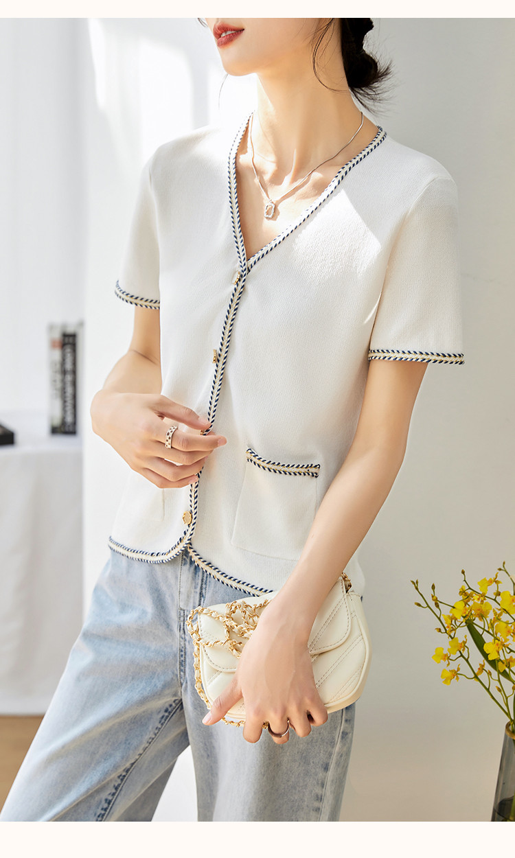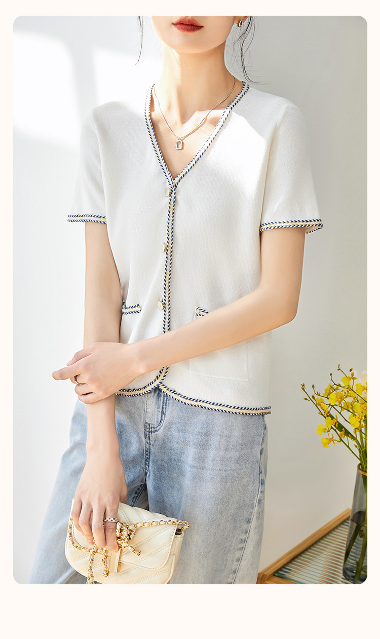 商品名称:【气质短袖开衫】夏季优雅简约短袖拼接舒适遮肉针织衫女上衣 584129