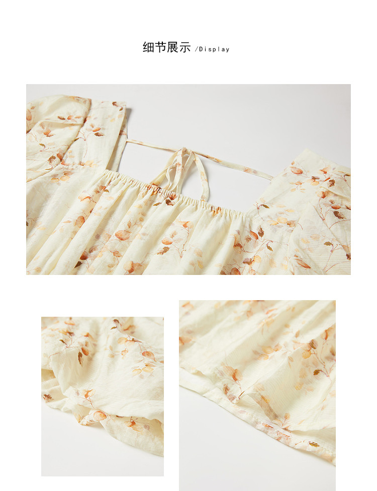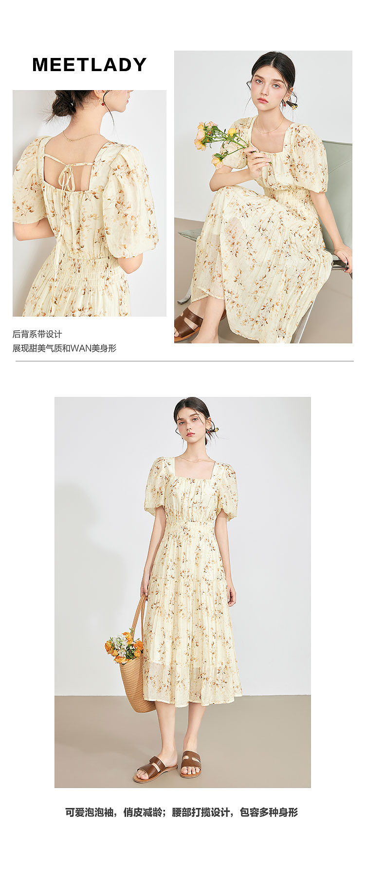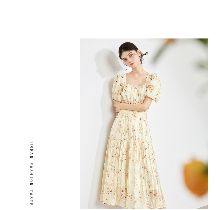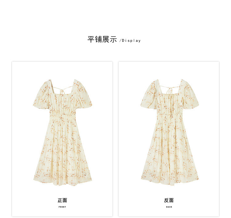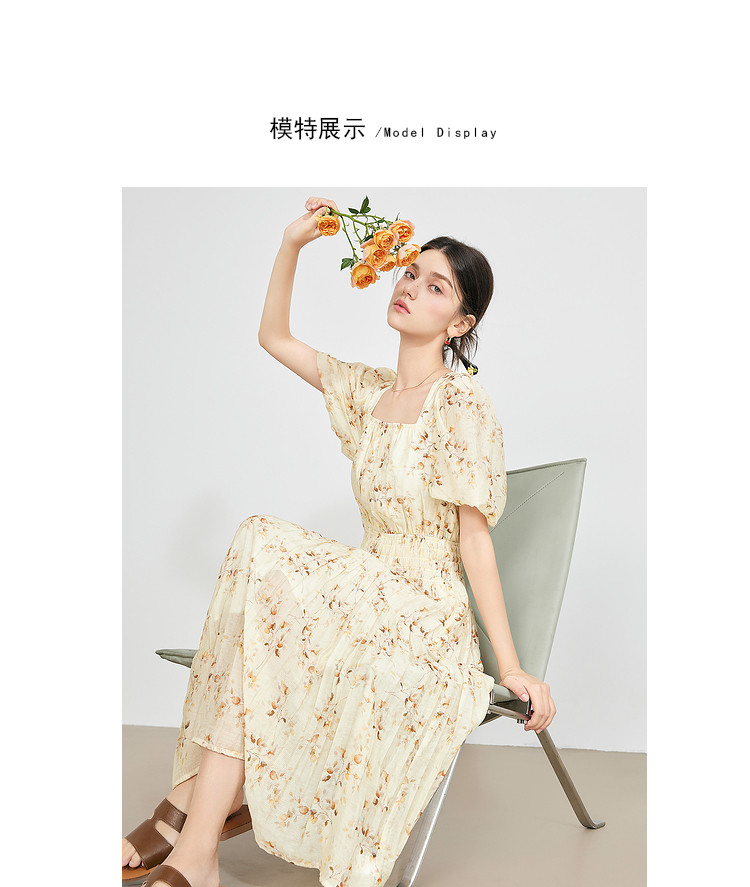 商品名称:【2024夏季】优雅碎花雪纺连衣裙女松紧收腰方领泡泡袖裙子 097108
