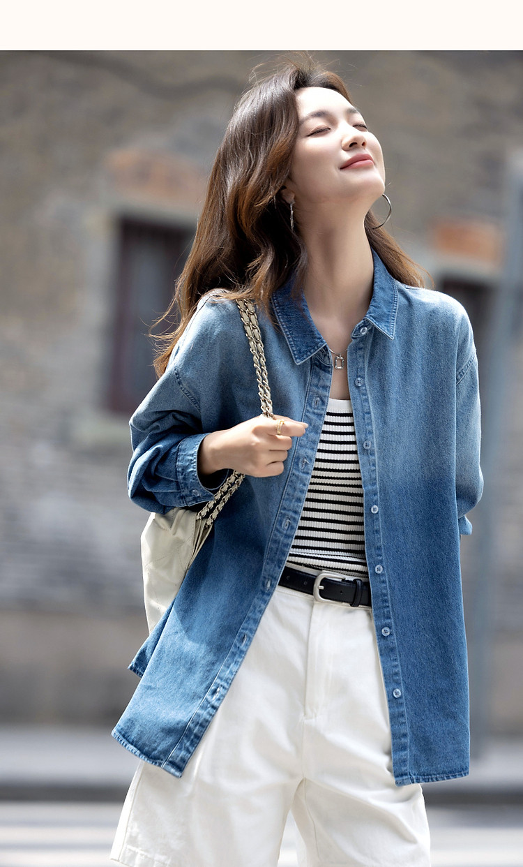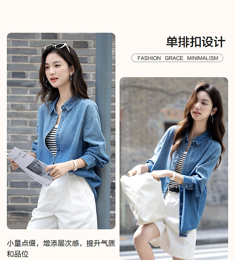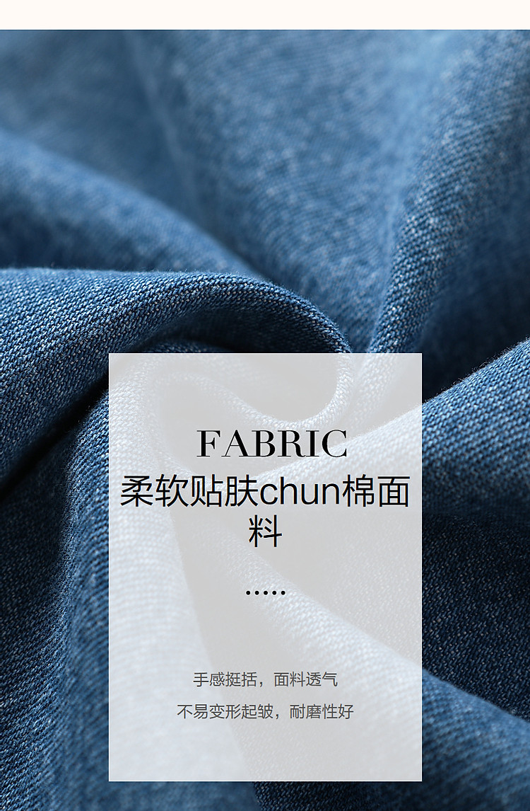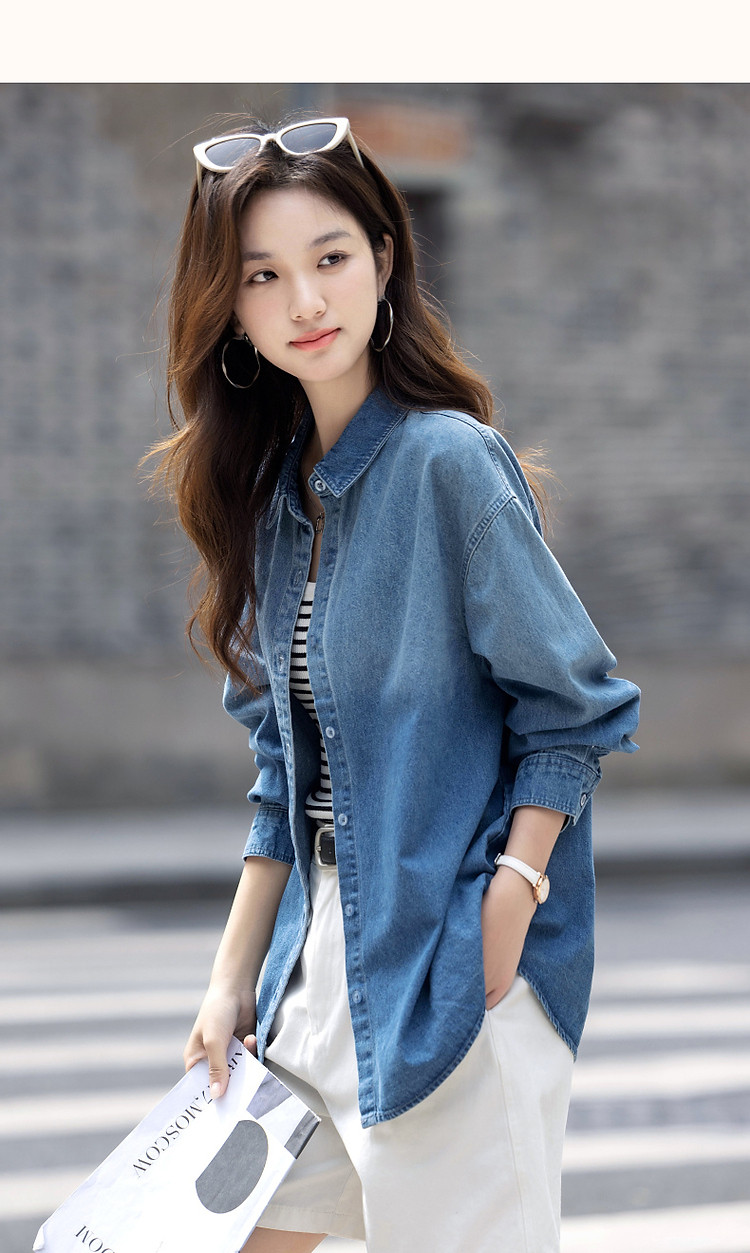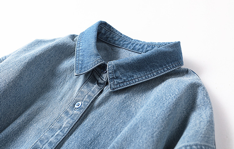 商品名称:【牛仔计划】秋款纯棉舒适遮肉高频好搭中长款牛仔衬衫式外套女 048193