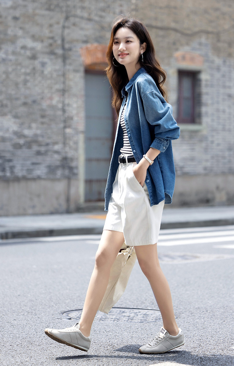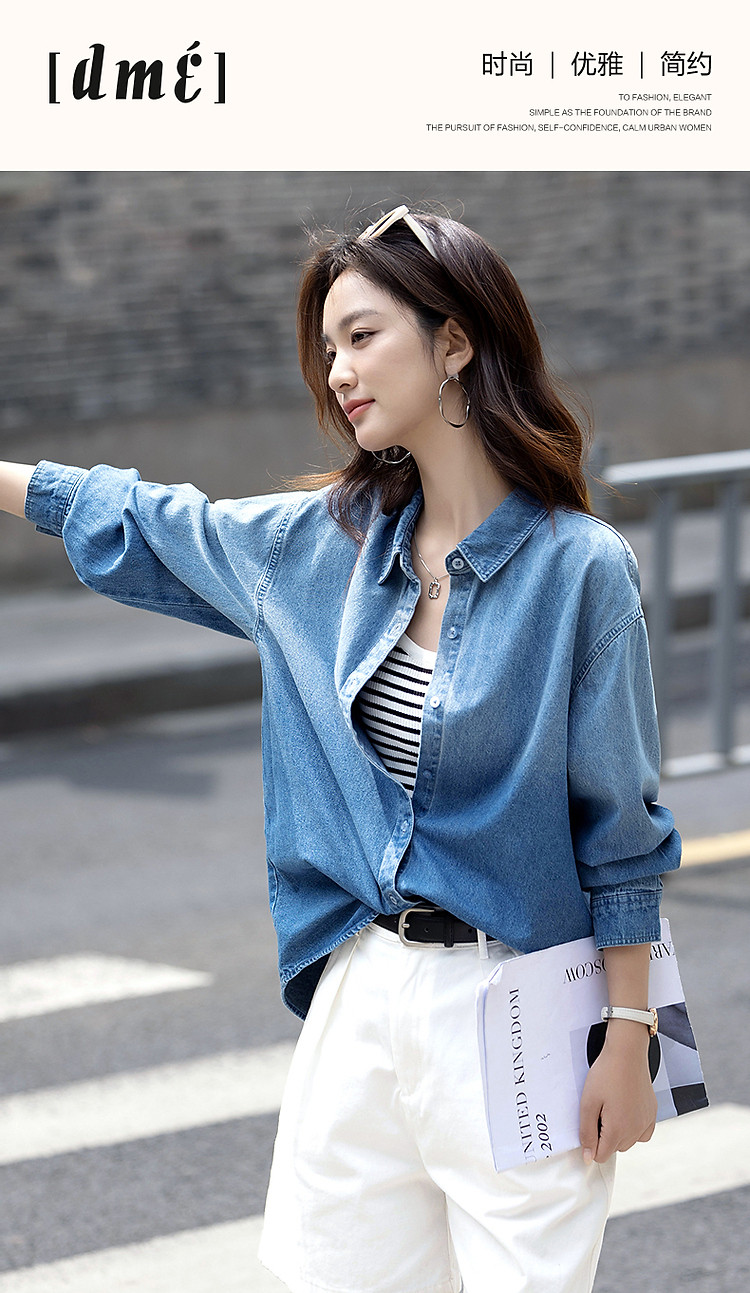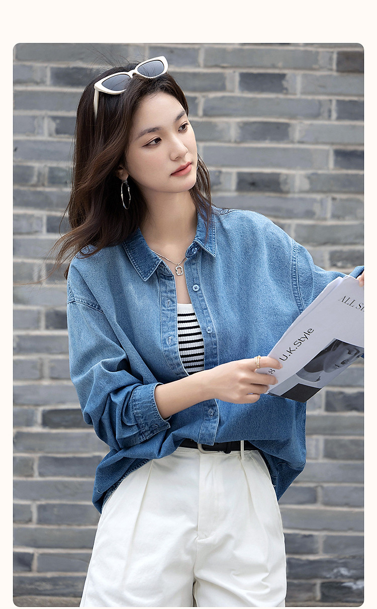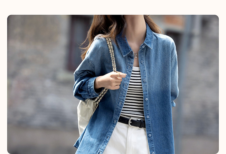 商品名称:【牛仔计划】秋款纯棉舒适遮肉高频好搭中长款牛仔衬衫式外套女 048193