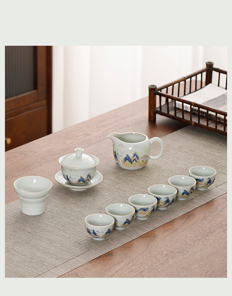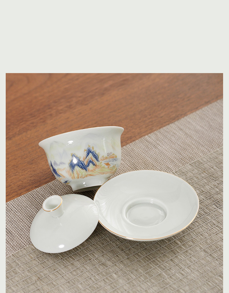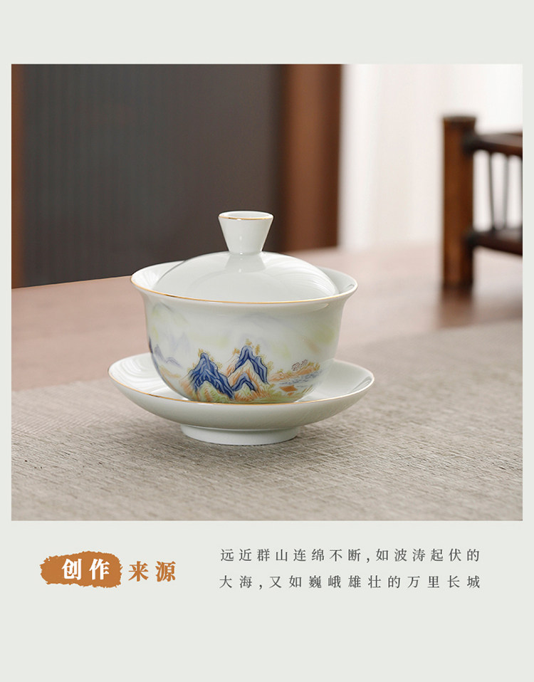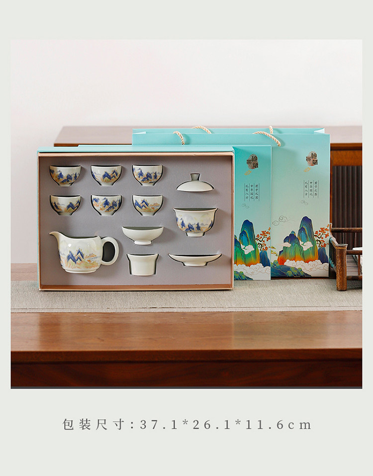 商品名称:八方礼万里河山10入盖碗套组家用白瓷茶具套装