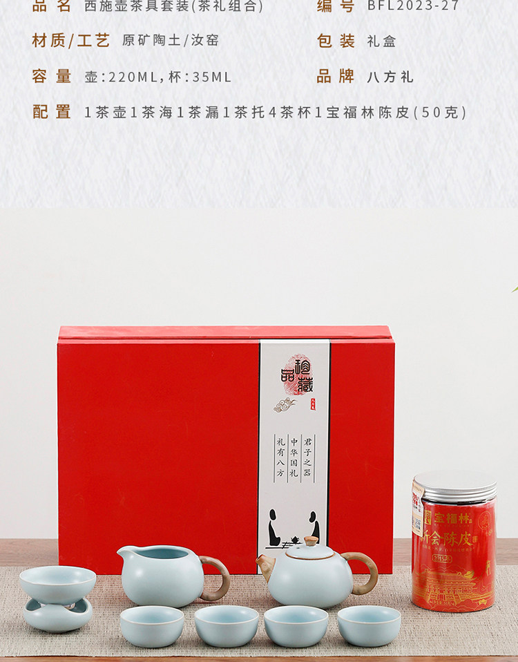 商品名称:八方礼汝窑西施壶茶具宝福林陈皮套装家用办公室送礼