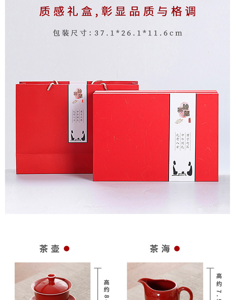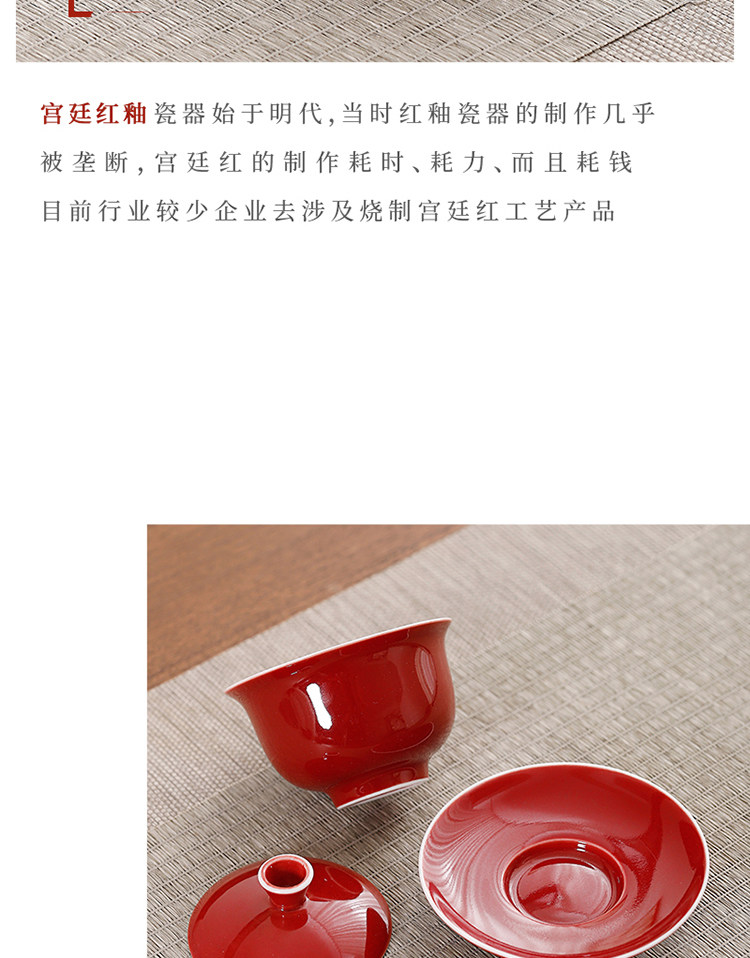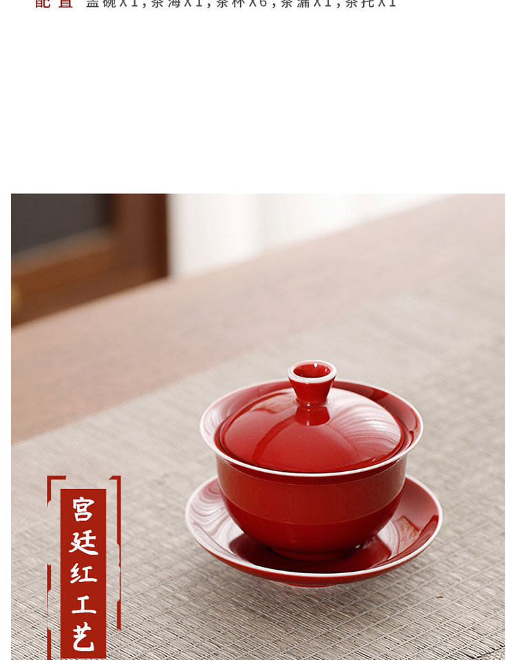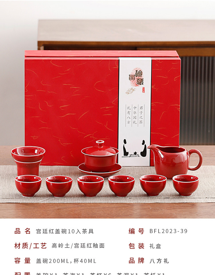 商品名称:八方礼宫廷红盖碗10入茶具红釉瓷器家用茶具套装