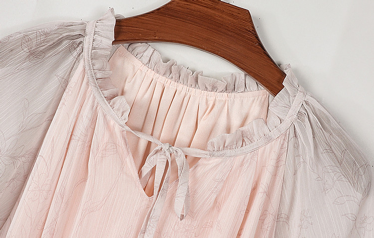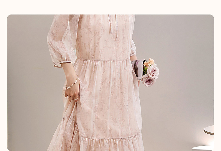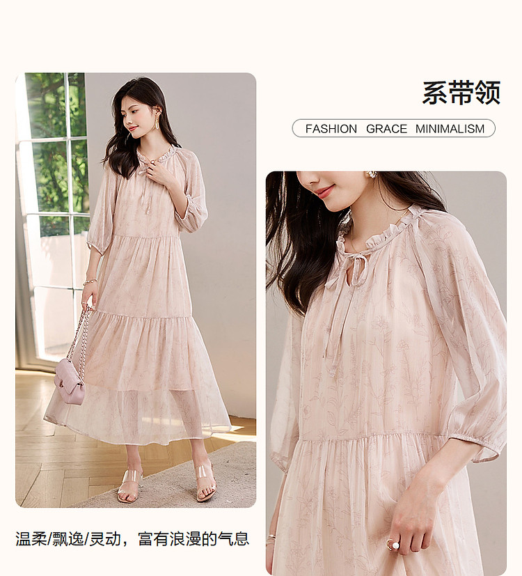 商品名称:【暗香浮动】夏国风新中式度假淑女系带领雪纺印花七分袖连衣裙女 252417
