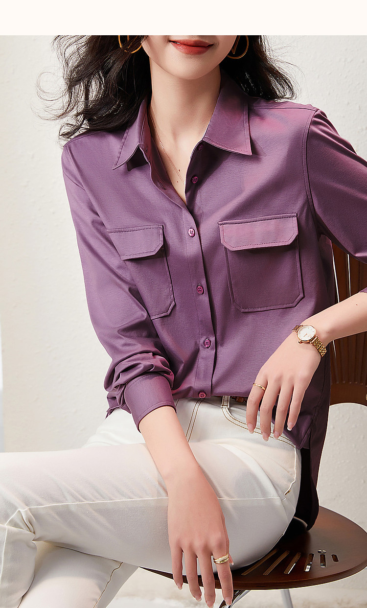 【多巴胺系列】春秋季轻奢180G丝光棉衬衫长袖衬衣女装上衣 881857