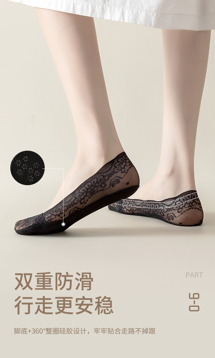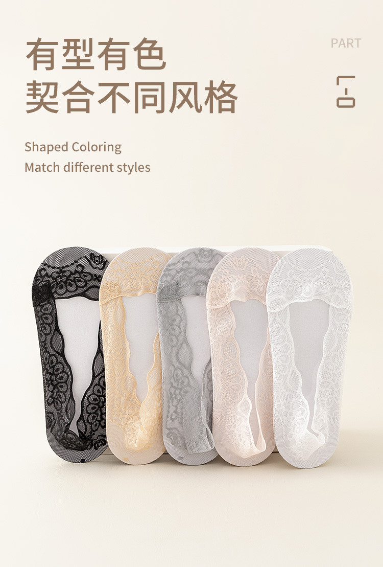 【透气防滑】蕾丝隐形袜5双装春夏款高跟鞋薄款浅口船袜女士 761867