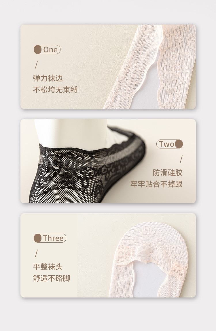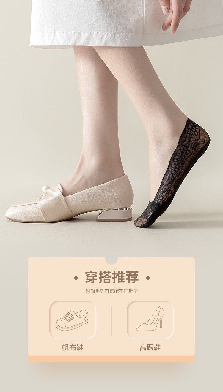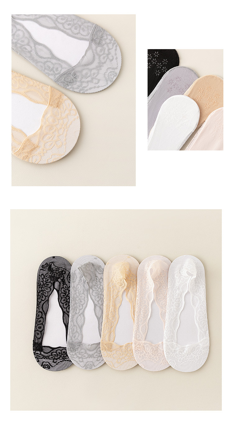 商品名称:【透气防滑】蕾丝隐形袜5双装春夏款高跟鞋薄款浅口船袜女士 761867