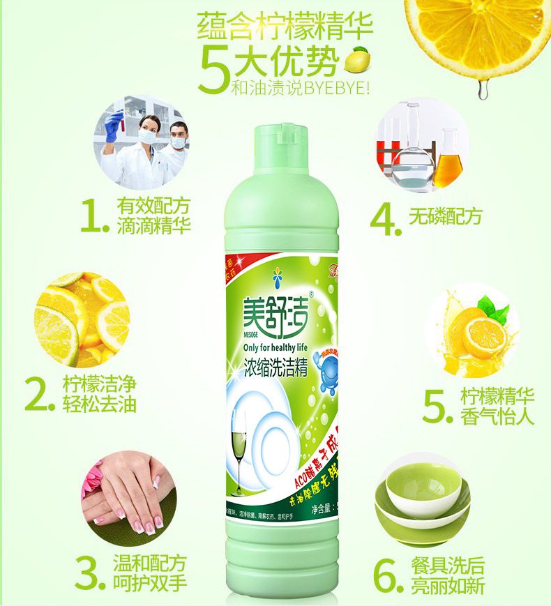 商品名称:【500g*4瓶】美舒洁 浓缩型柠檬洗洁精