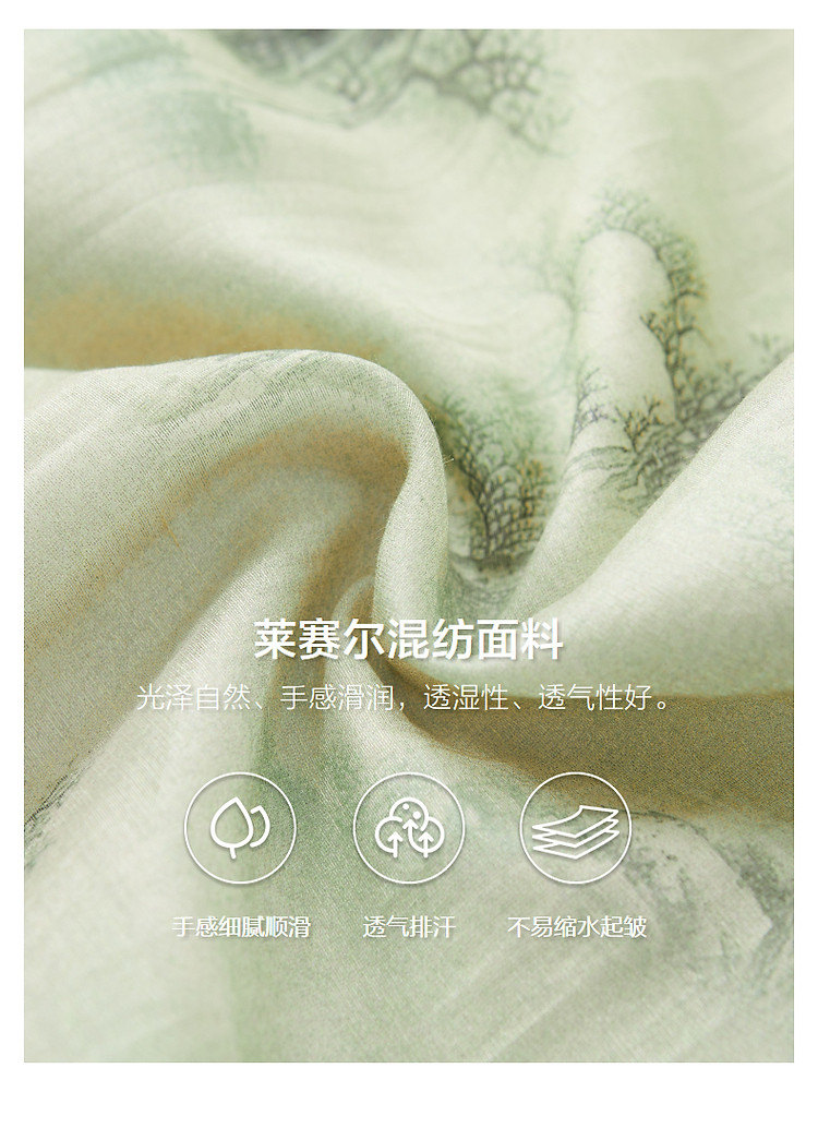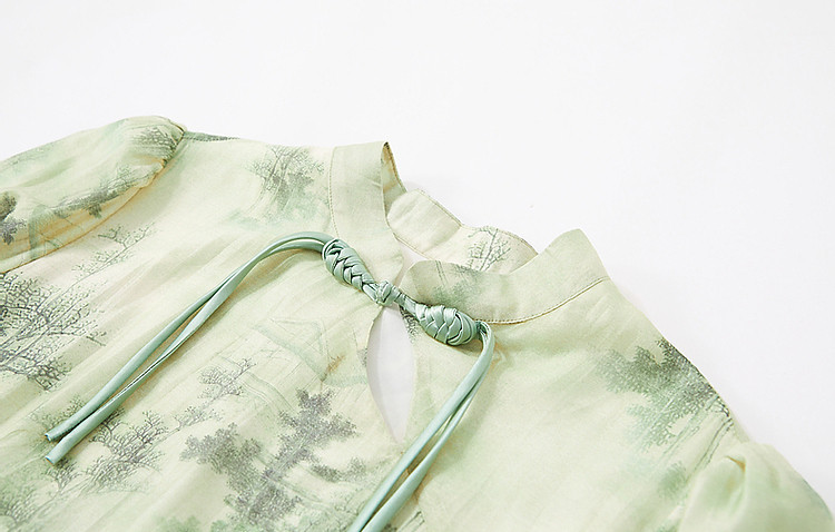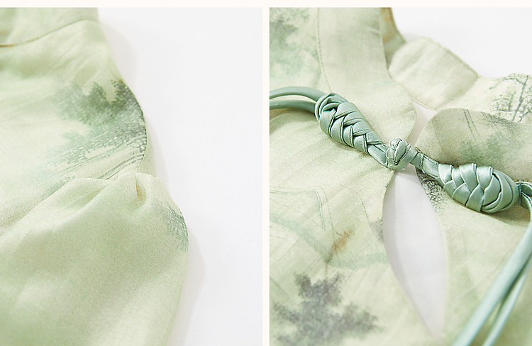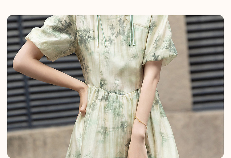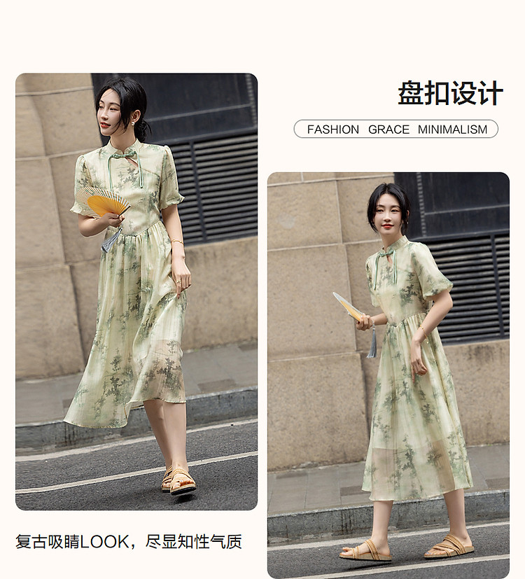 商品名称:【亚麻莱赛尔混纺】夏季国风新中式立领盘扣印花女式旗袍连衣裙 649729