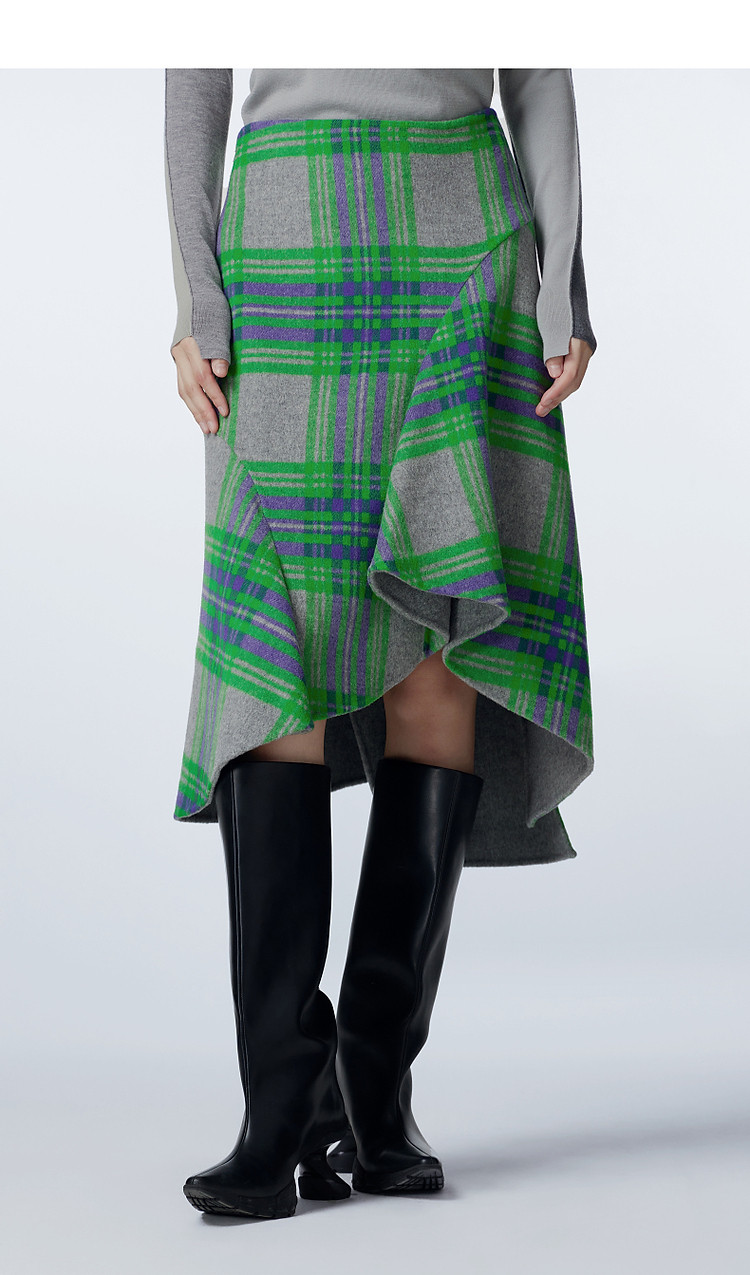 冬半身鱼尾裙复古格纹腰裙女 493771