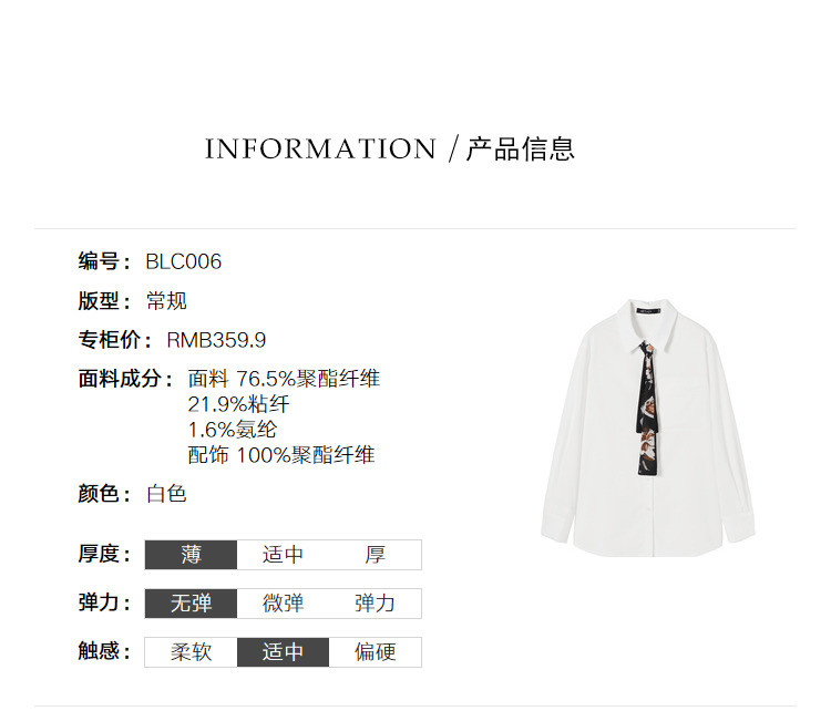 商品名称:【秋季热卖】纯色长袖系带衬衫女简约气质雪纺衫 799828