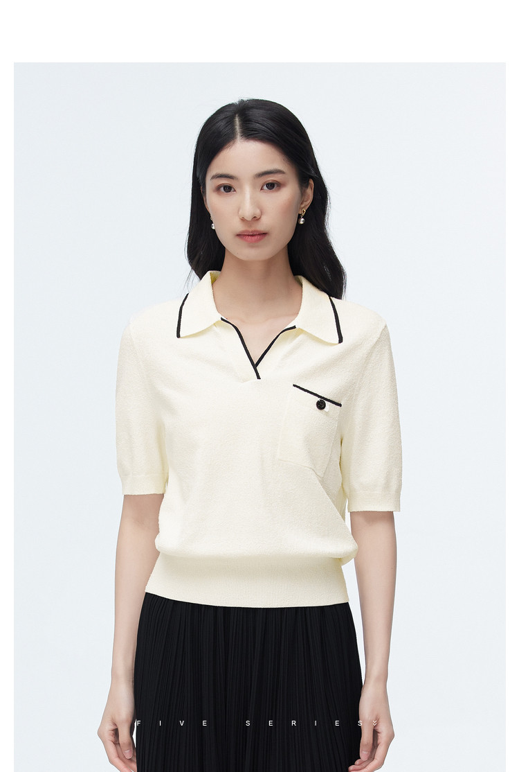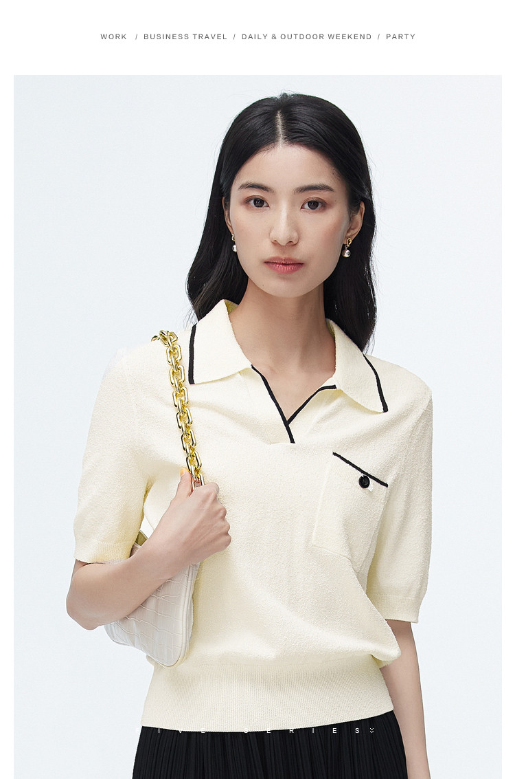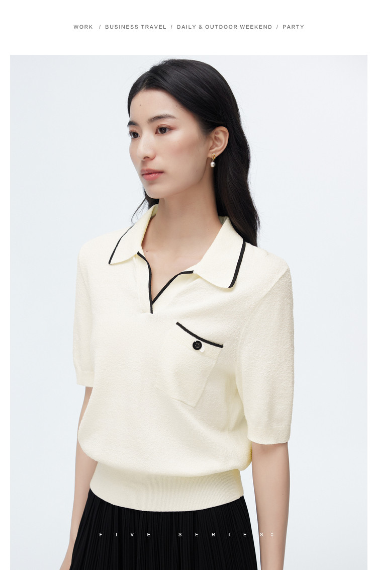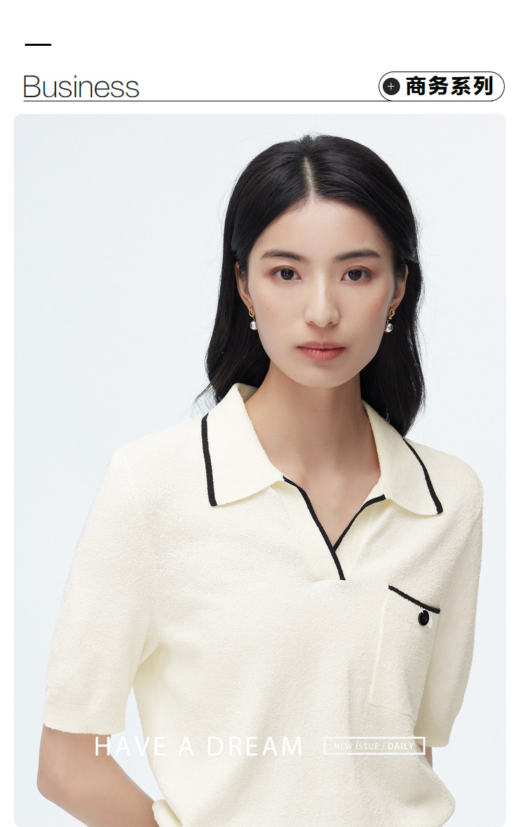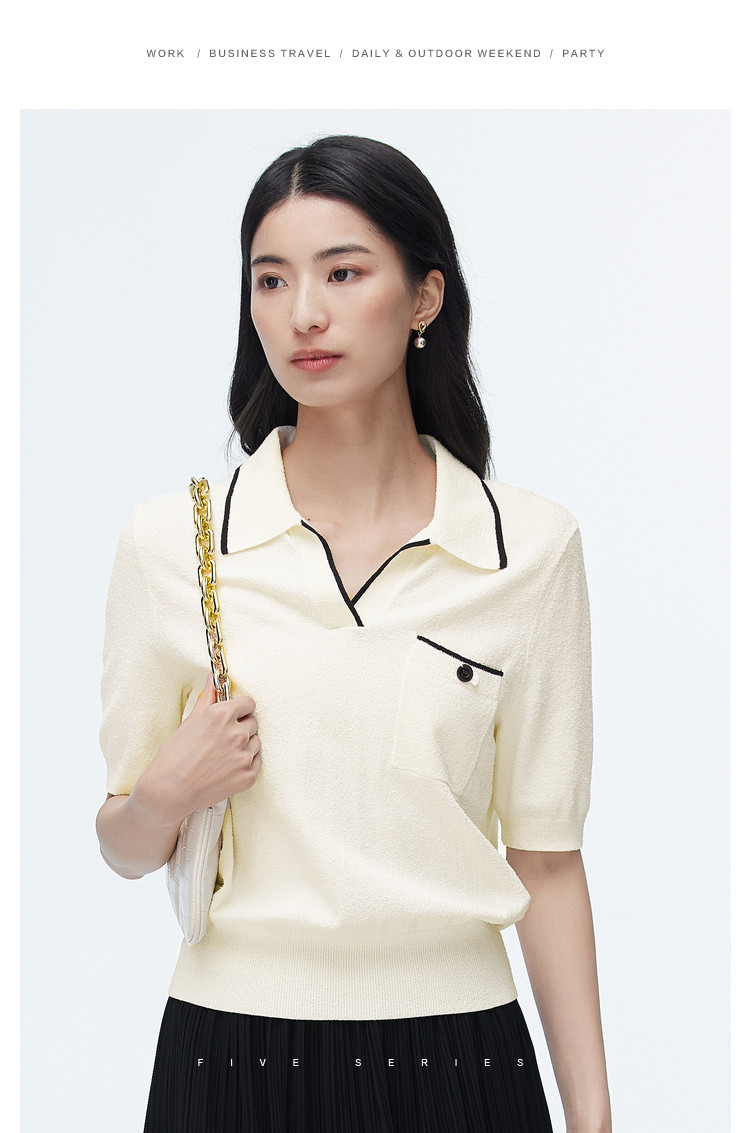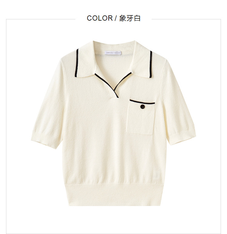 商品名称:简约休闲Polo领短袖上衣女夏季百搭通勤正肩撞色短袖T恤女 687363