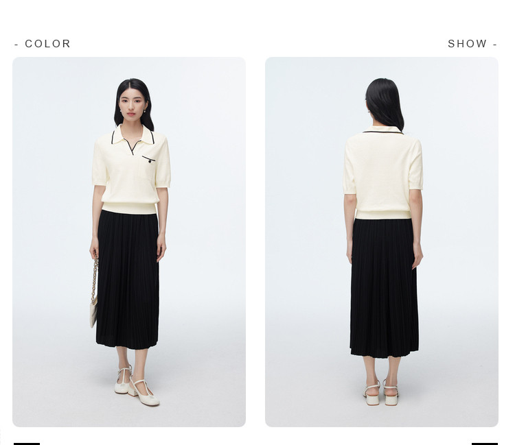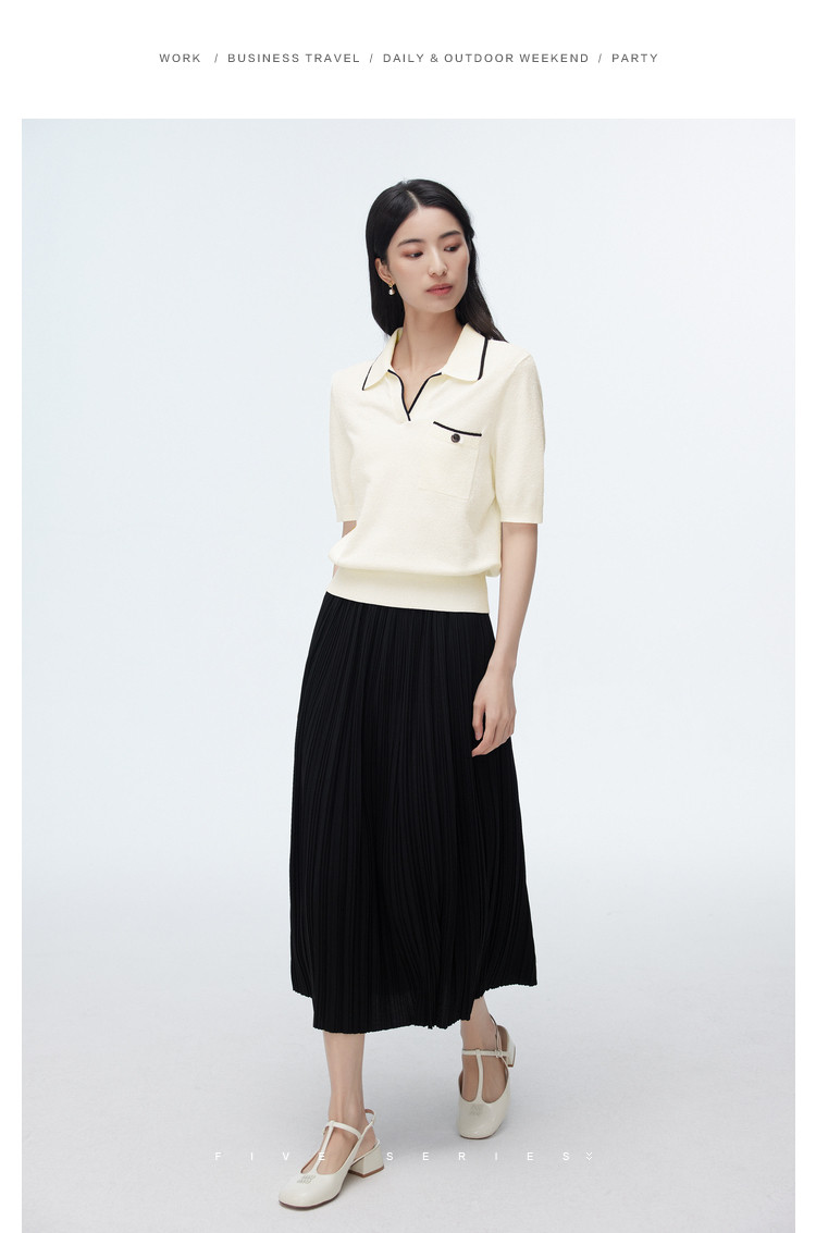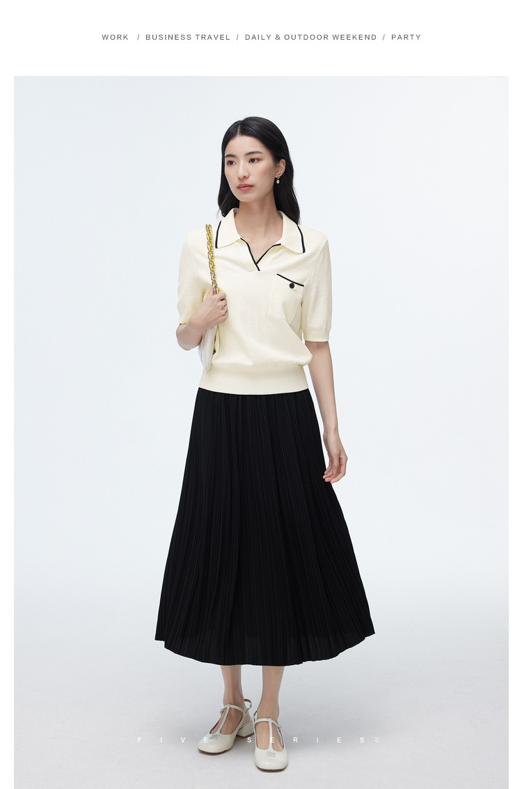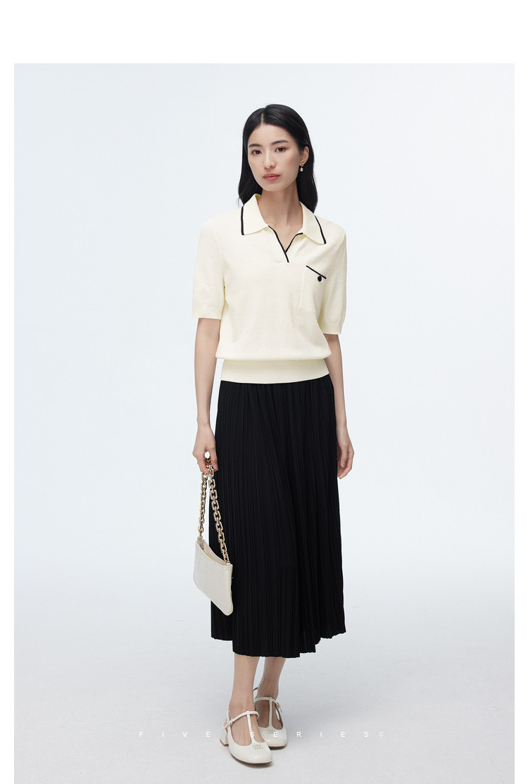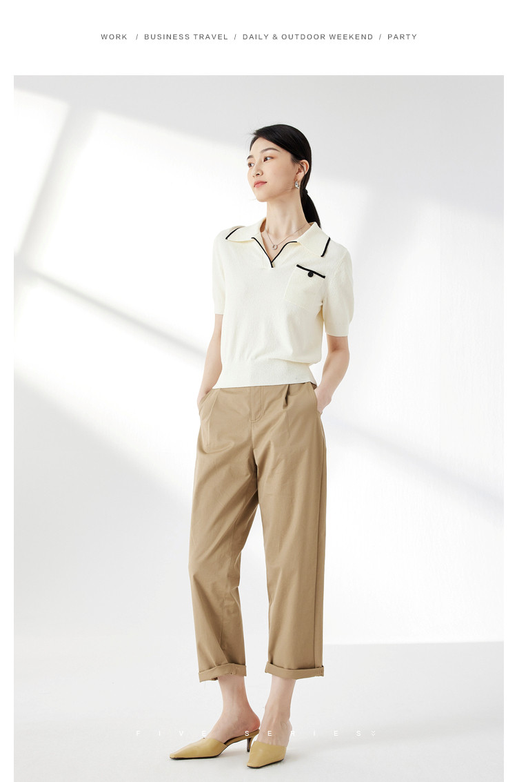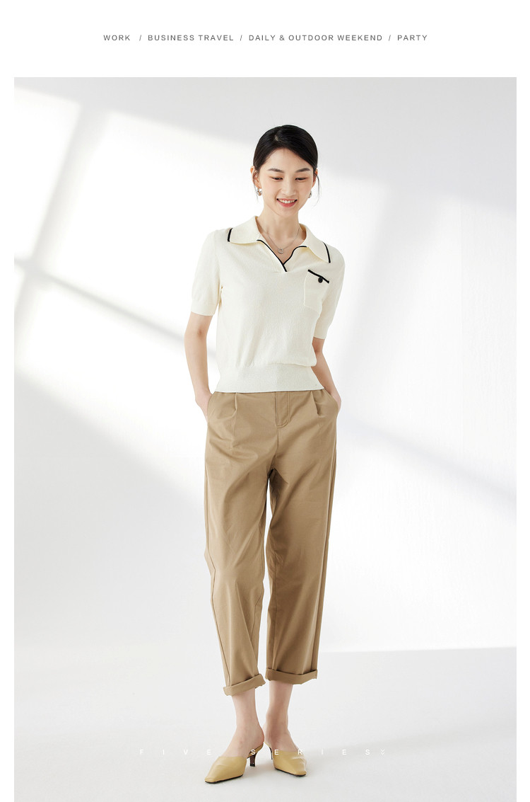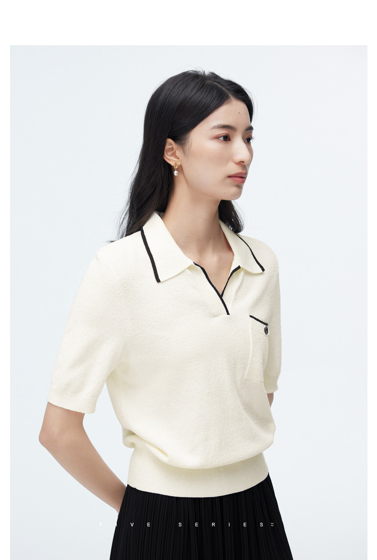 商品名称:简约休闲Polo领短袖上衣女夏季百搭通勤正肩撞色短袖T恤女 687363