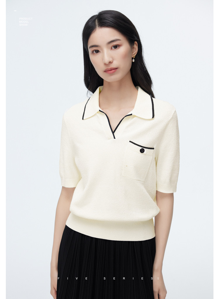 简约休闲Polo领短袖上衣女夏季百搭通勤正肩撞色短袖T恤女 687363