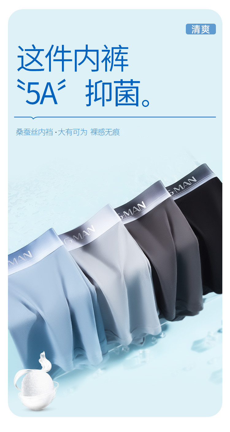 商品名称:【桑蚕丝抑菌】3条装男士内裤男顺滑莫代尔裸感贴身古今短裤 216907