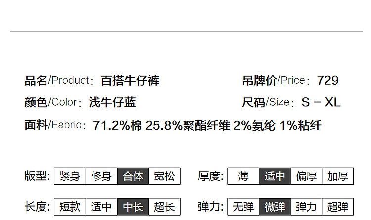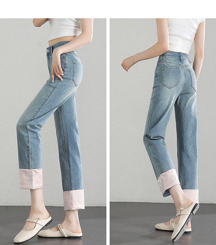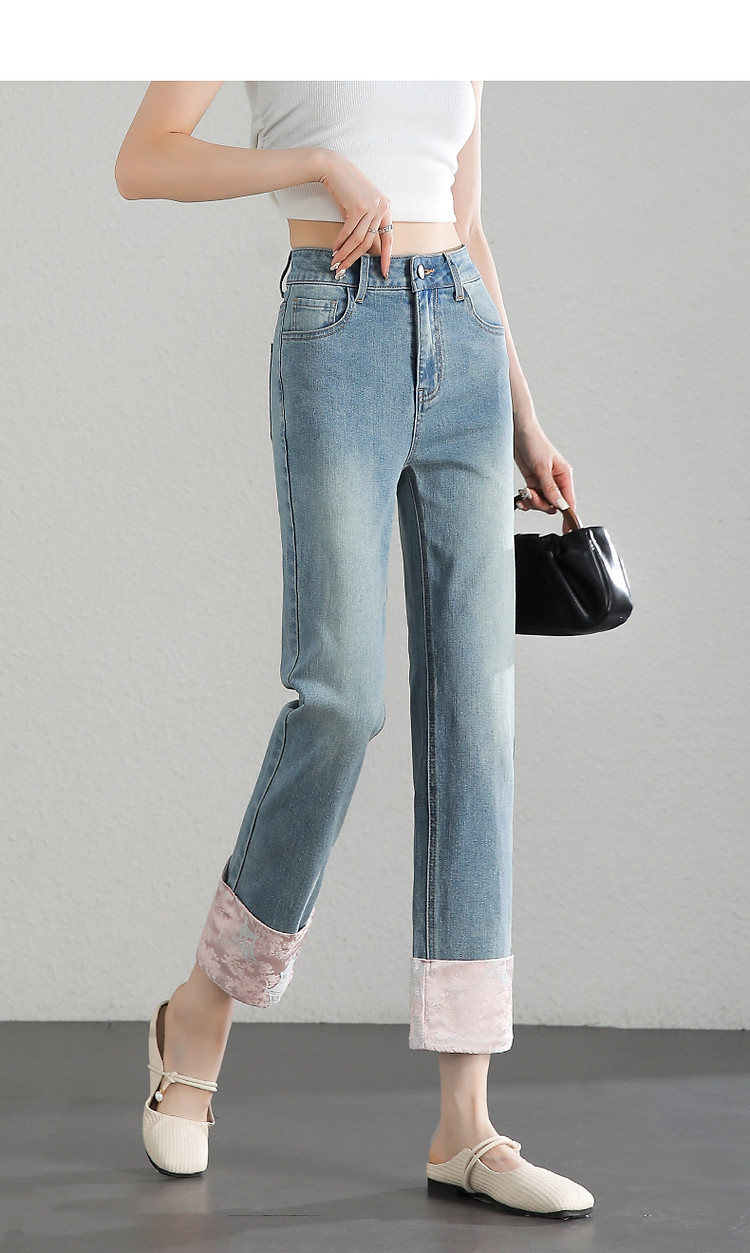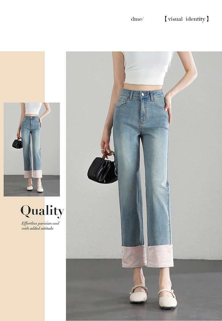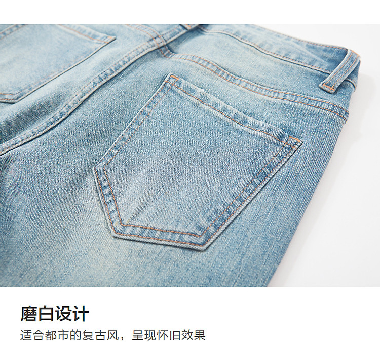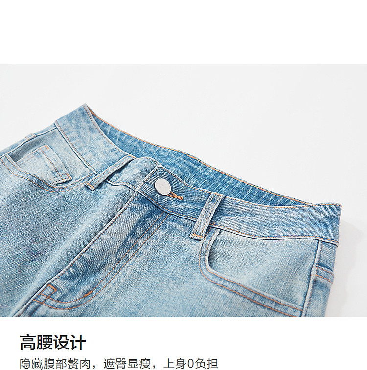 商品名称:【筷子腿系列】夏高腰显瘦做旧磨白拼接国风提花直筒九分牛仔裤 268801