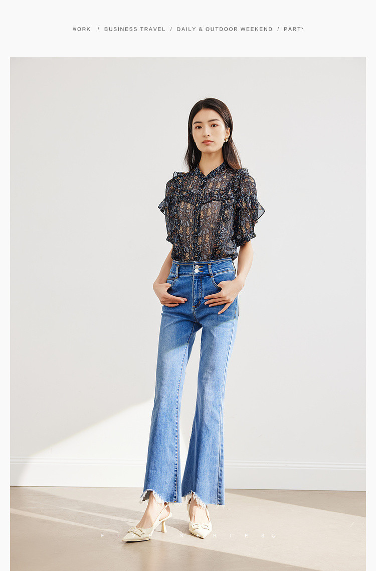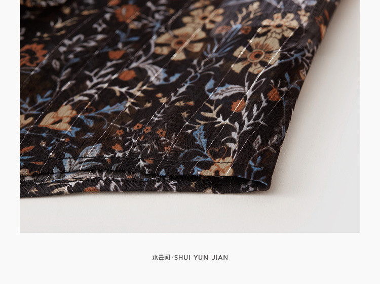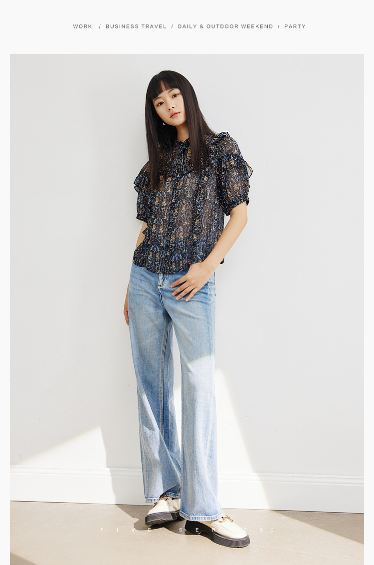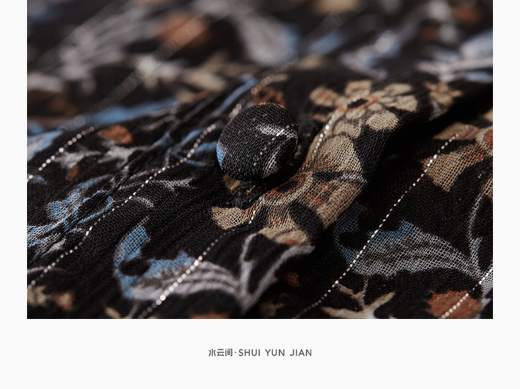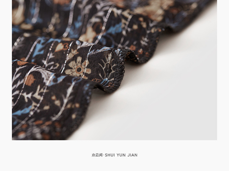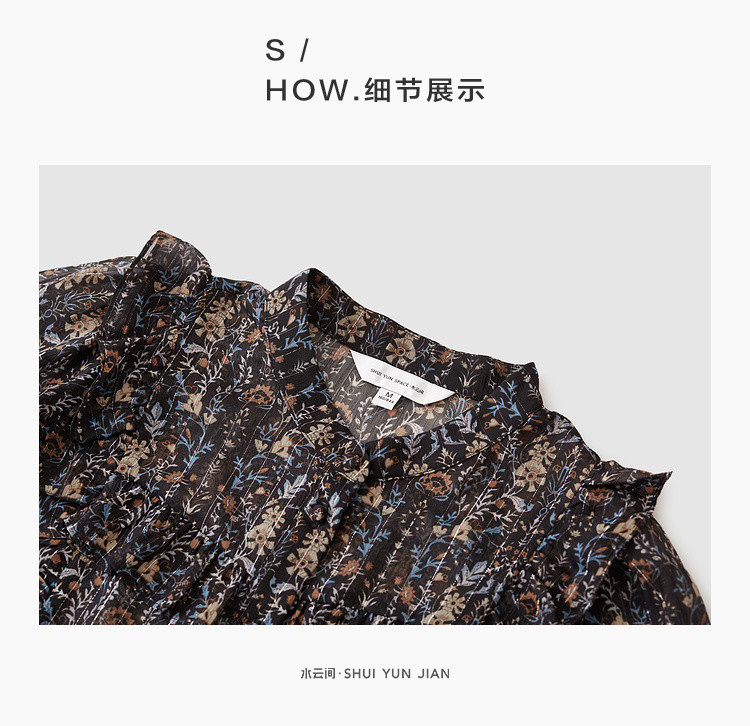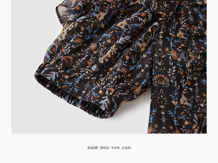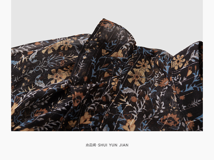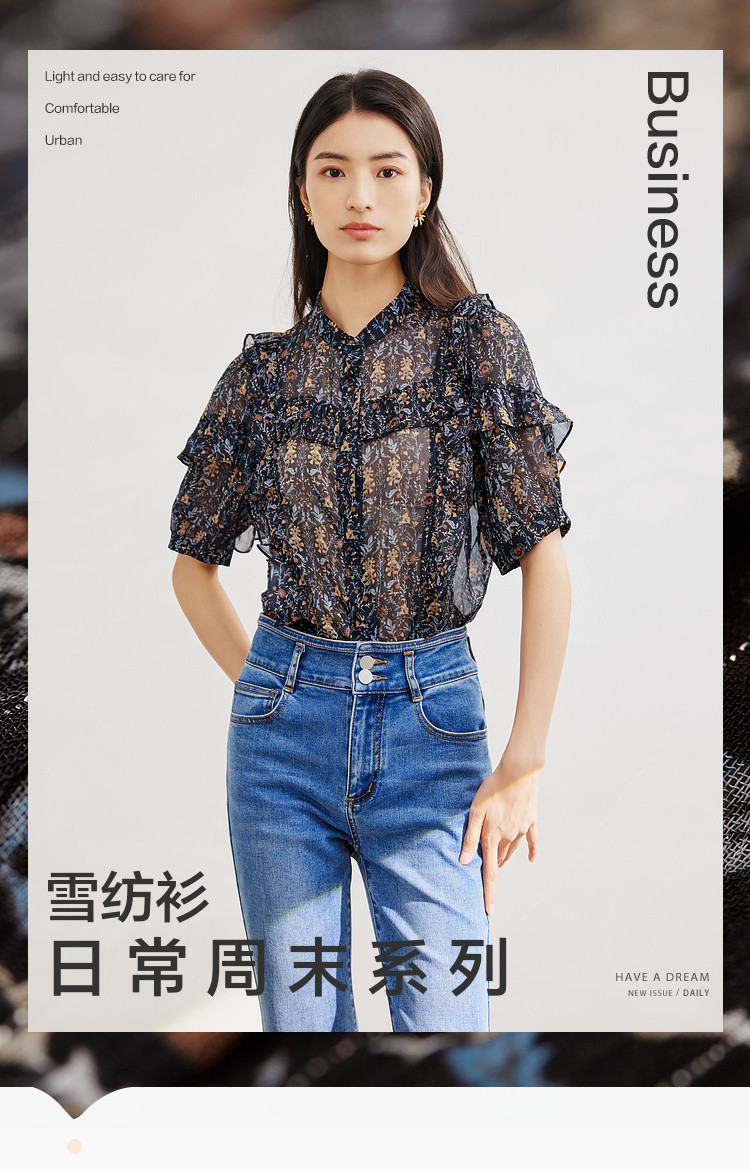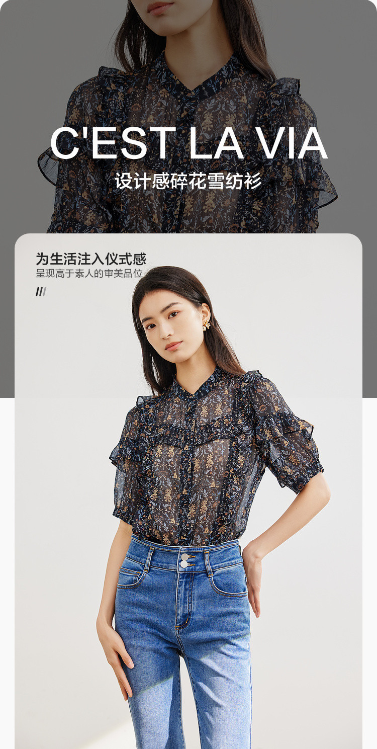 商品名称:设计感复古碎花雪纺衫女夏季荷叶边拼接气质设计感通勤立领上衣女 793859