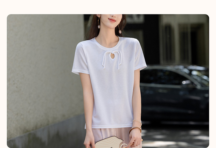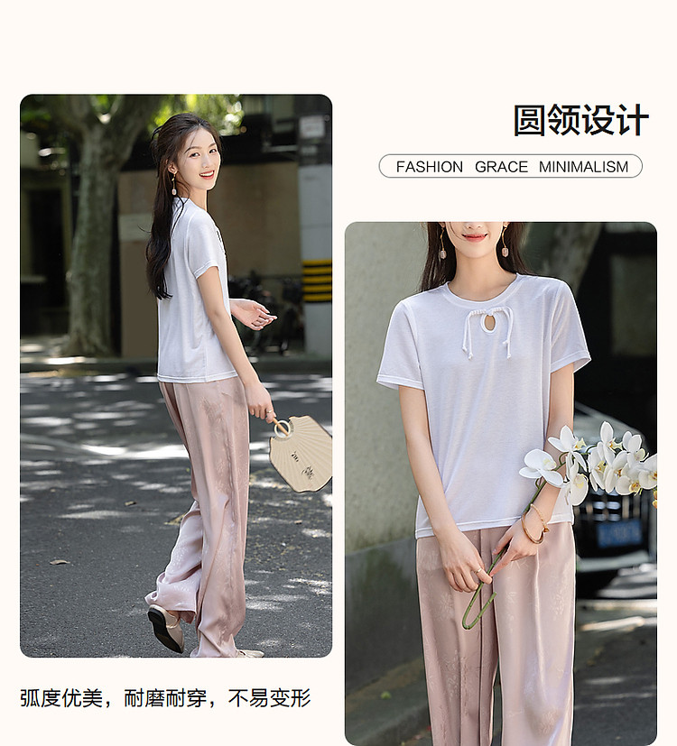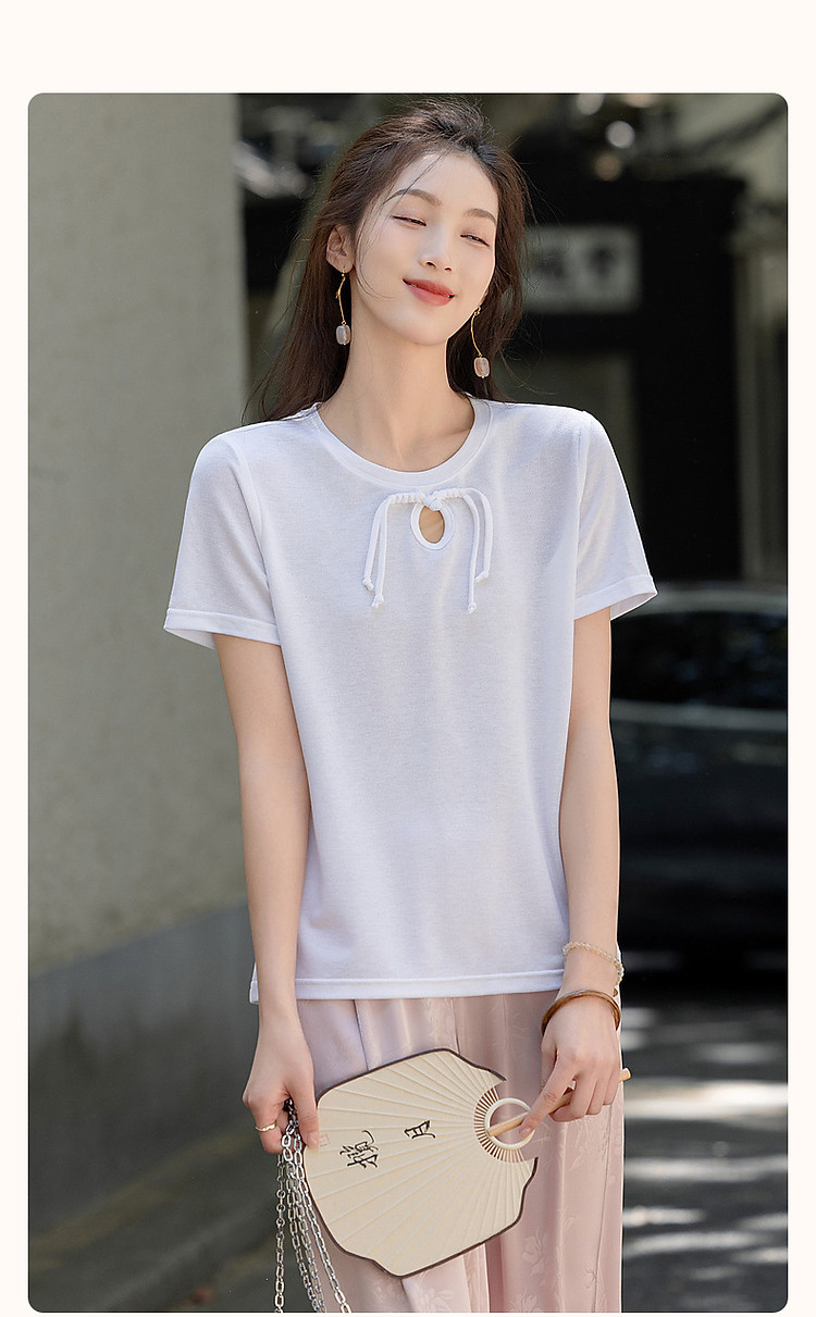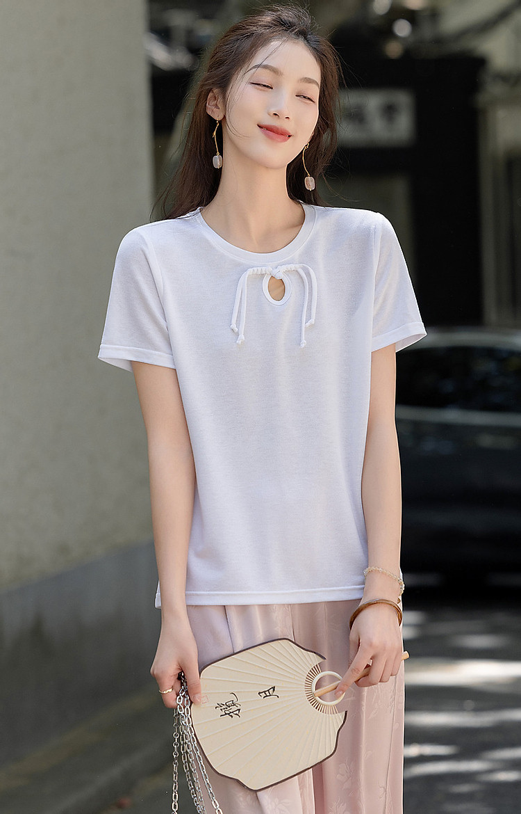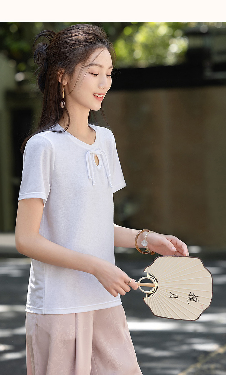 商品名称:【薄荷曼波】夏国风新中式雅致圆领盘扣弹力舒适藏肉短袖女式t恤 506369