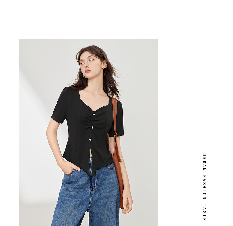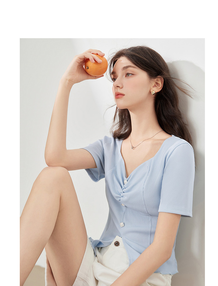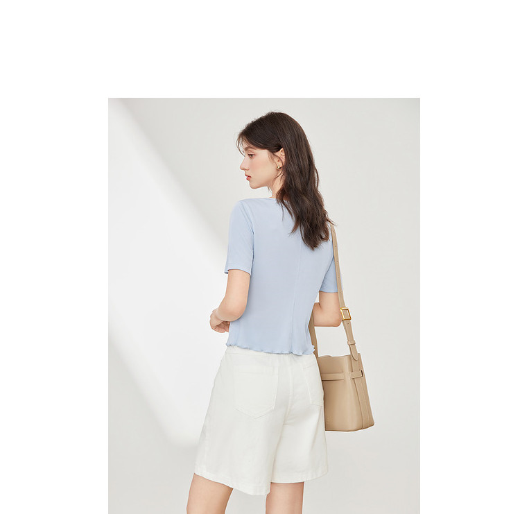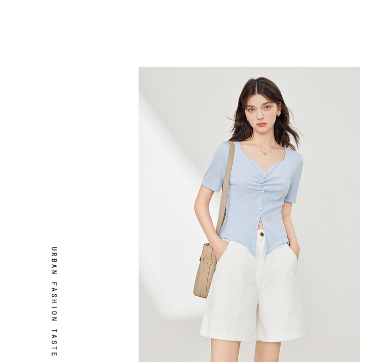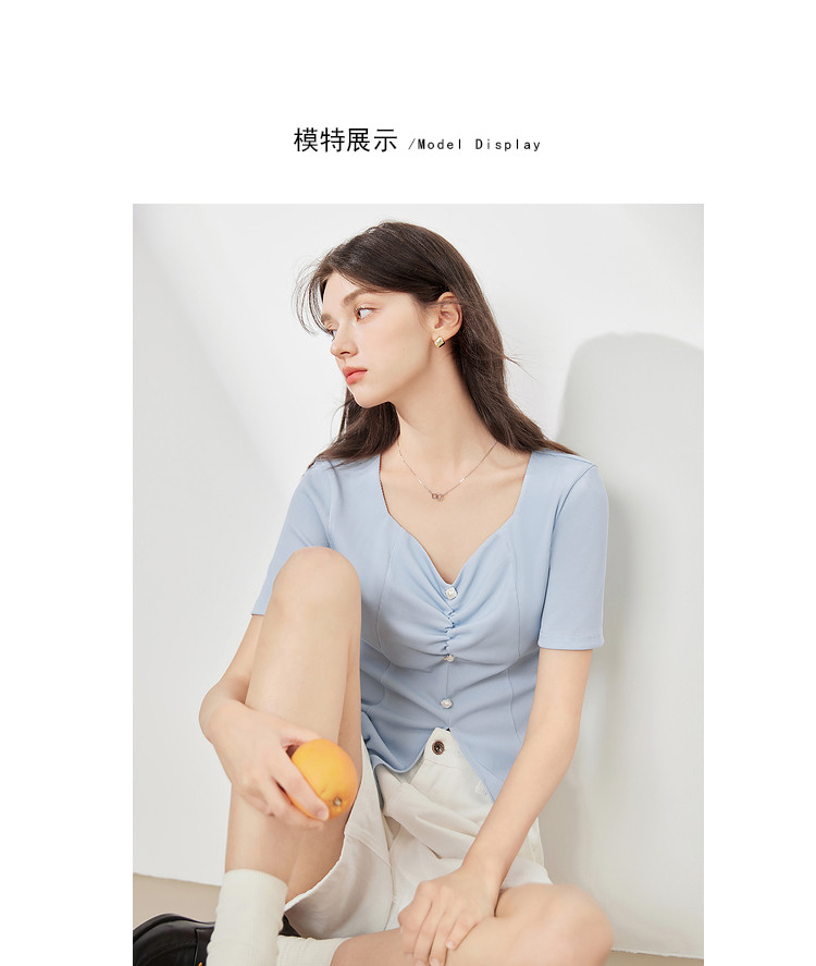 商品名称:【2024夏季】百搭气质修身针织衫T恤女短袖简约薄款上衣 093012