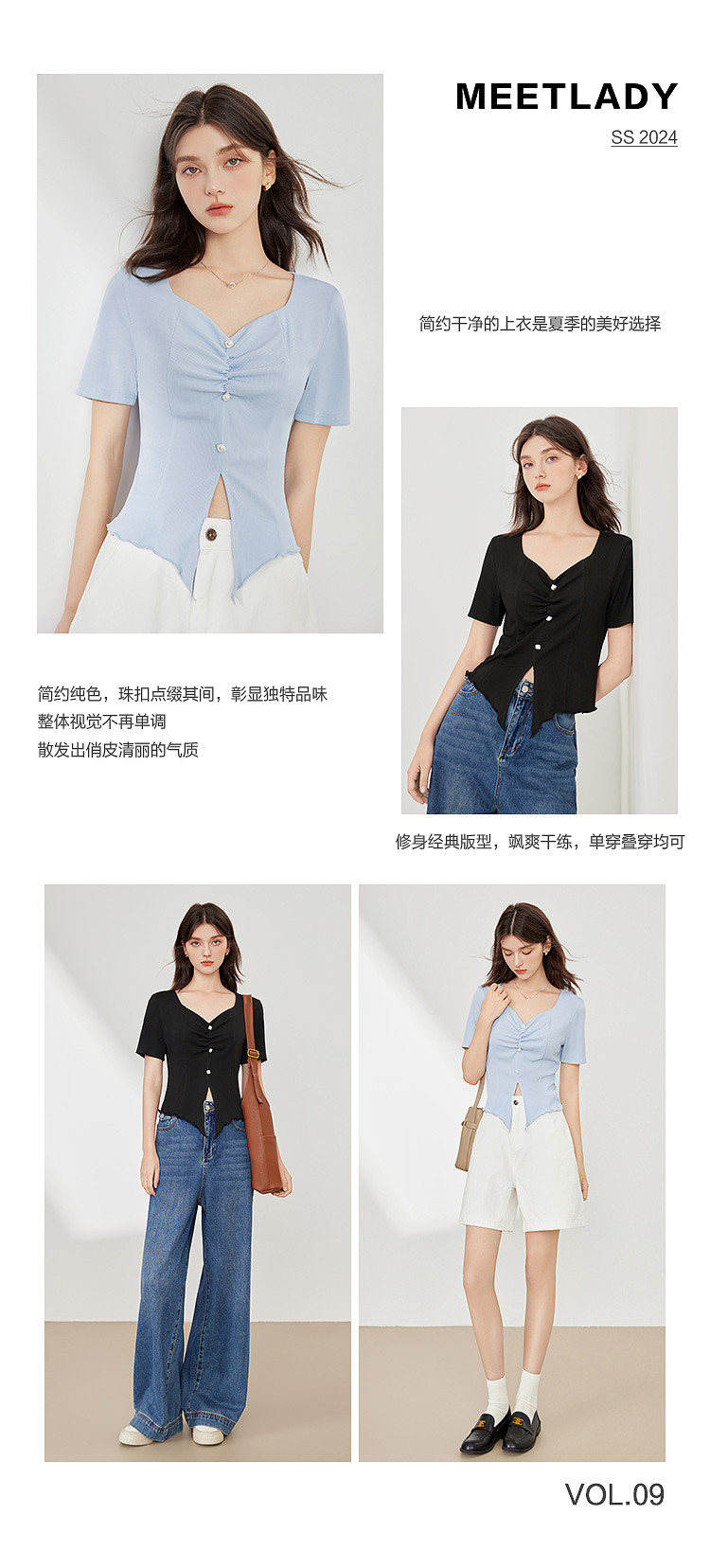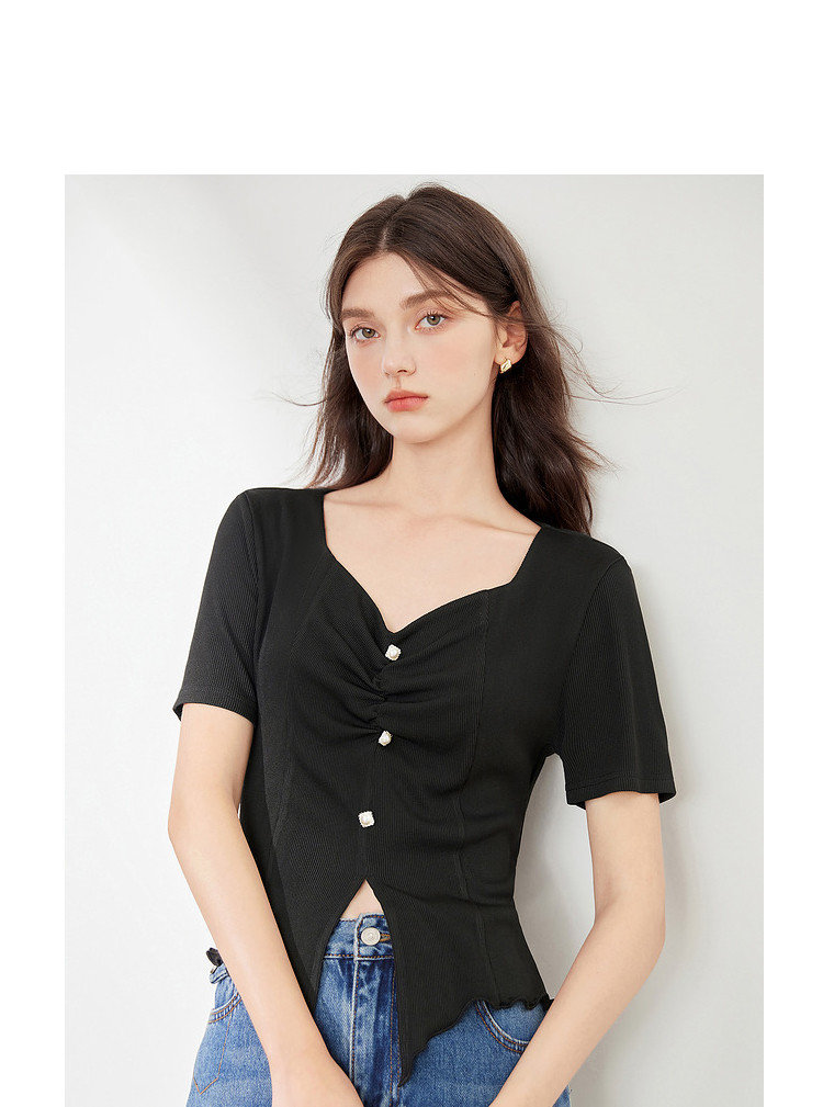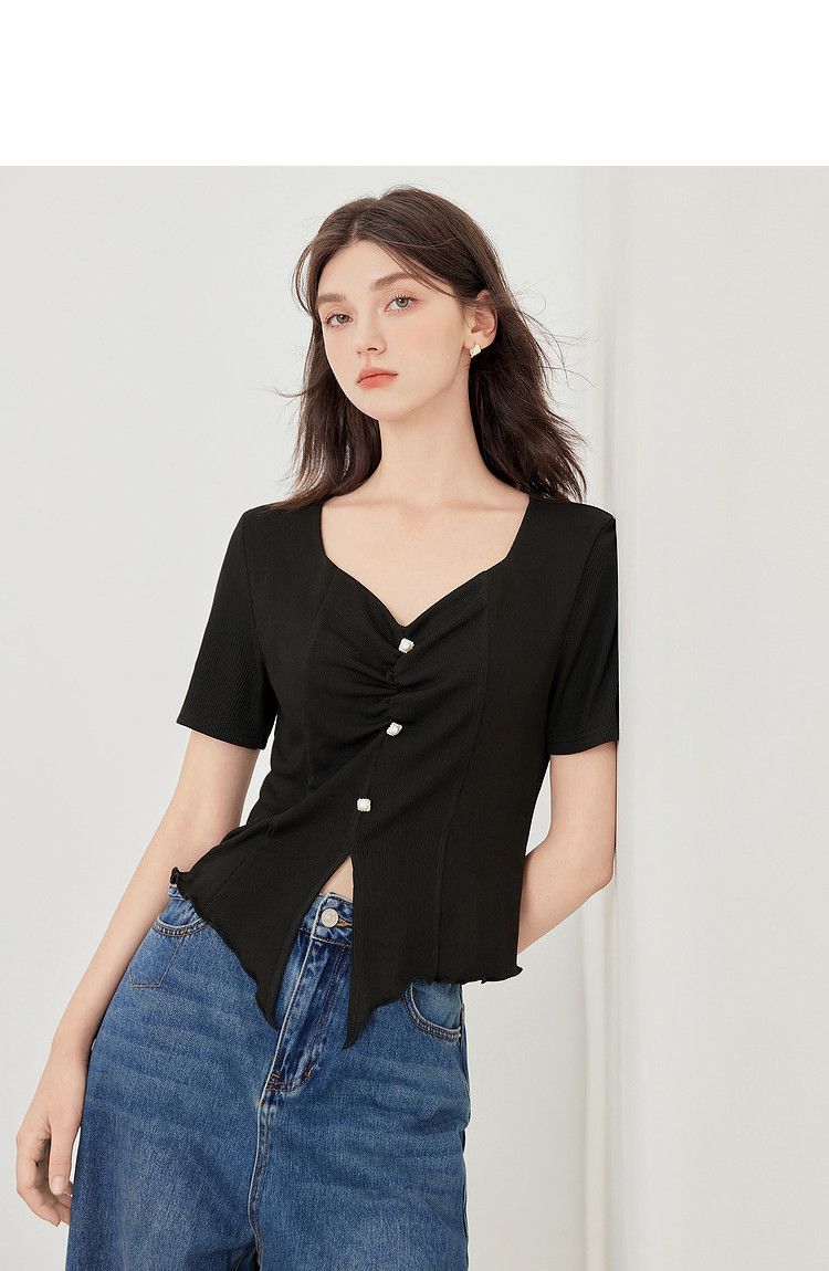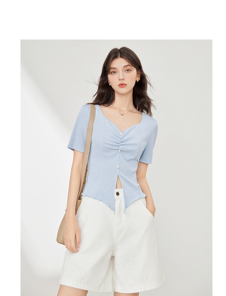 商品名称:【2024夏季】百搭气质修身针织衫T恤女短袖简约薄款上衣 093012