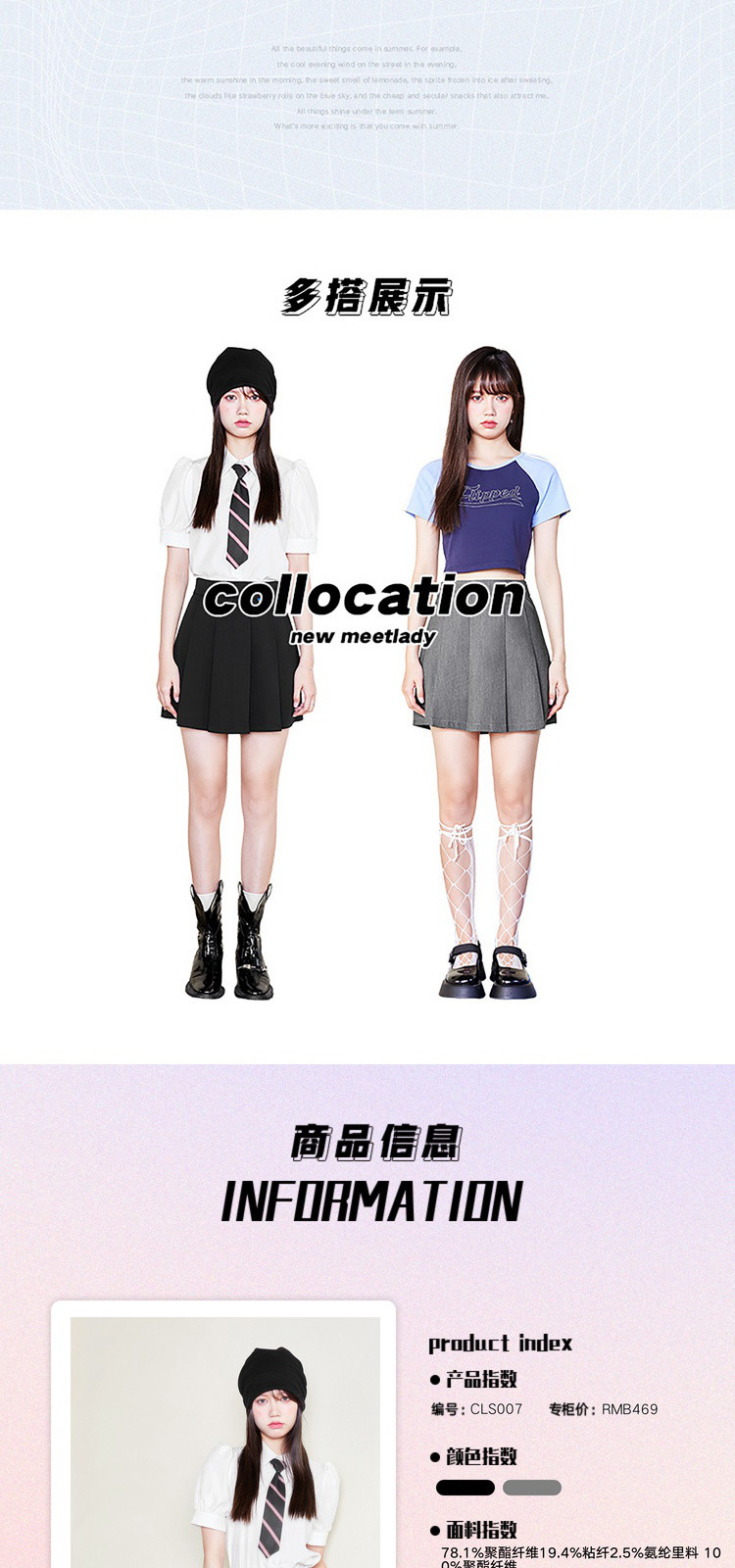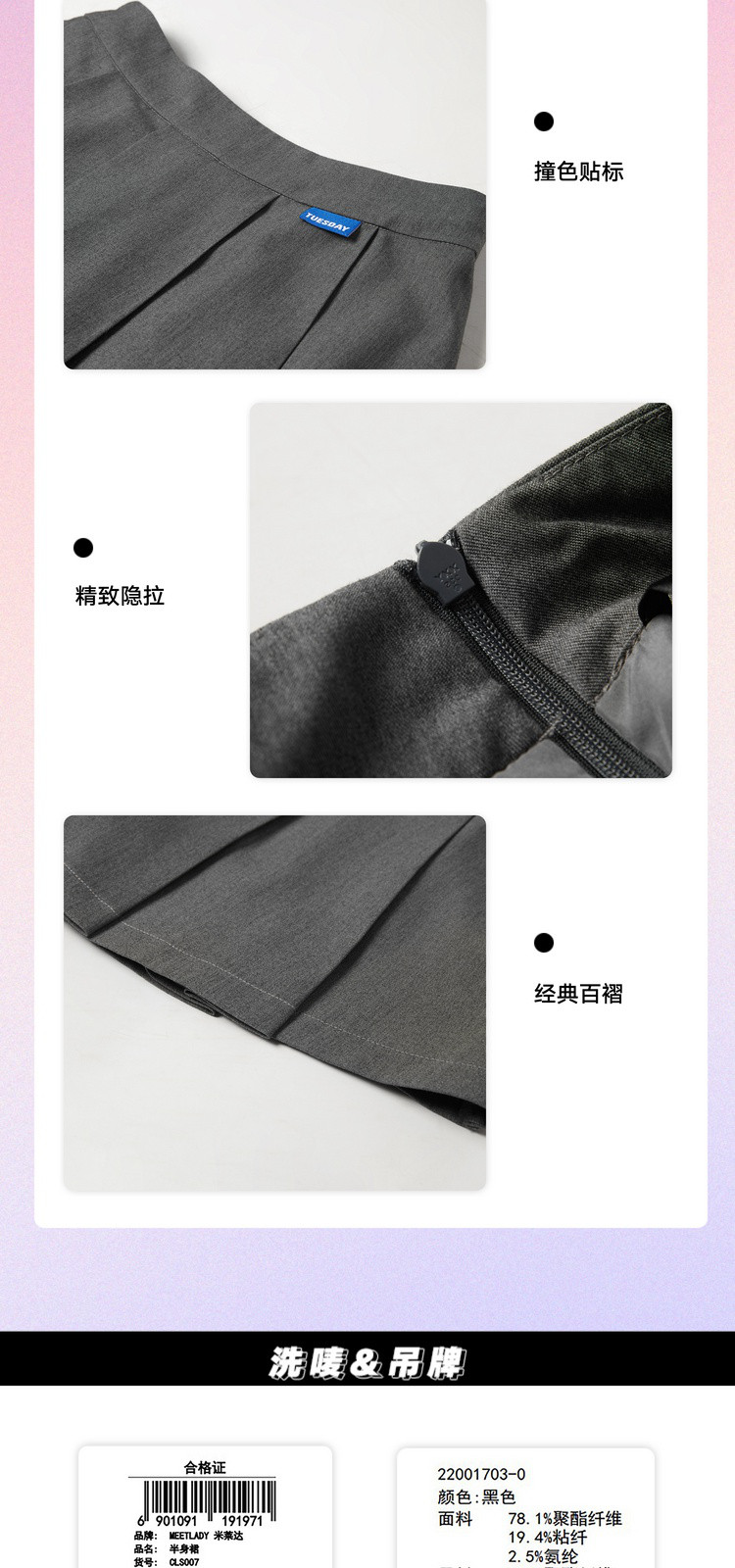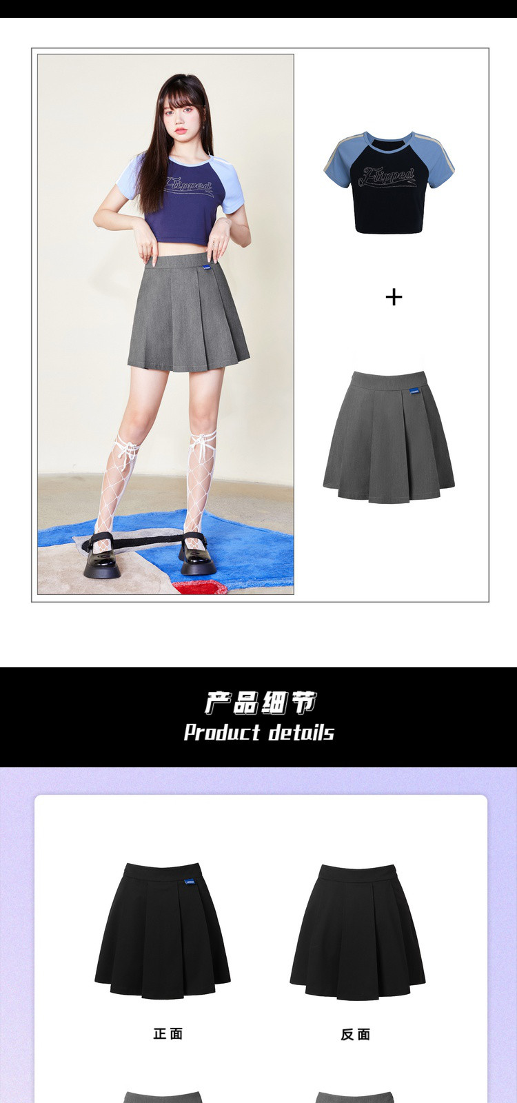 商品名称:夏装韩系学院风高级感a字半身裙质感短款百褶裙女 807700