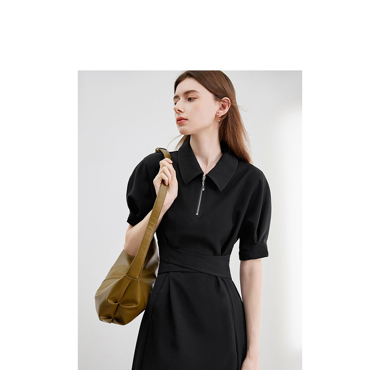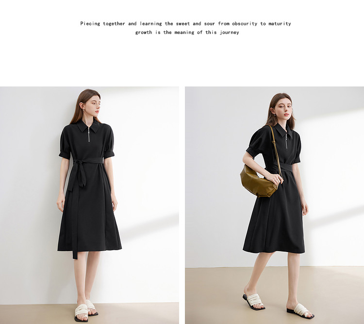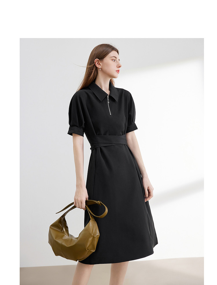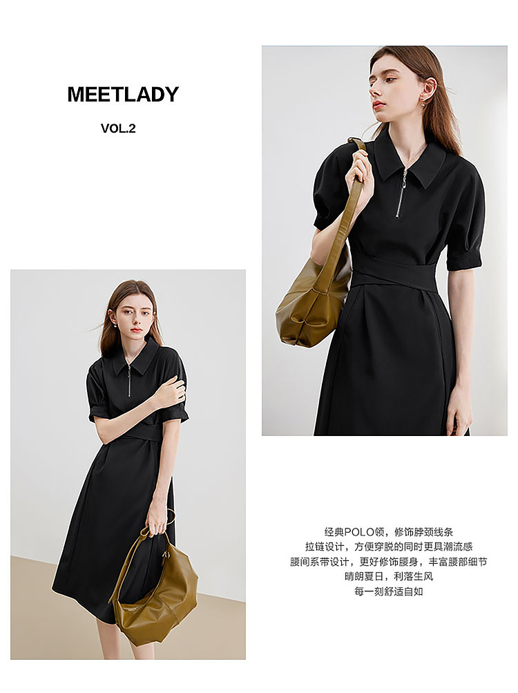 夏季热卖简约polo领短袖连衣裙系带收腰显瘦气质修身 262484