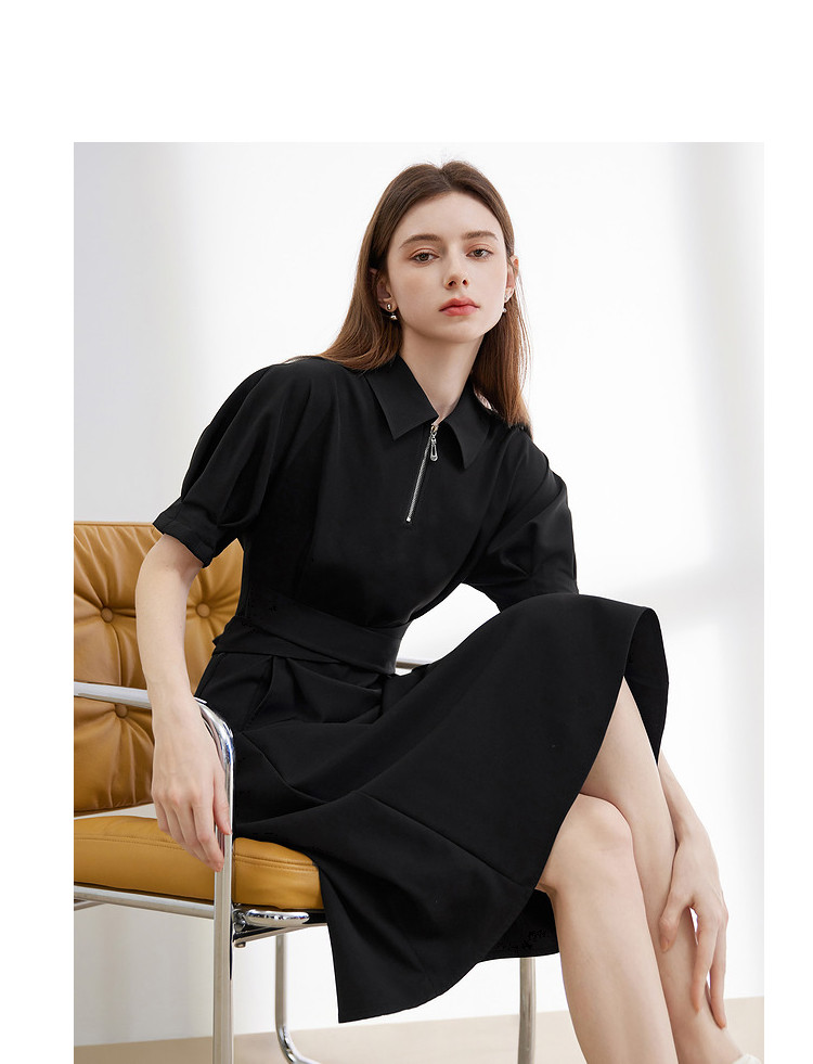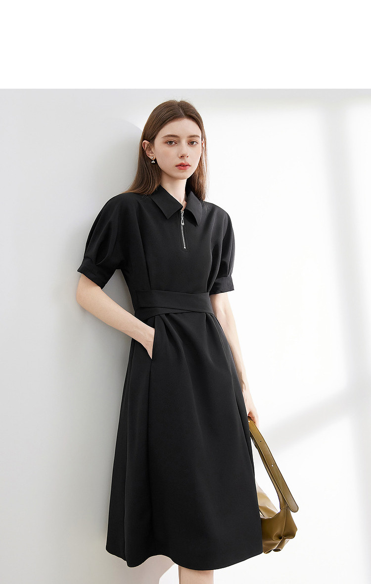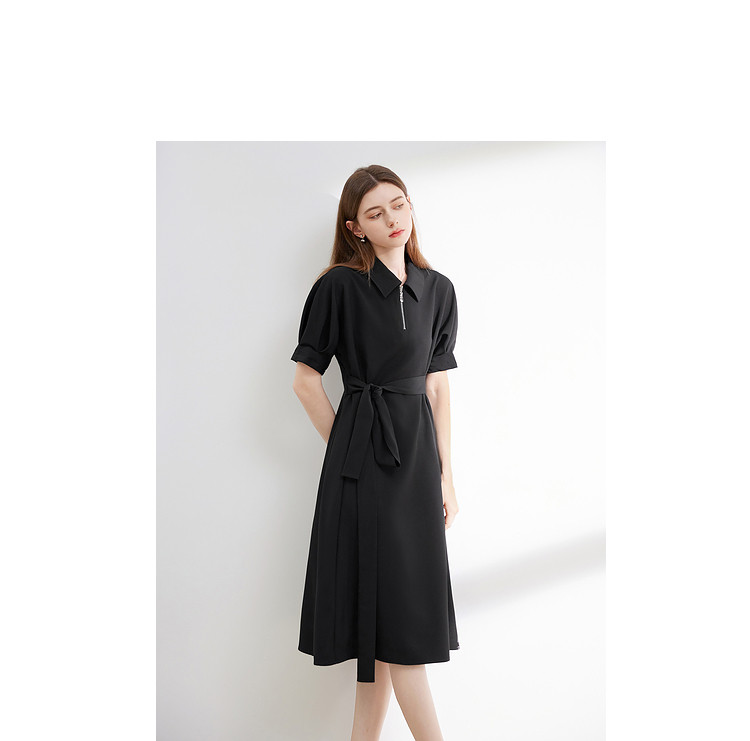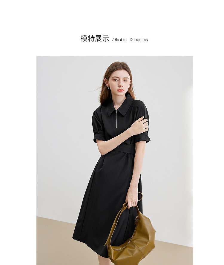 商品名称:夏季热卖简约polo领短袖连衣裙系带收腰显瘦气质修身 262484