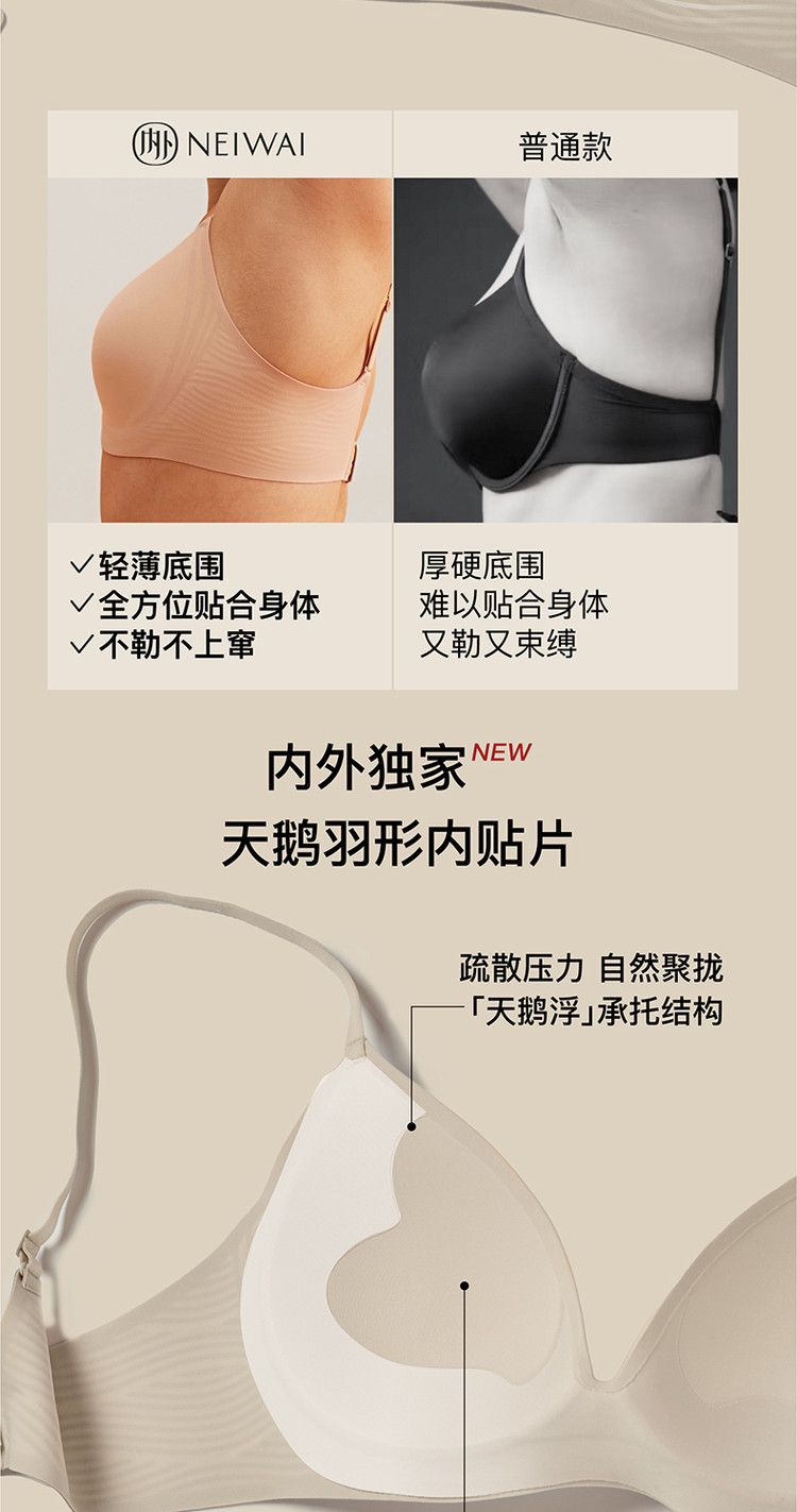 商品名称:【雎晓雯同款】NEIWAI内外天鹅杯深V细肩带承托无钢圈文胸 567242