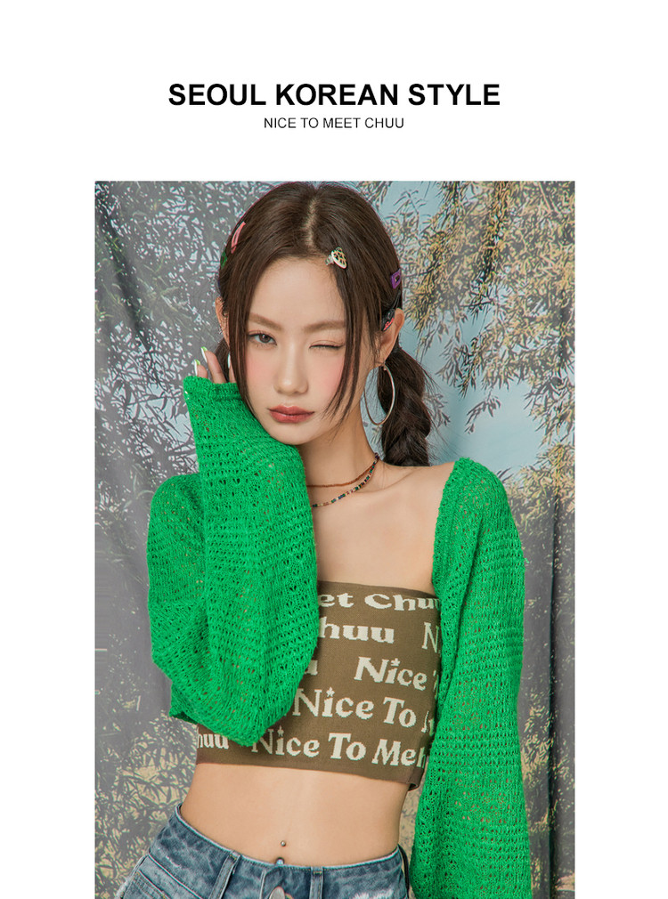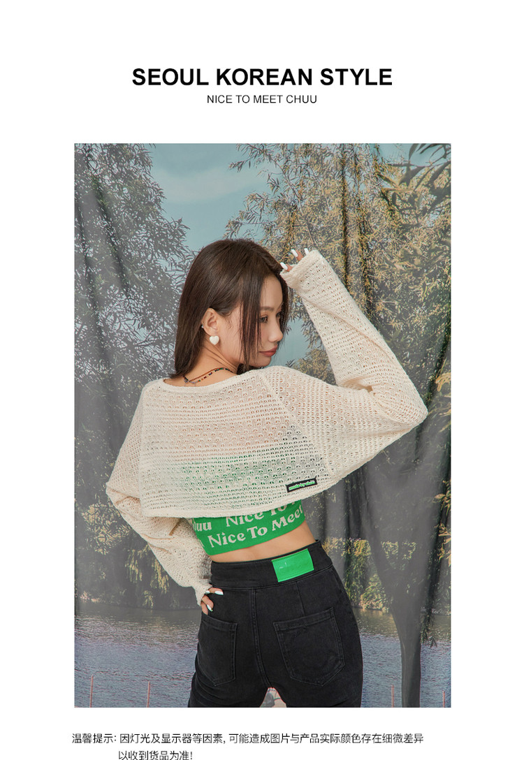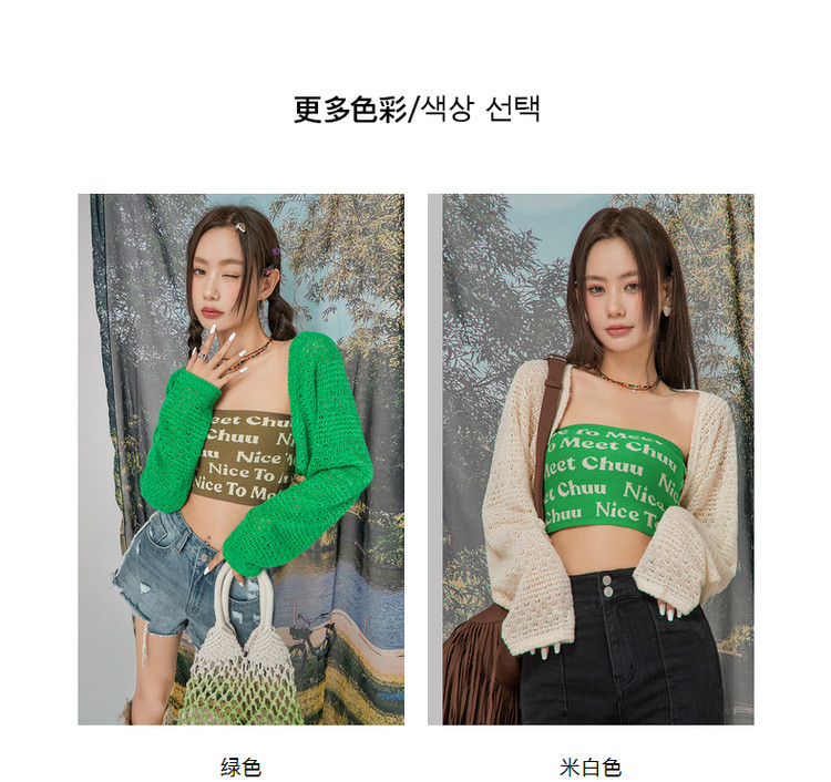 商品名称:CHUU镂空长袖针织开衫外套女夏韩版空调衫外搭薄款上衣 350355
