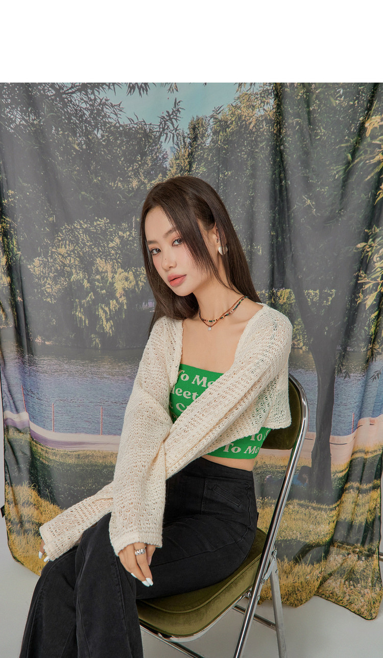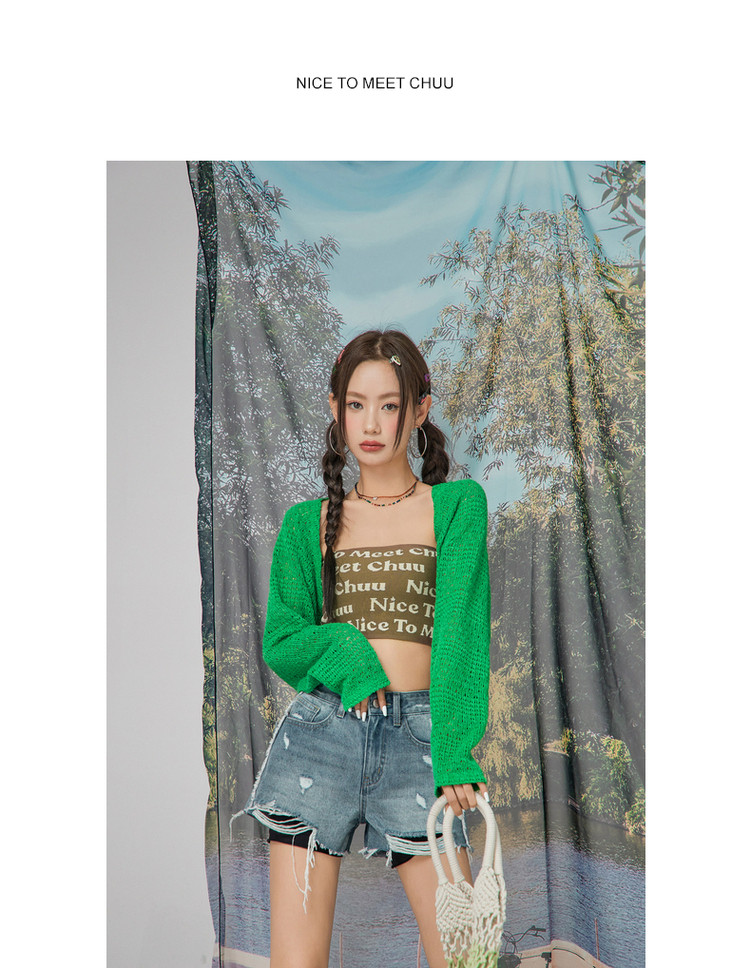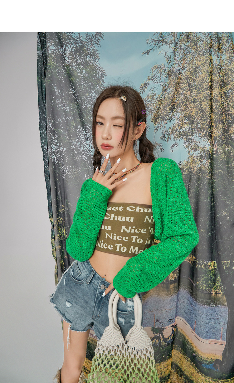 CHUU镂空长袖针织开衫外套女夏韩版空调衫外搭薄款上衣 350355
