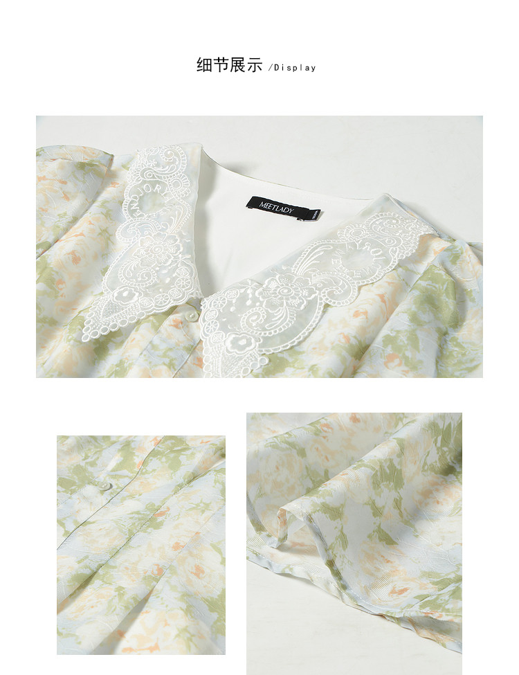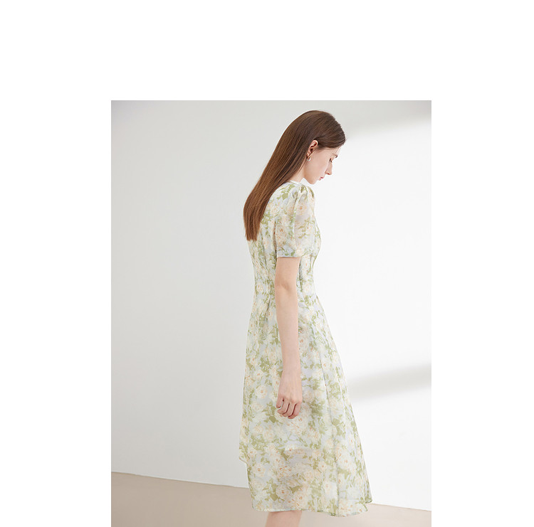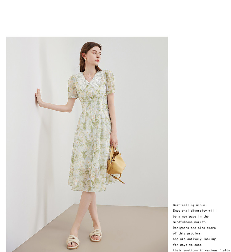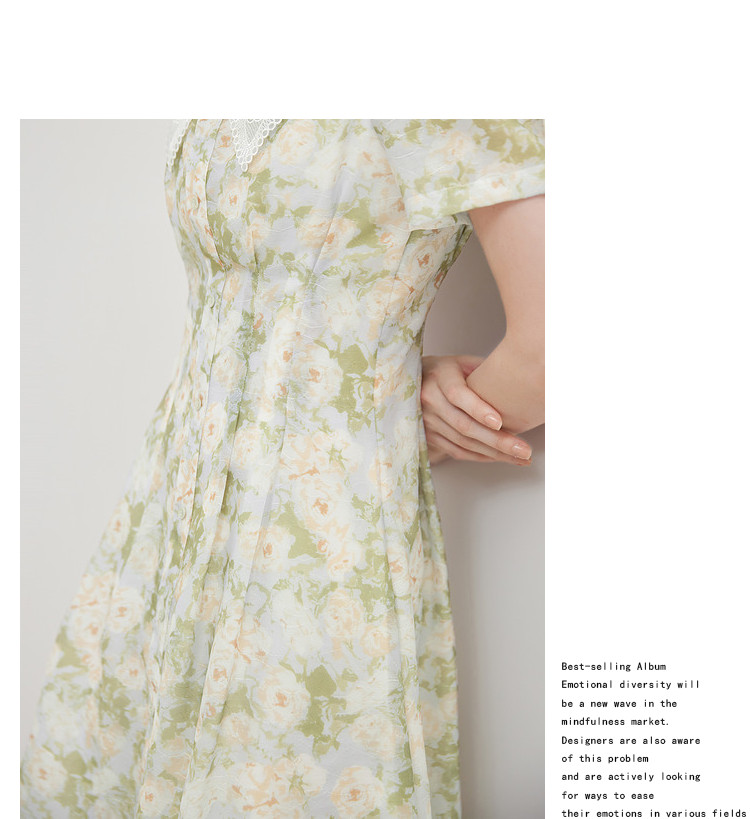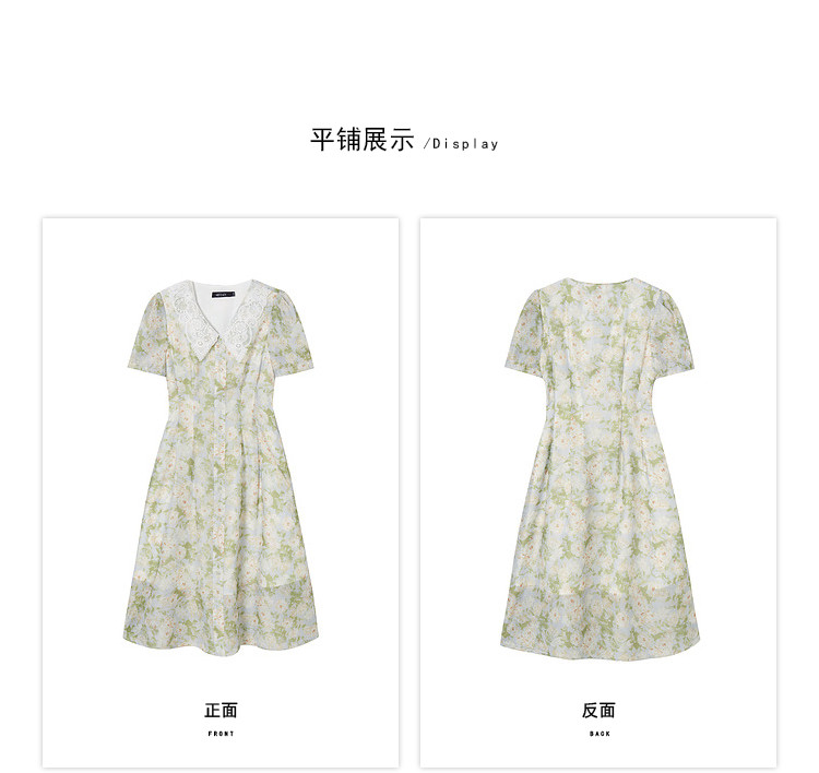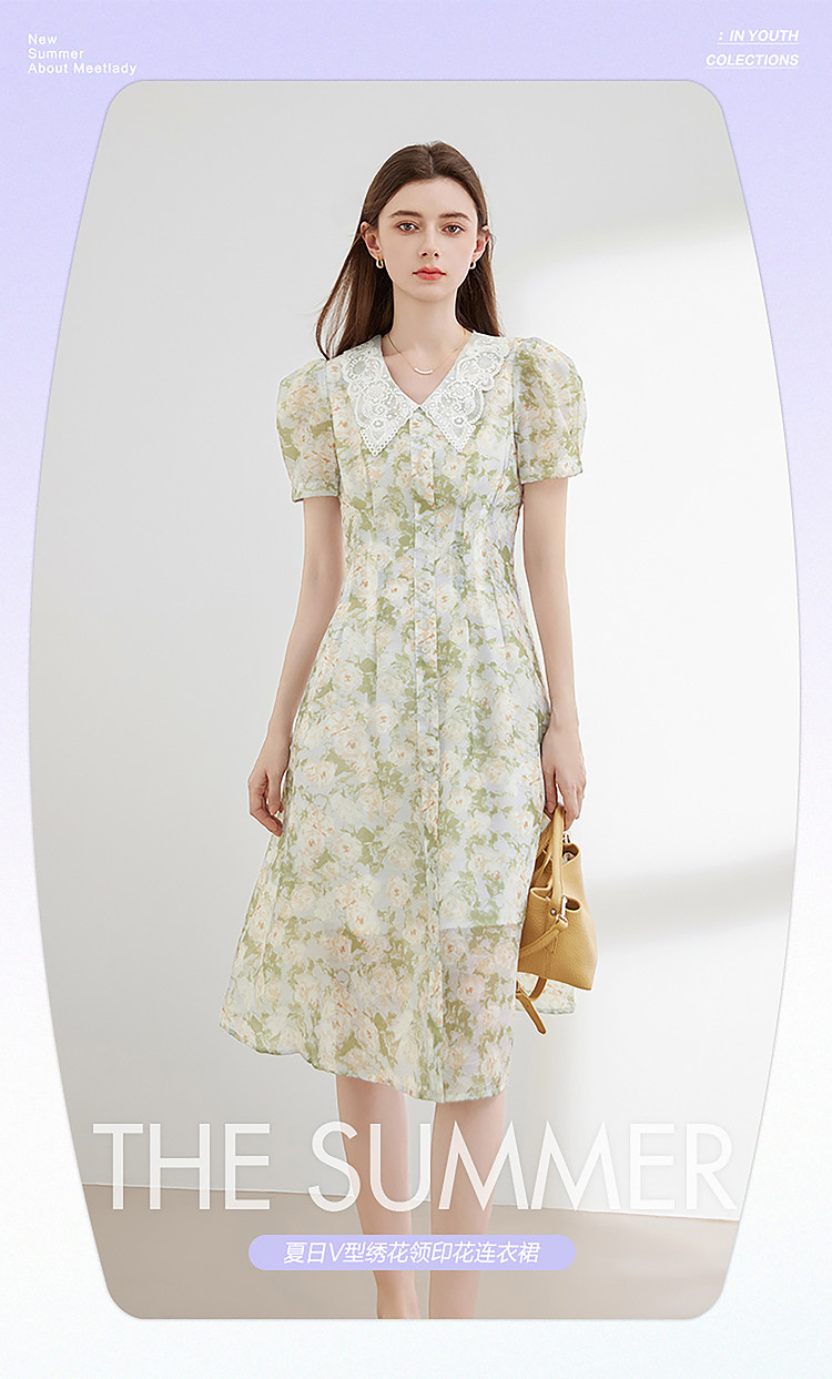 商品名称:【2024夏季】法式绣花领碎花连衣裙女气质收腰泡泡袖长裙 487828