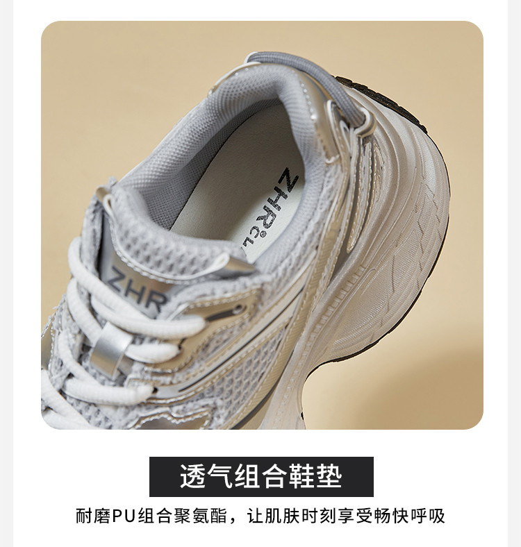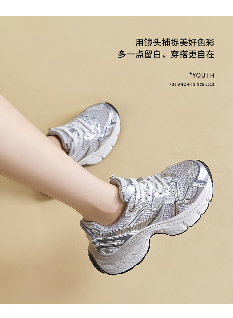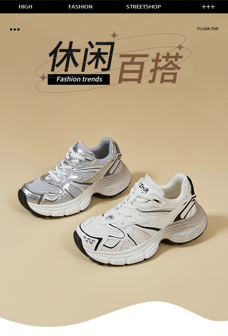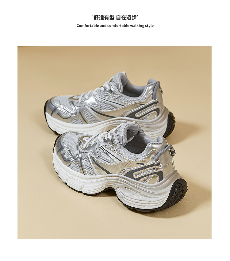 【秒增5cm】透气网面厚底增高老爹鞋百搭休闲运动鞋春秋款女鞋 070080