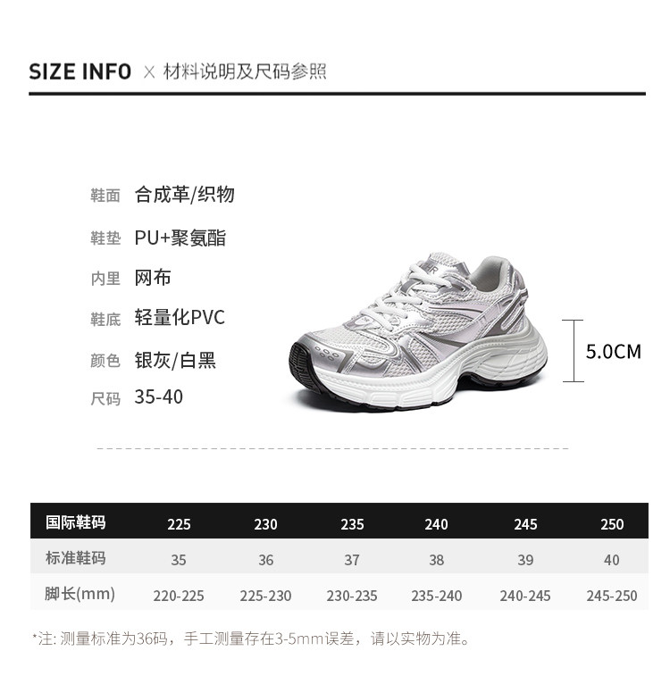 商品名称:【秒增5cm】透气网面厚底增高老爹鞋百搭休闲运动鞋春秋款女鞋 070080