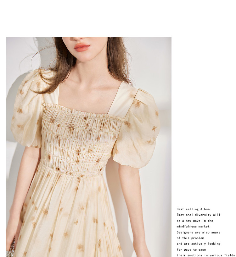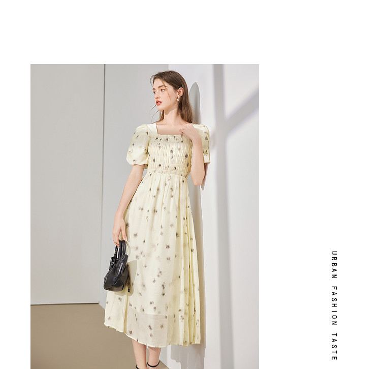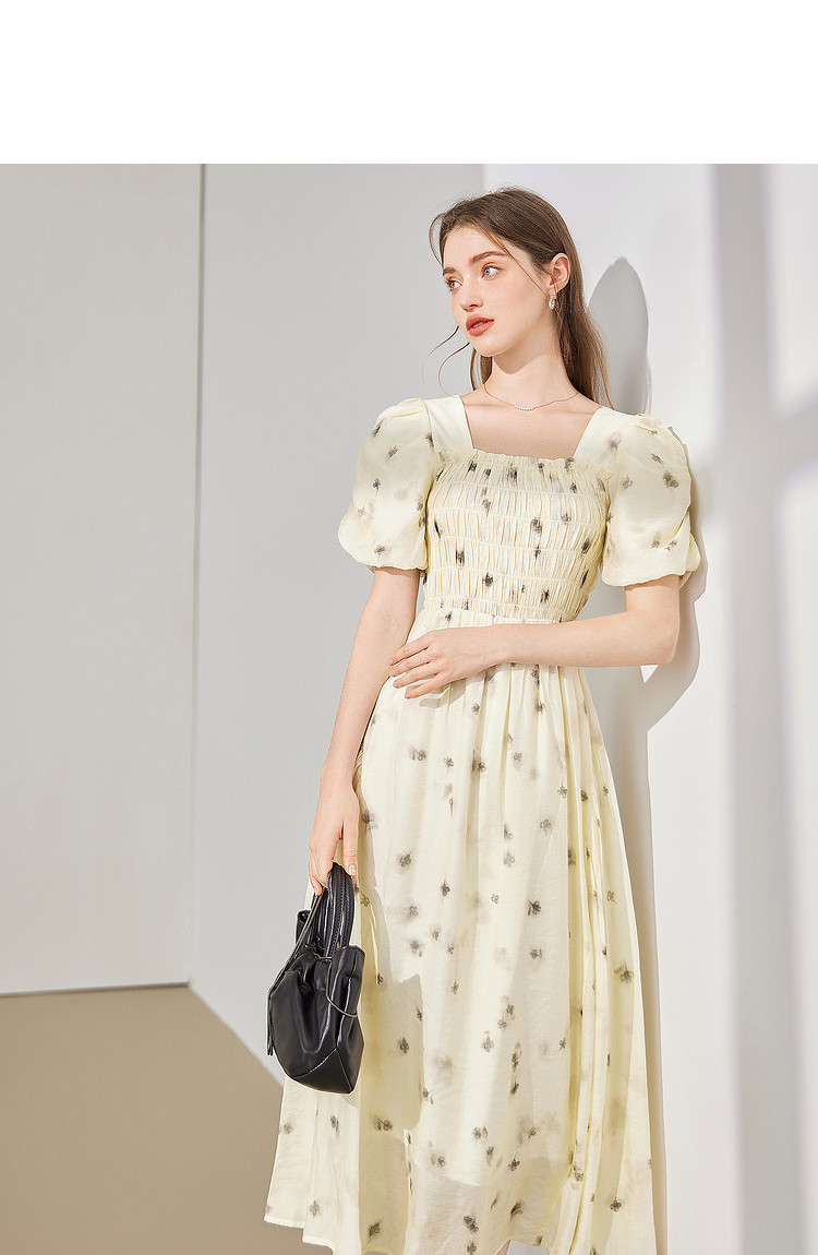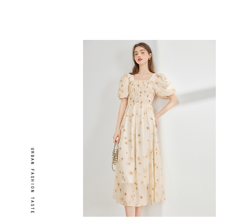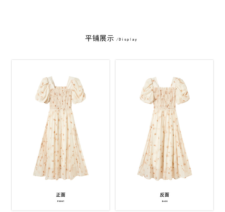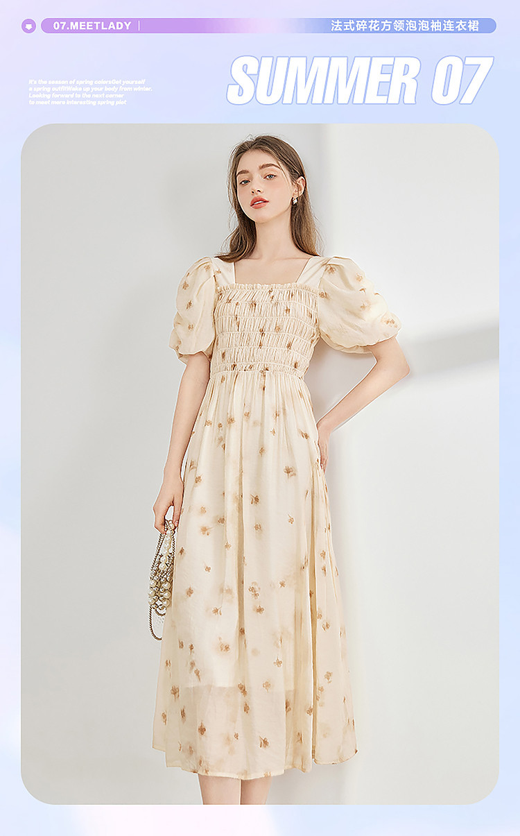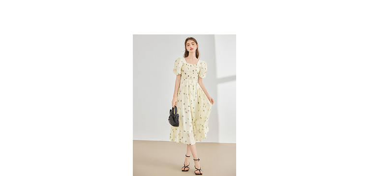 商品名称:【2024夏季】茶歇法式方领碎花连衣裙泡泡袖显瘦中长款仙女裙 979540