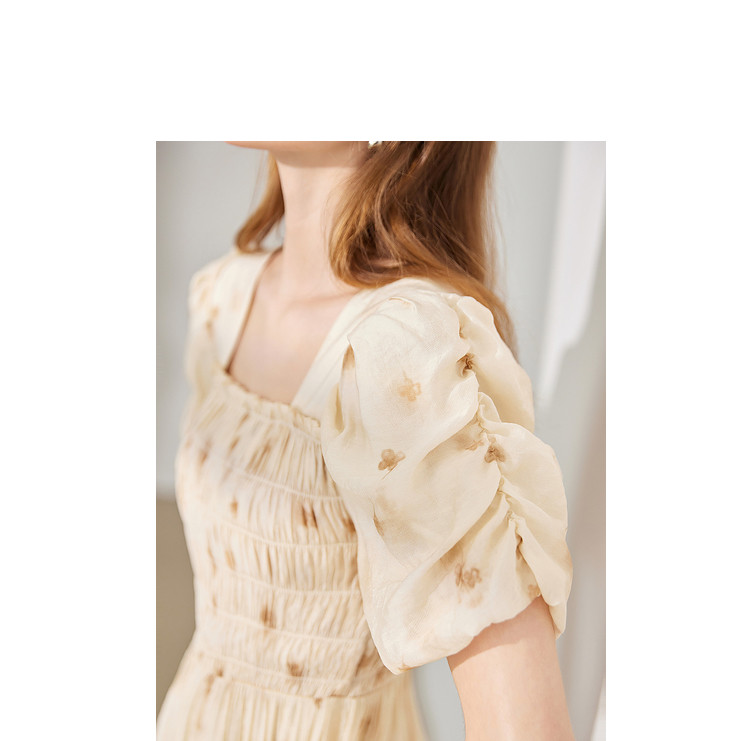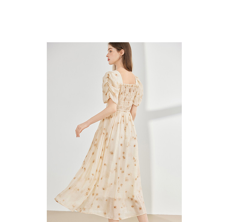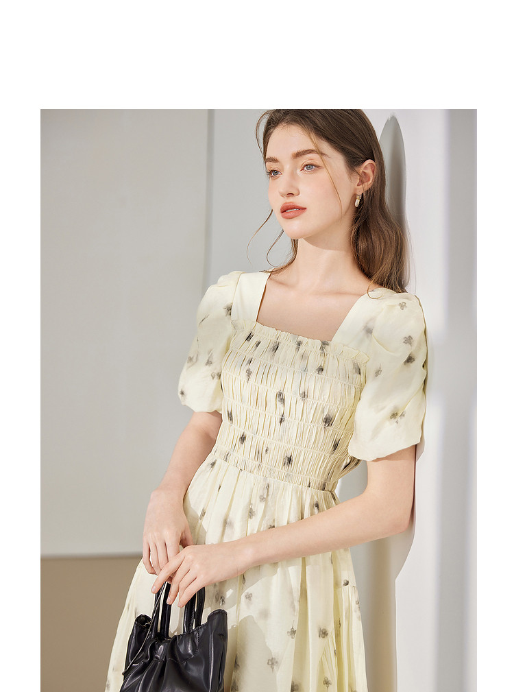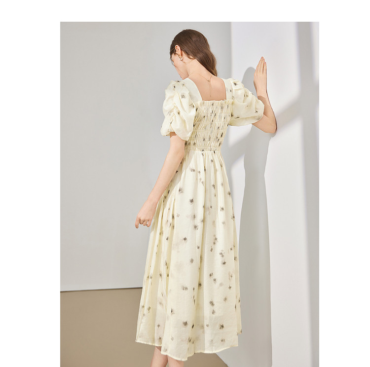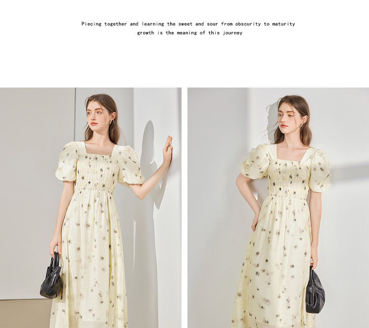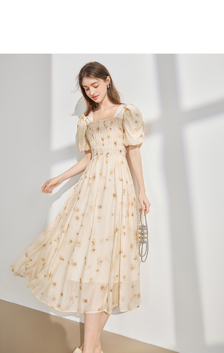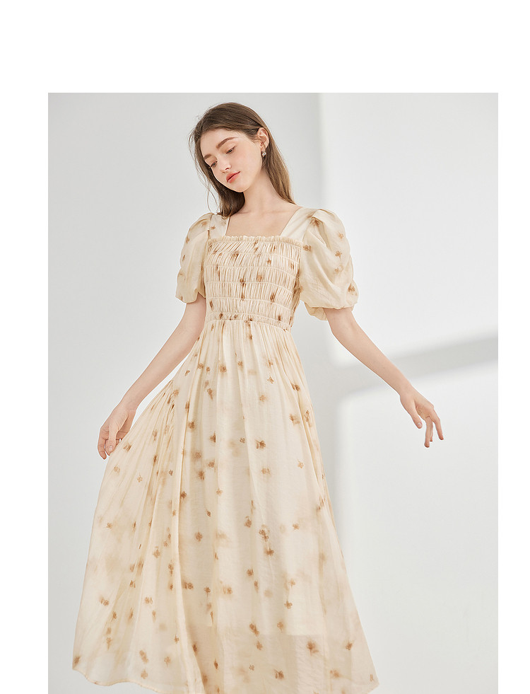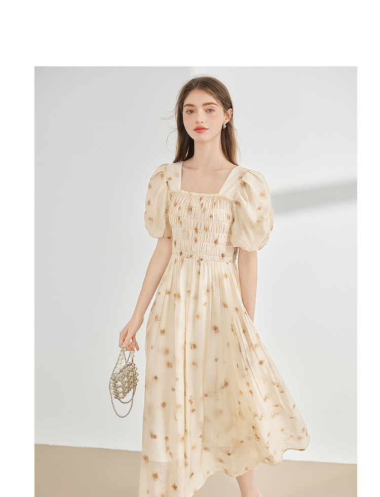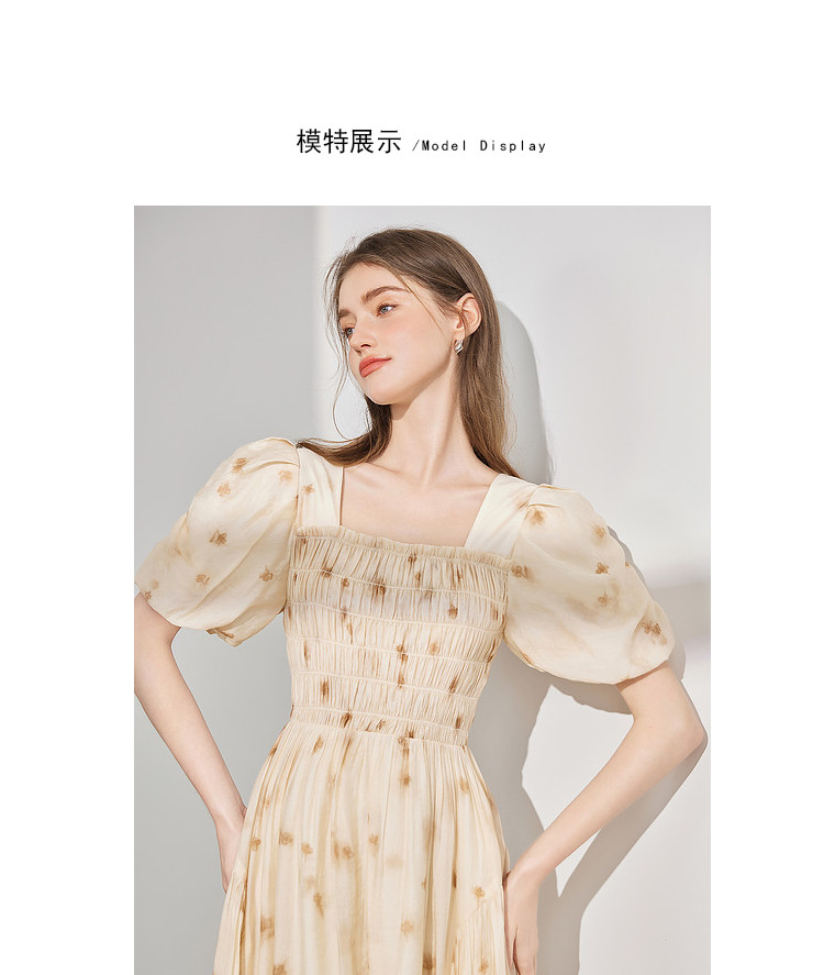 【2024夏季】茶歇法式方领碎花连衣裙泡泡袖显瘦中长款仙女裙 979540