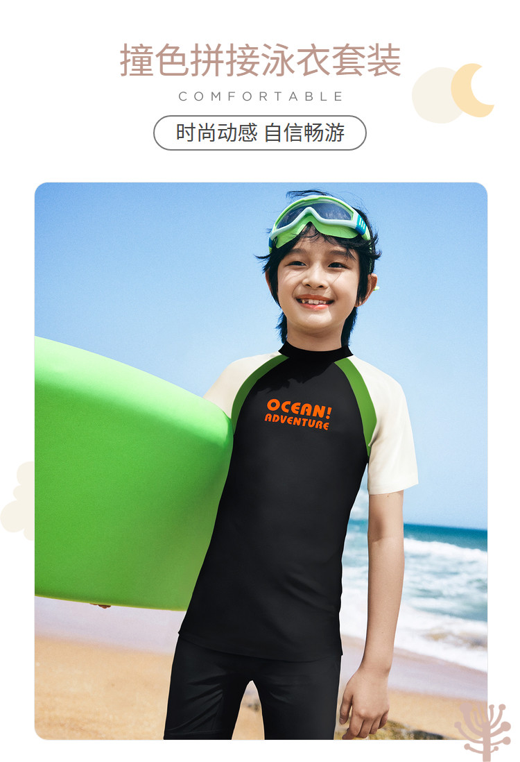 商品名称:防晒UPF50+男童泳衣套装中大童青少年分体撞色拼接儿童泳装 442181