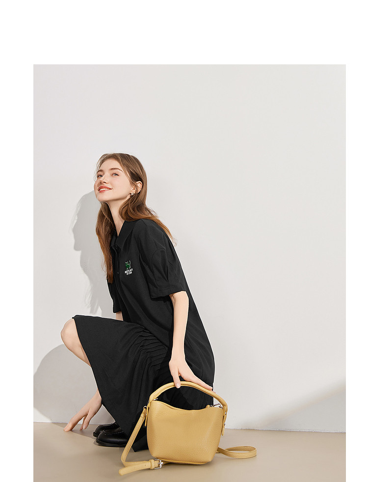 【2024夏季】休闲减龄学院风POLO领拼接百褶连衣裙女 655764