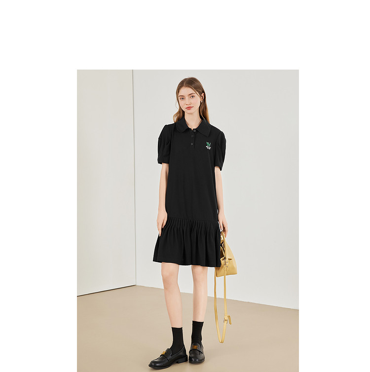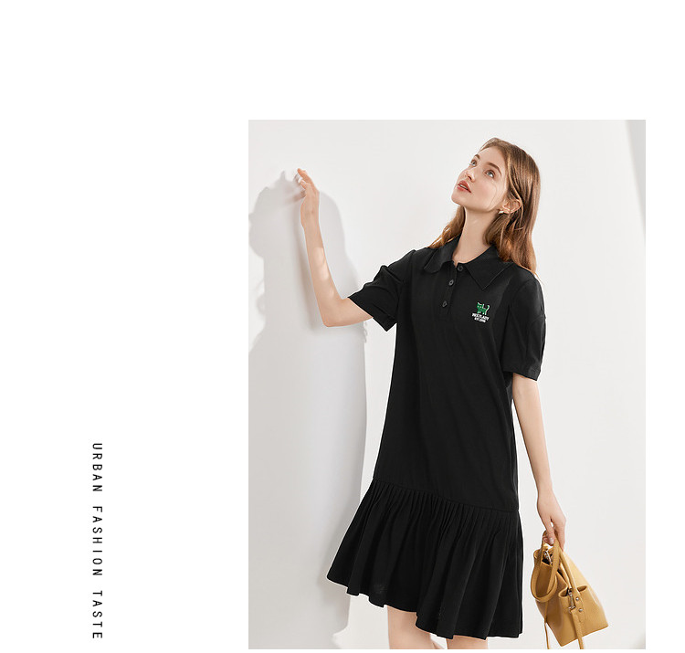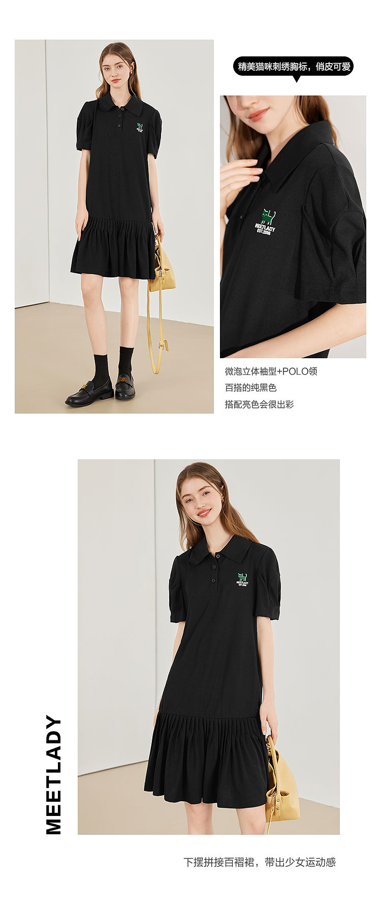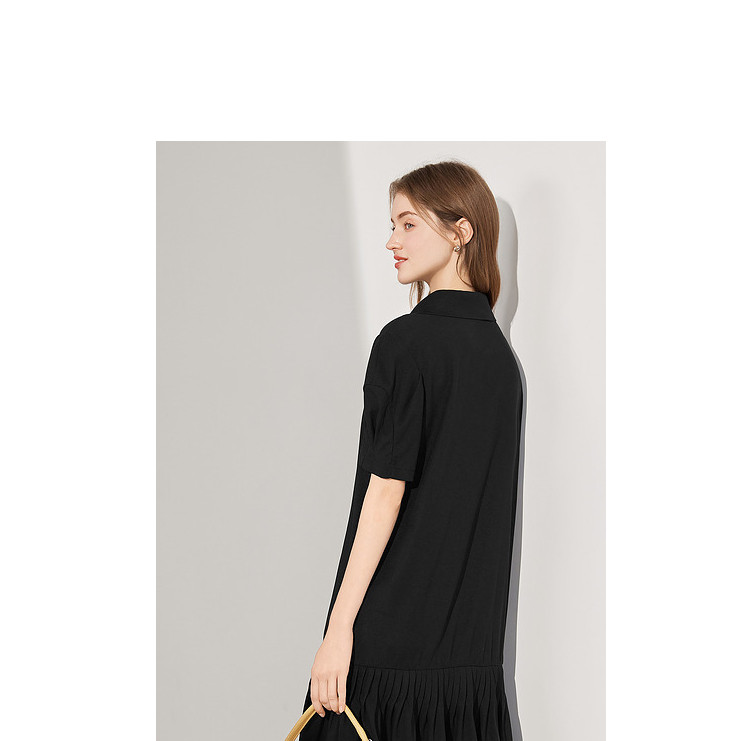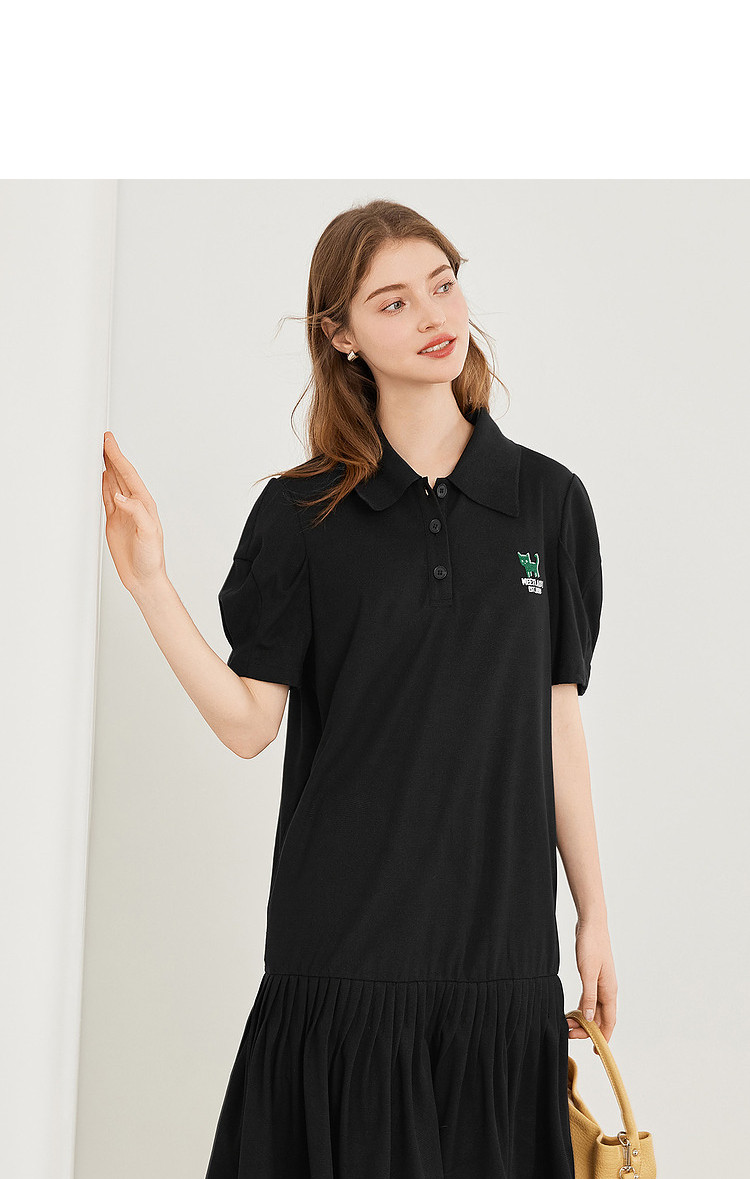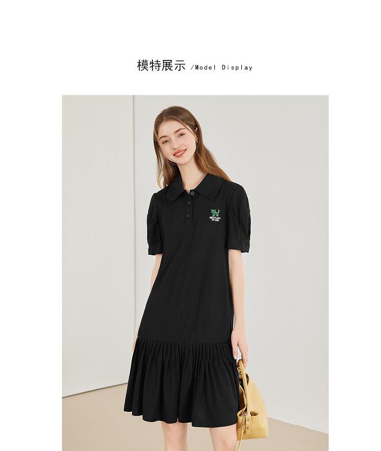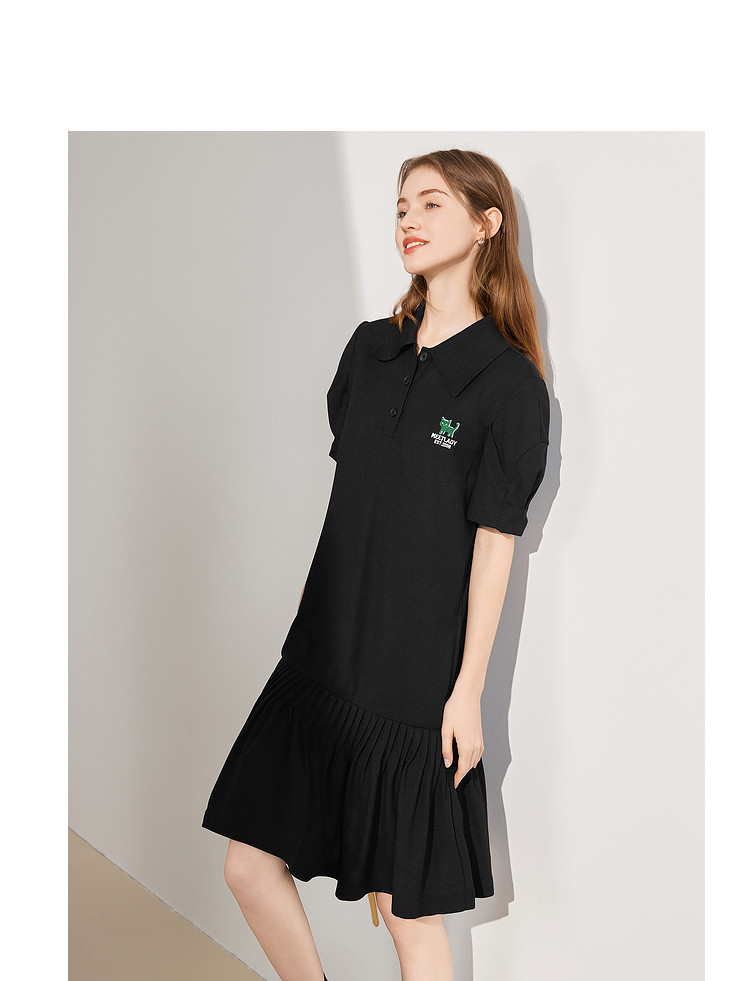 商品名称:【2024夏季】休闲减龄学院风POLO领拼接百褶连衣裙女 655764