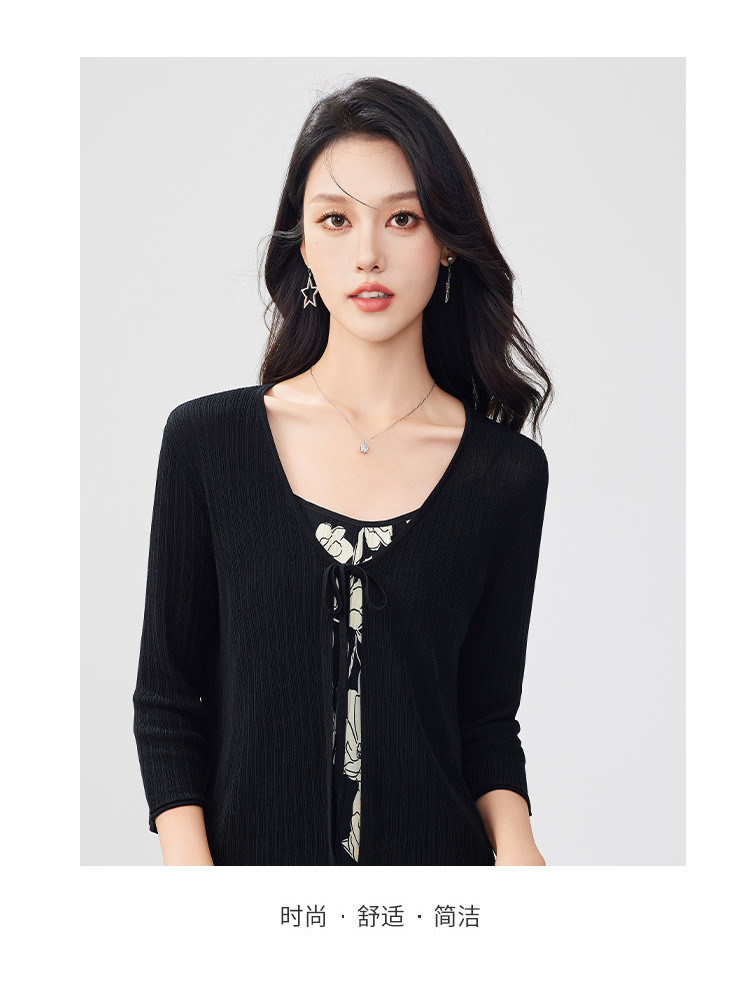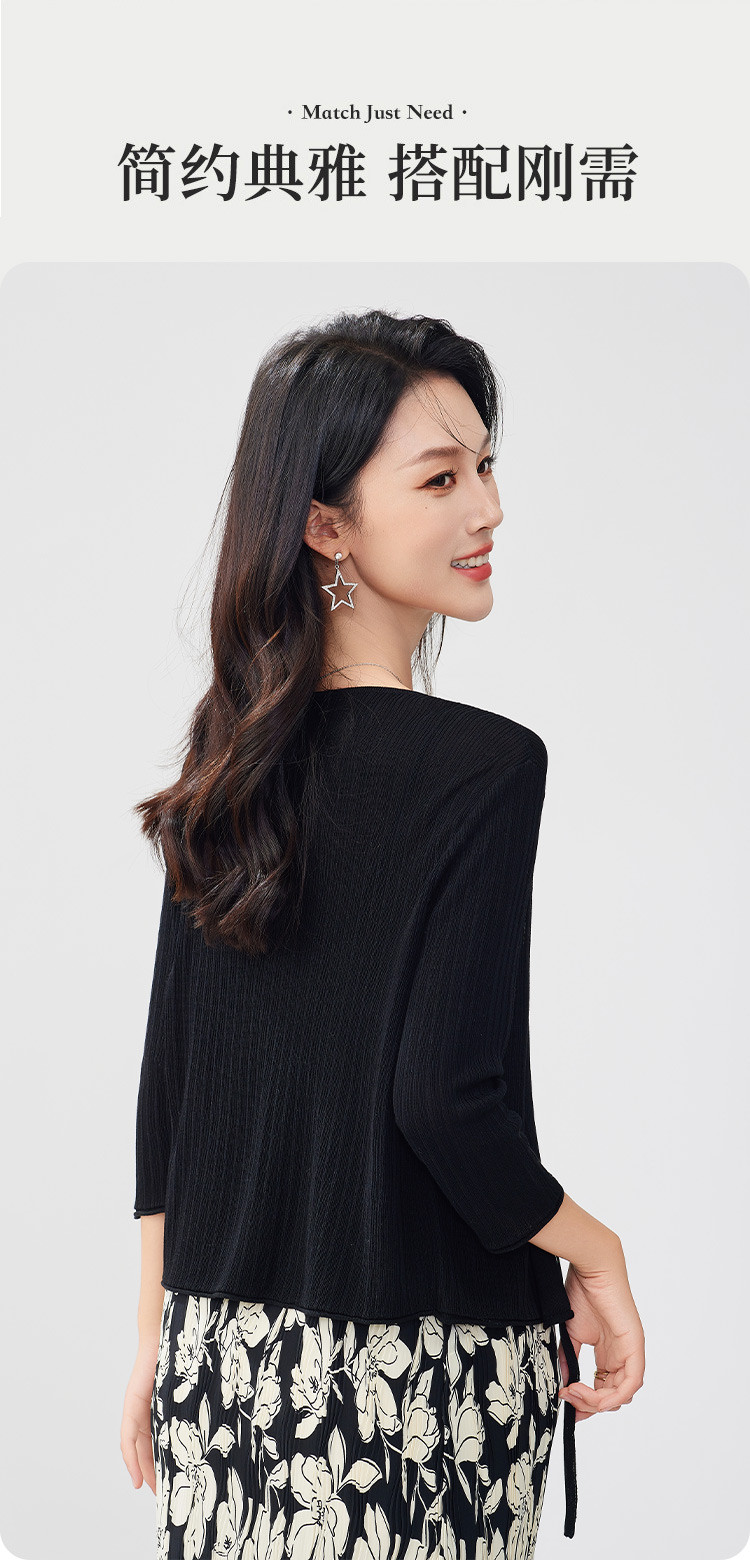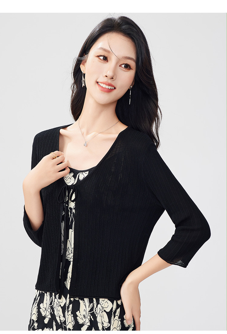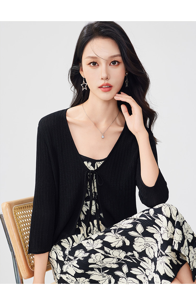 商品名称:【含桑蚕丝含莱赛尔】夏季系带V领七分袖轻薄镂空披肩外套女上衣 315551