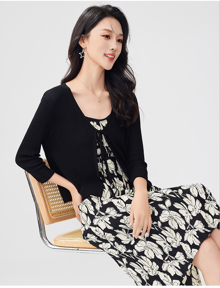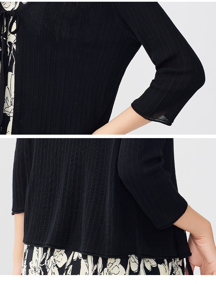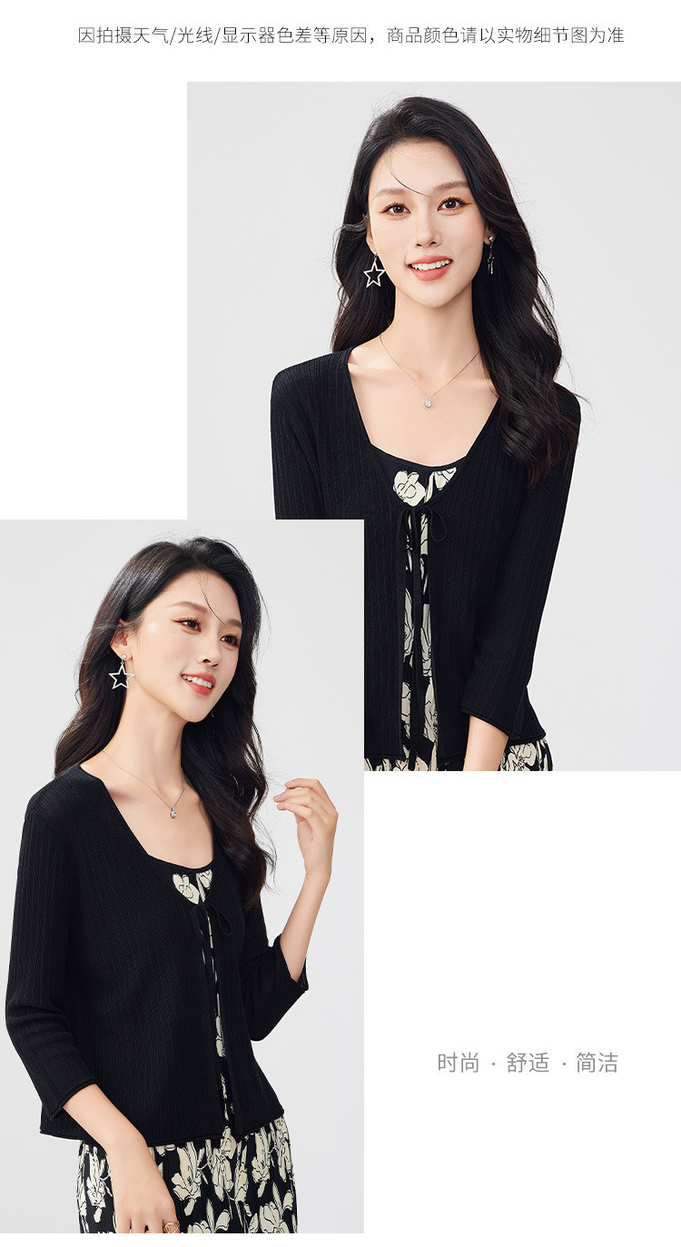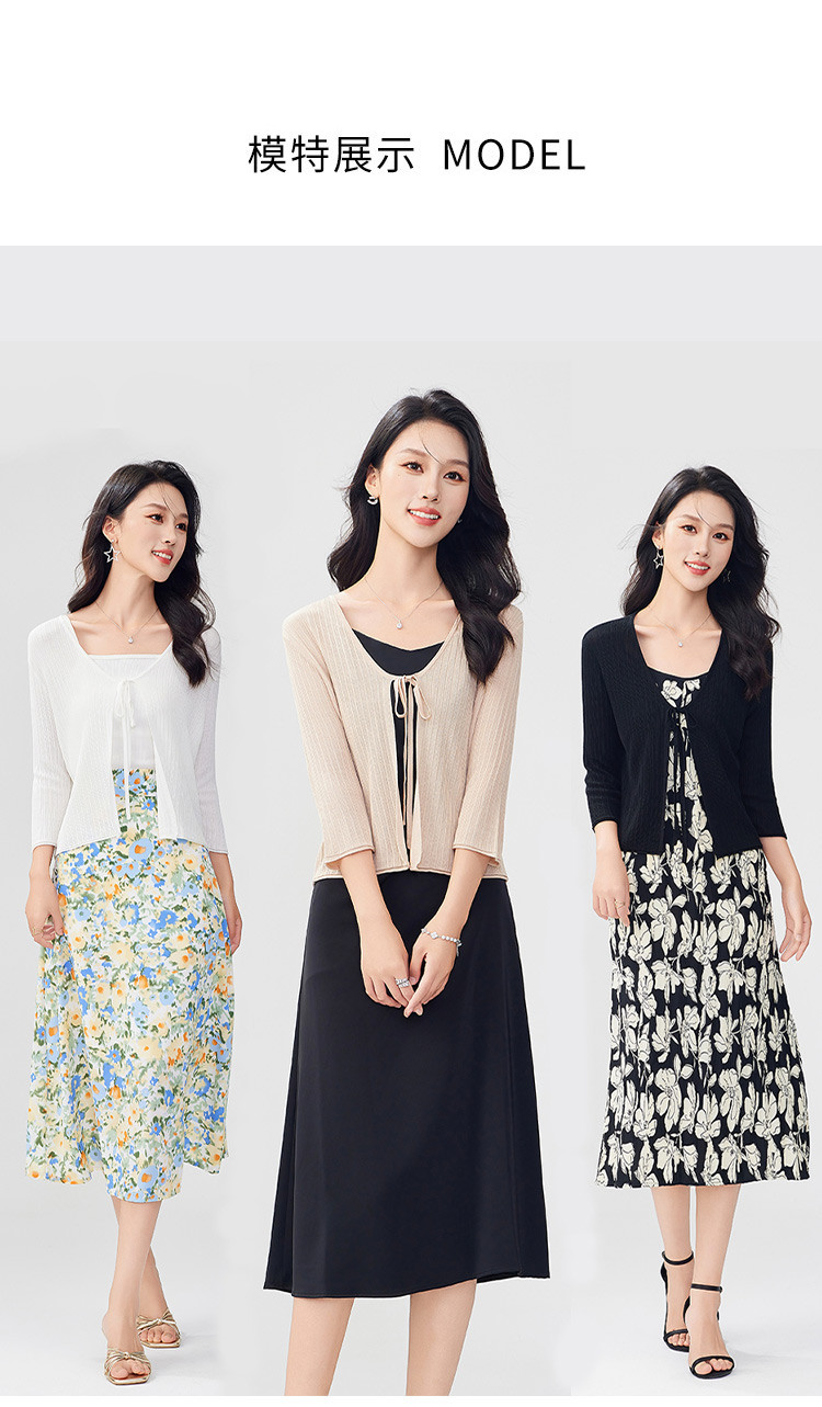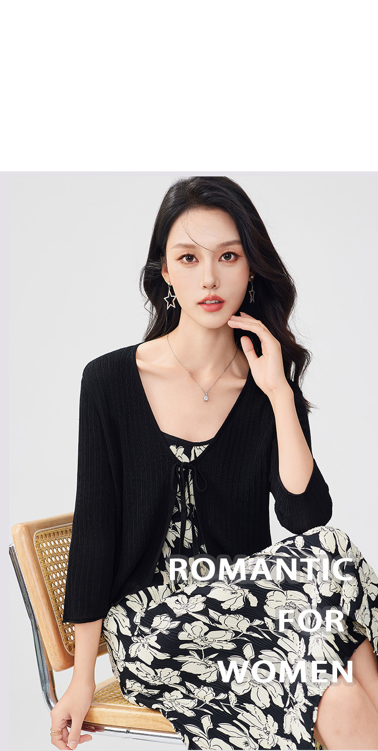 商品名称:【含桑蚕丝含莱赛尔】夏季系带V领七分袖轻薄镂空披肩外套女上衣 315551