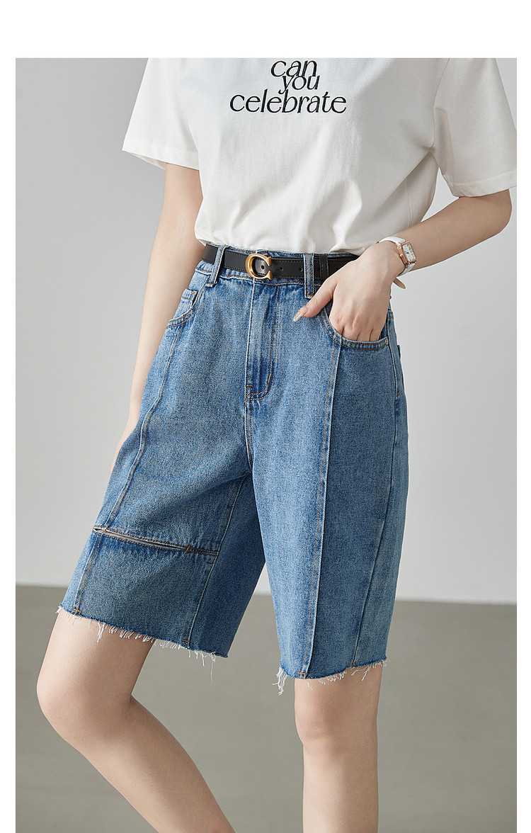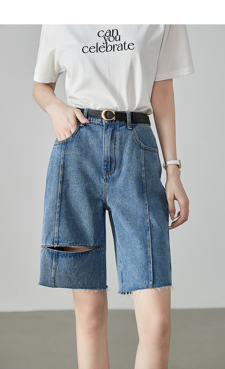 【棉质破洞牛仔五分裤】夏季割破直筒女裤子女式牛仔短裤 826433