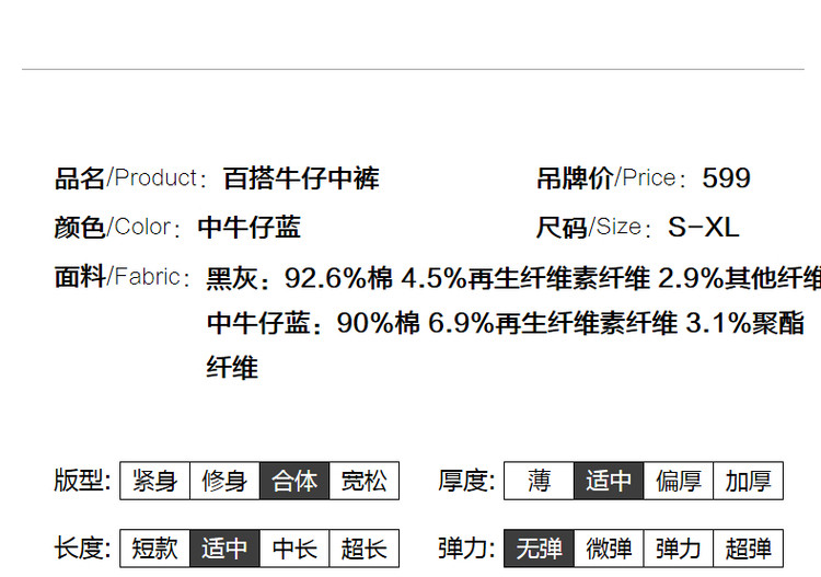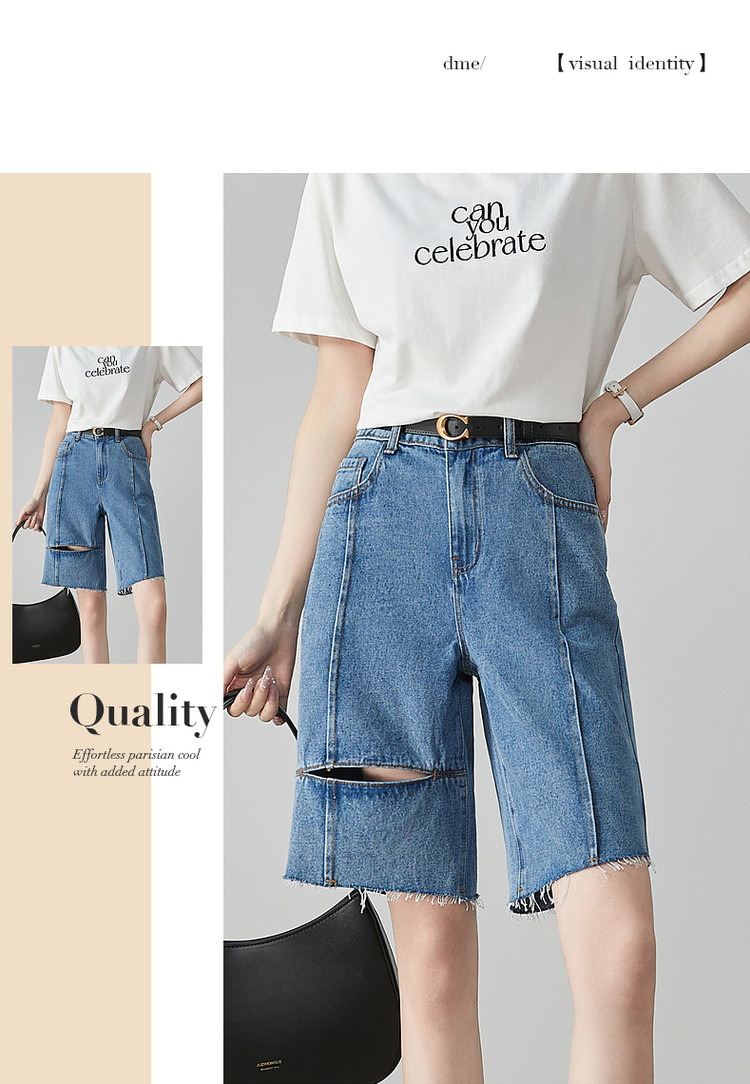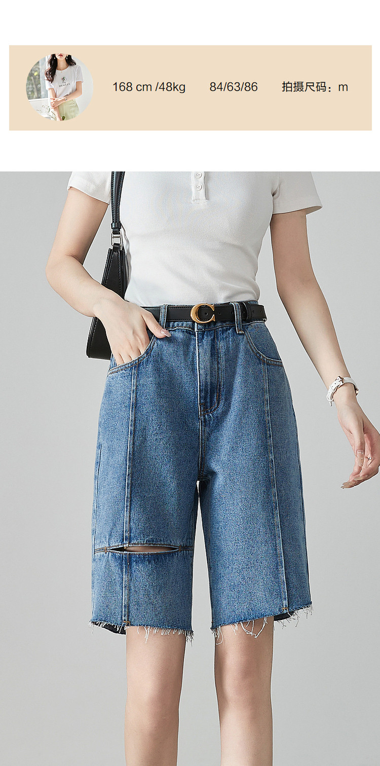 商品名称:【棉质破洞牛仔五分裤】夏季割破直筒女裤子女式牛仔短裤 826433