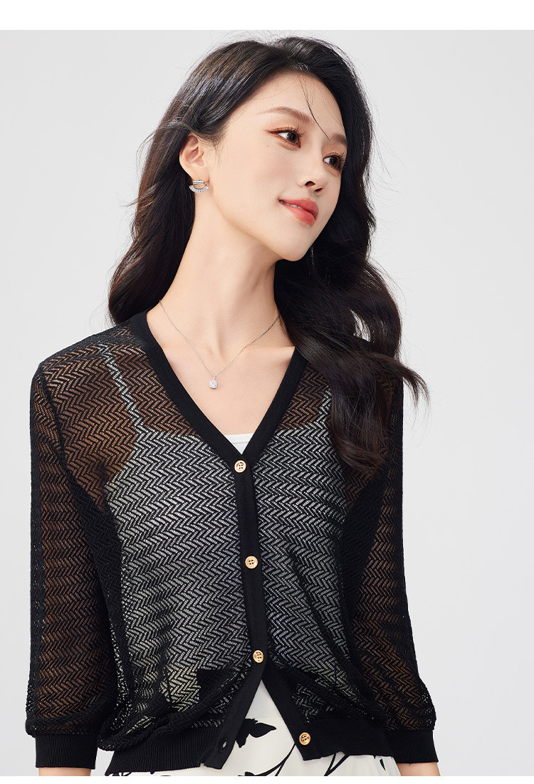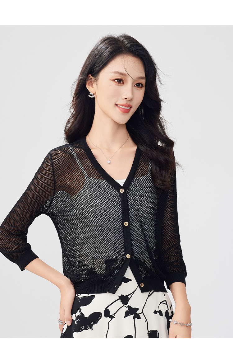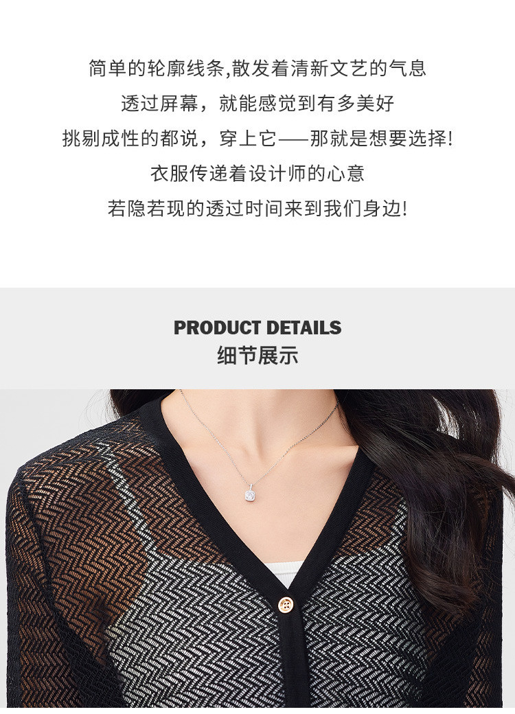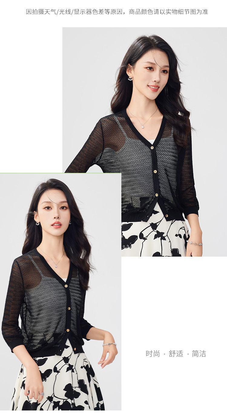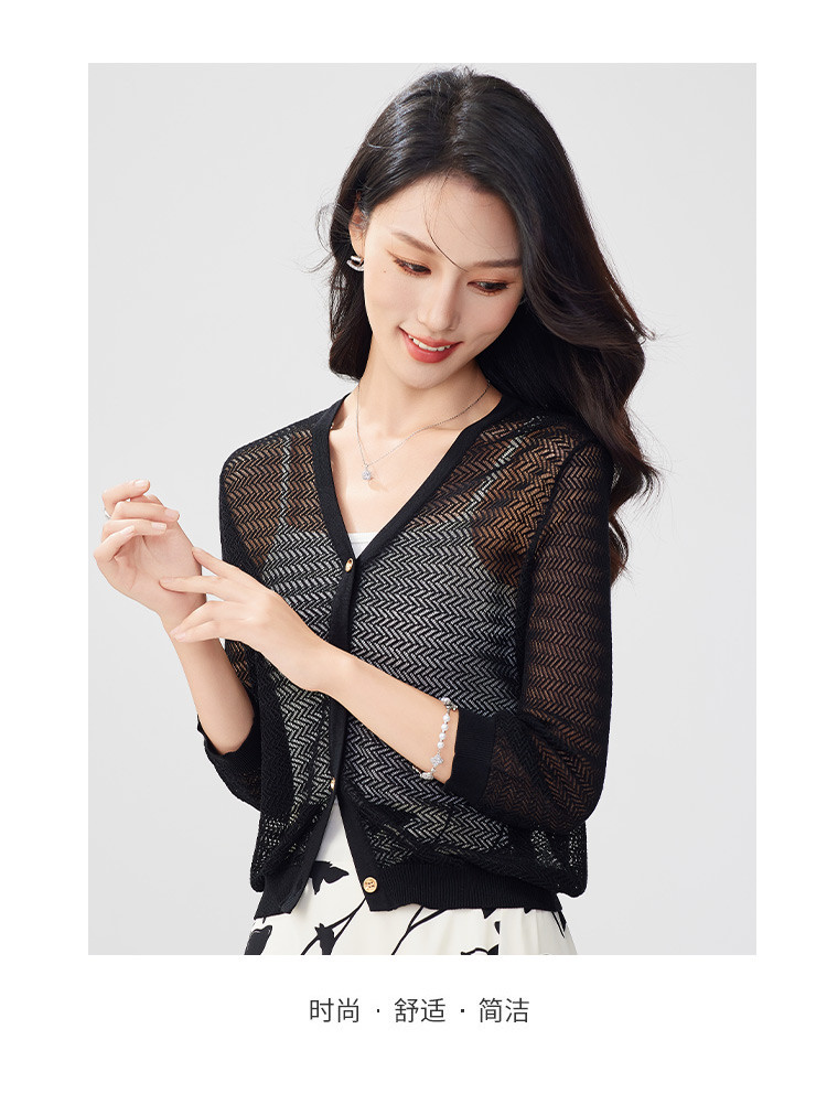 商品名称:【含桑蚕丝含莱赛尔】V领披肩外搭镂空空调衫薄款外套女轻薄夏季 442527