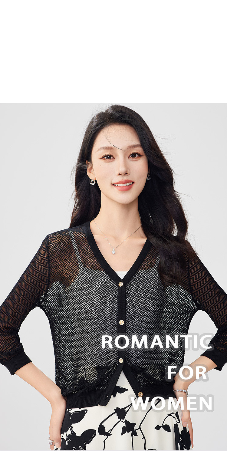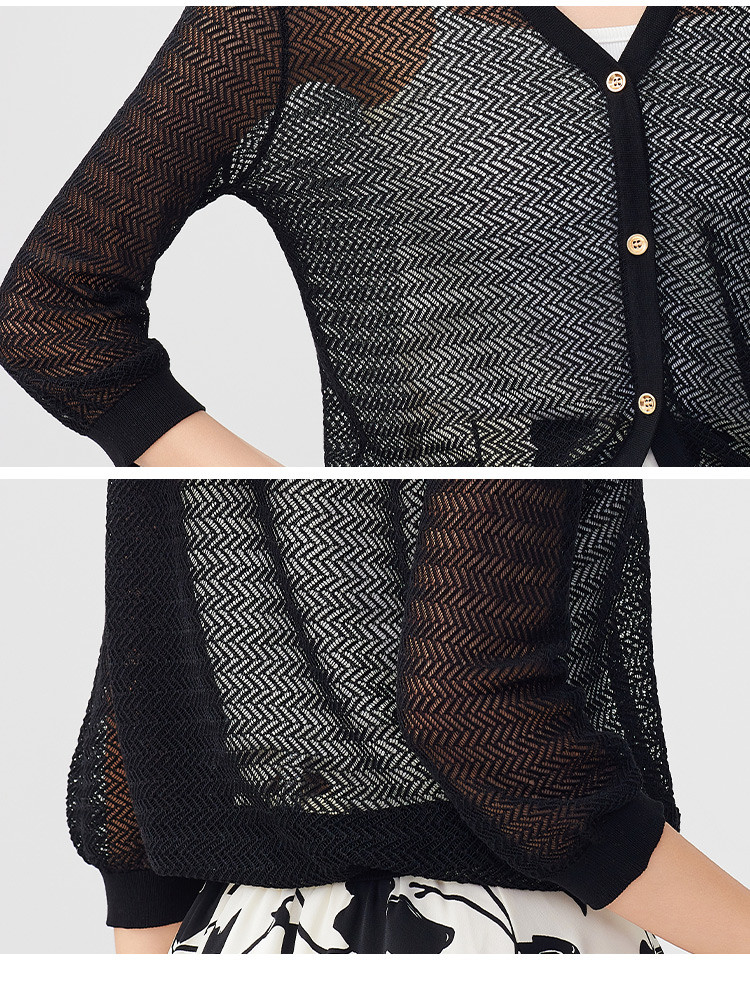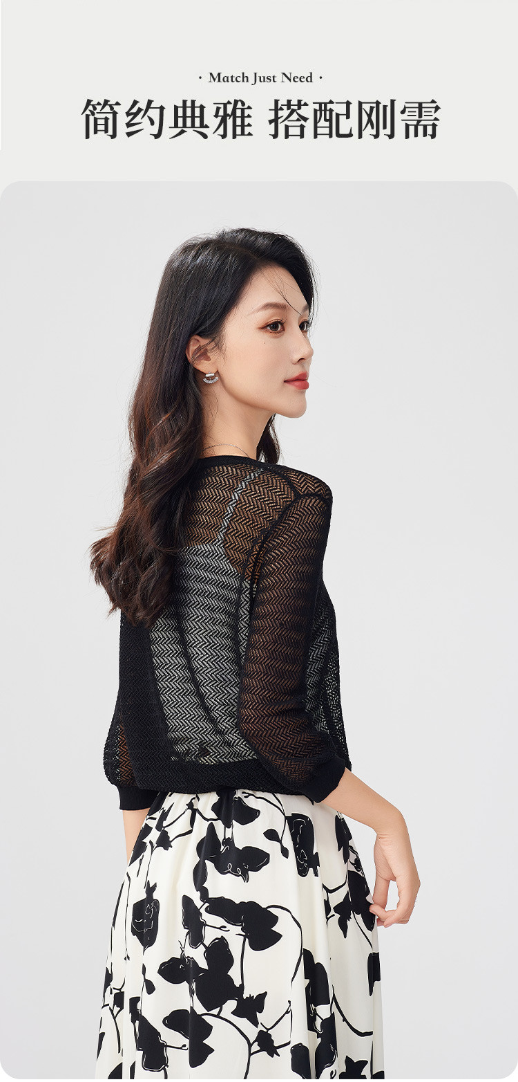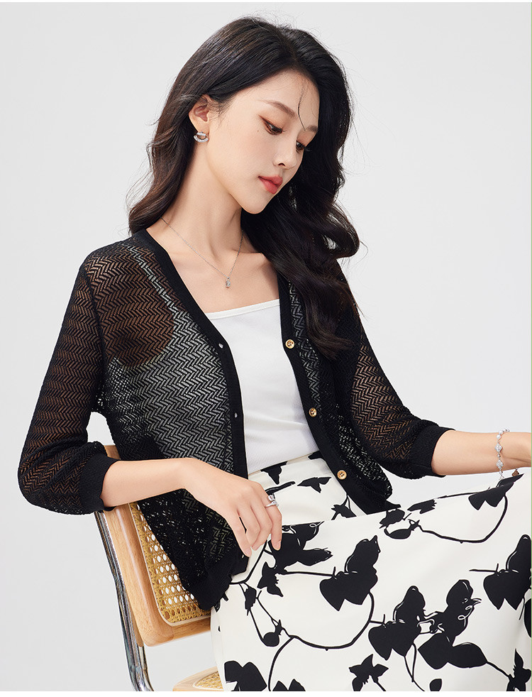 商品名称:【含桑蚕丝含莱赛尔】V领披肩外搭镂空空调衫薄款外套女轻薄夏季 442527
