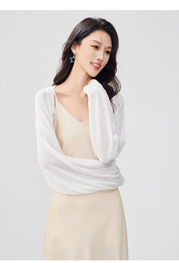 【含桑蚕丝含莱赛尔】短款小个子披肩外搭长袖针织外套女上衣 256607
