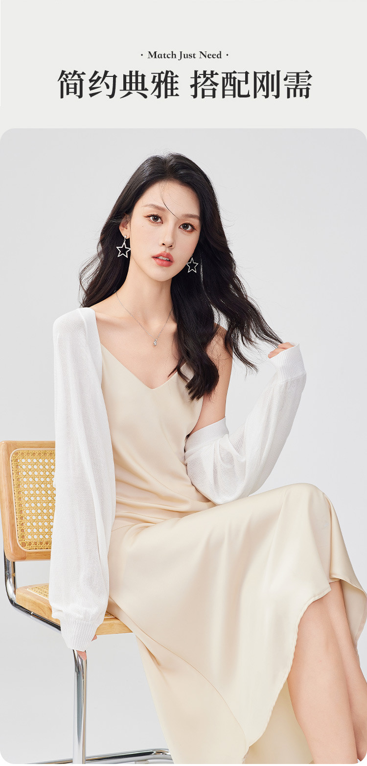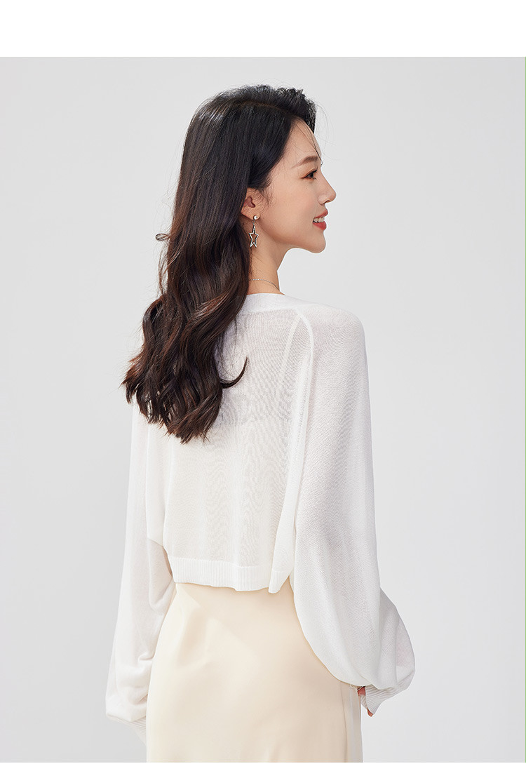 商品名称:【含桑蚕丝含莱赛尔】短款小个子披肩外搭长袖针织外套女上衣 256607