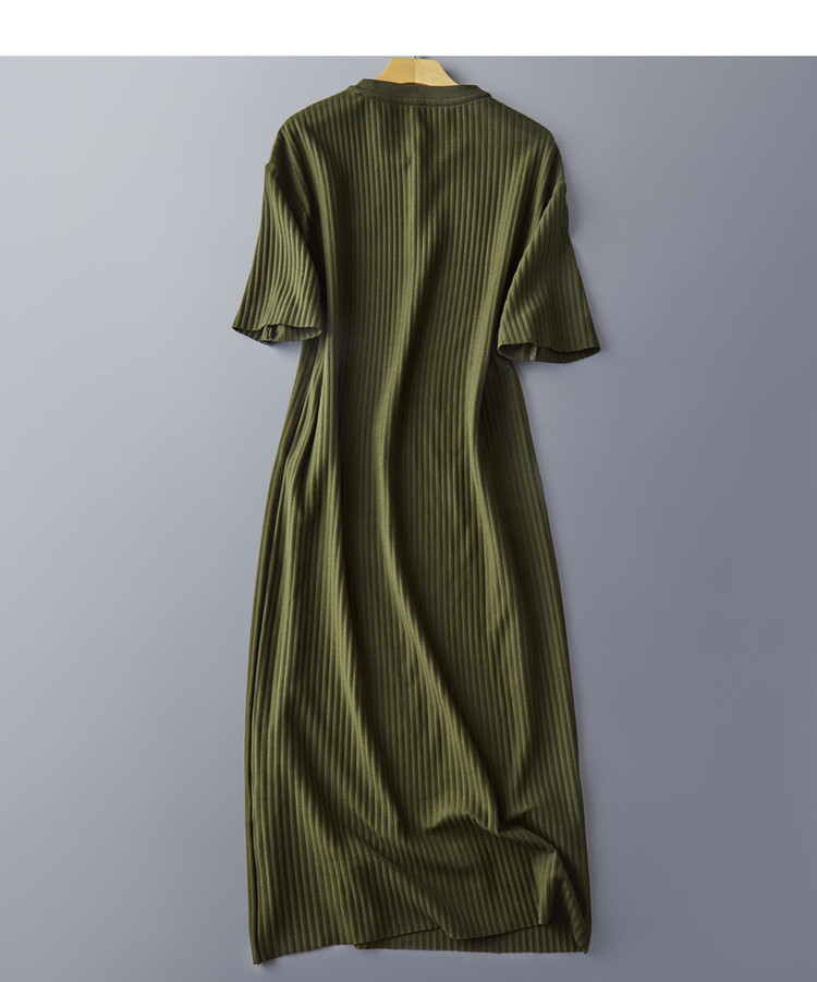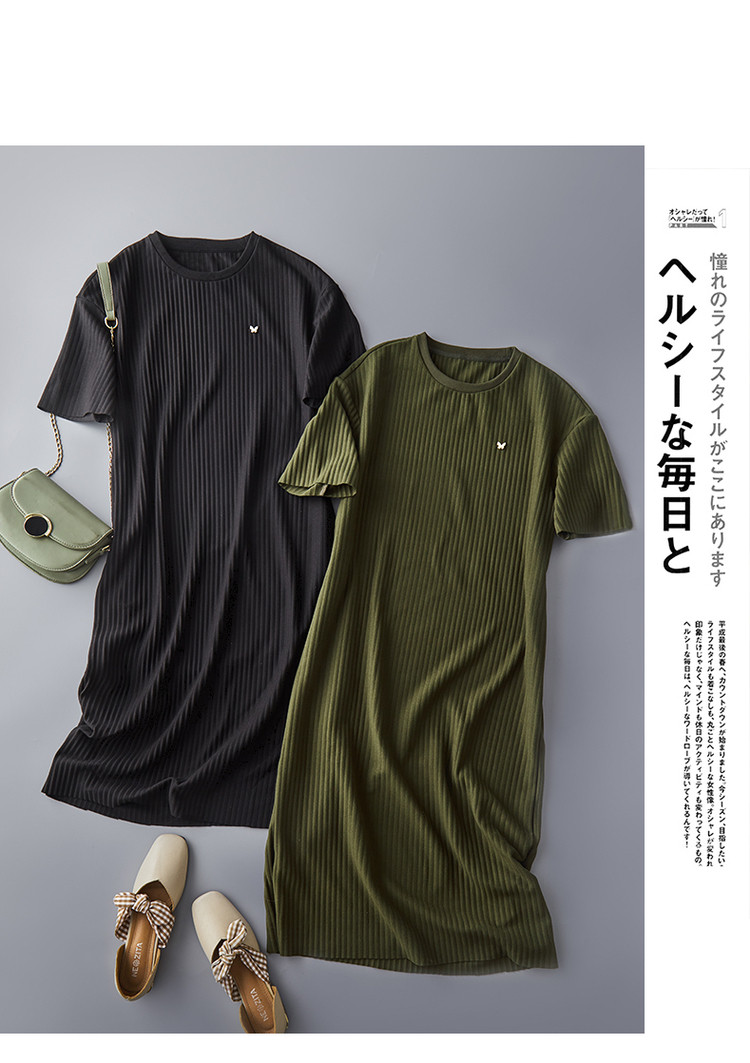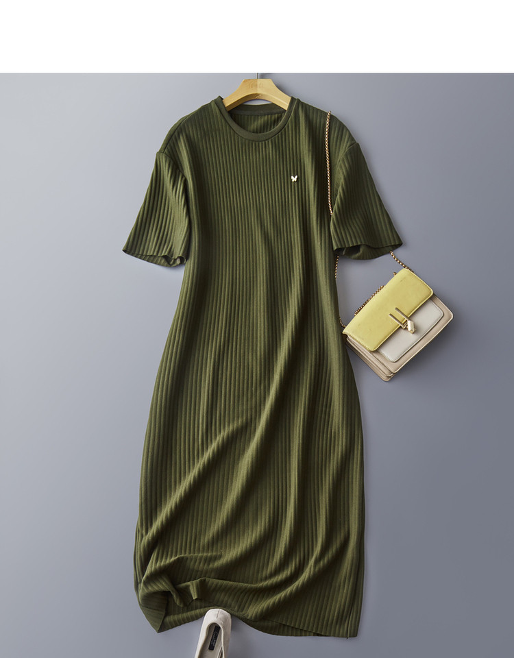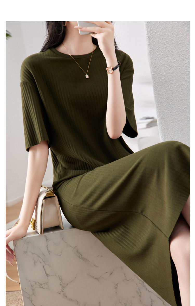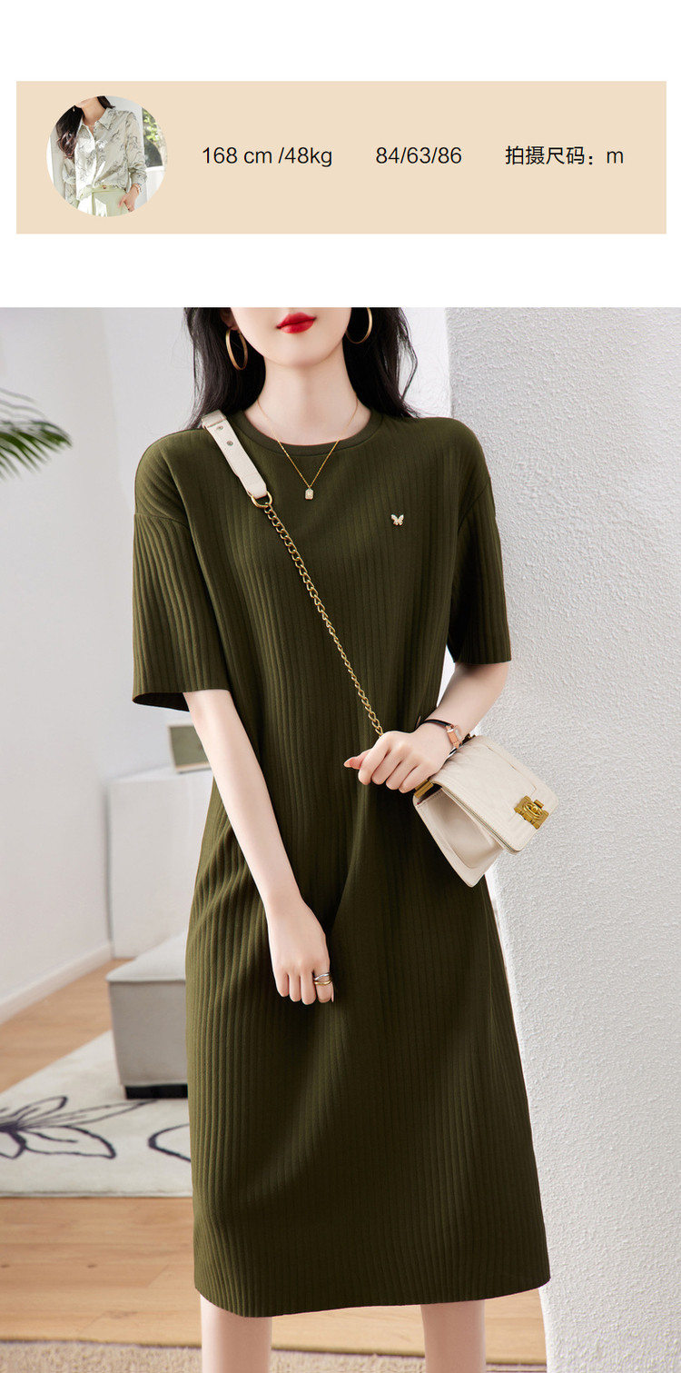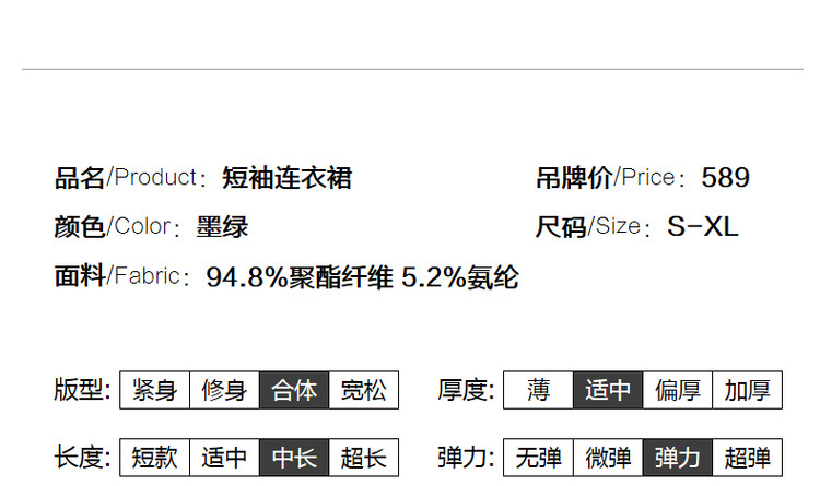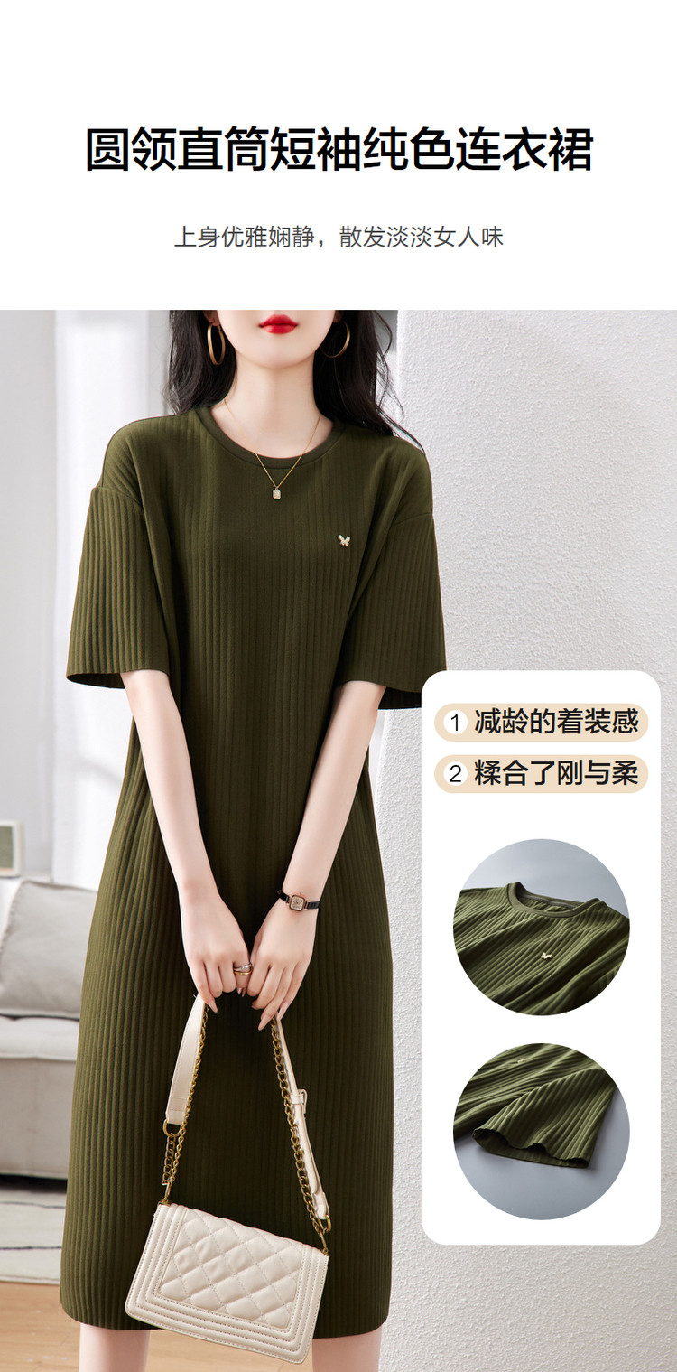 商品名称:【压皱工艺】春秋通勤圆领直筒中腰短袖连衣裙女中长款 174209