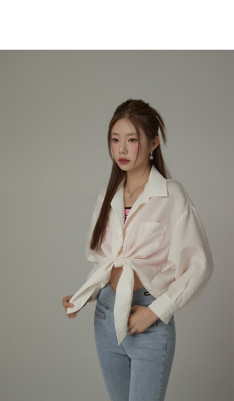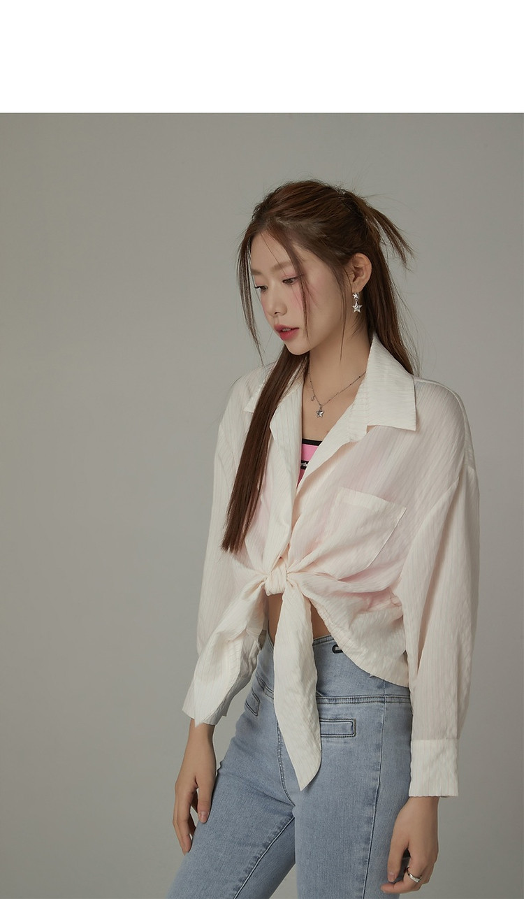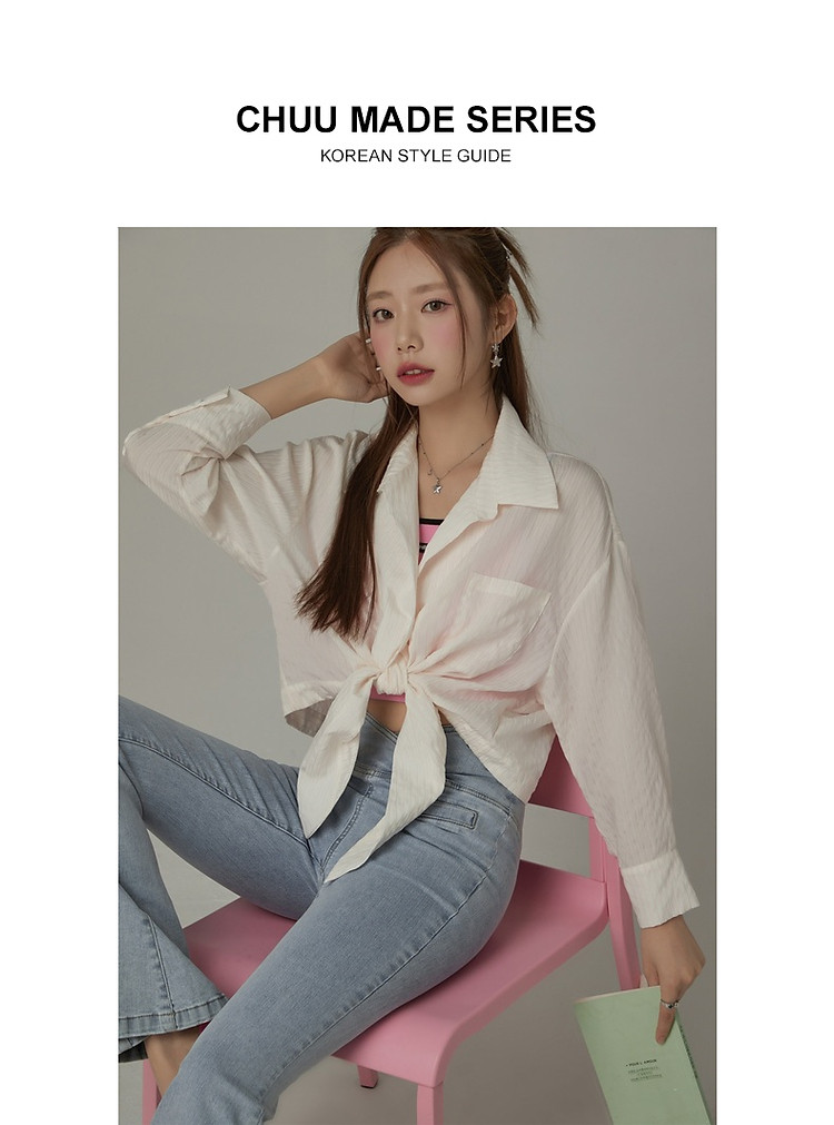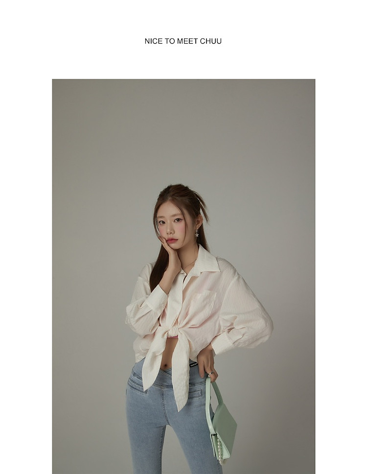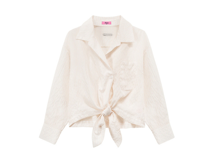 CHUU系带长袖衬衫女士夏小个子宽松短款衬衣上衣 252627