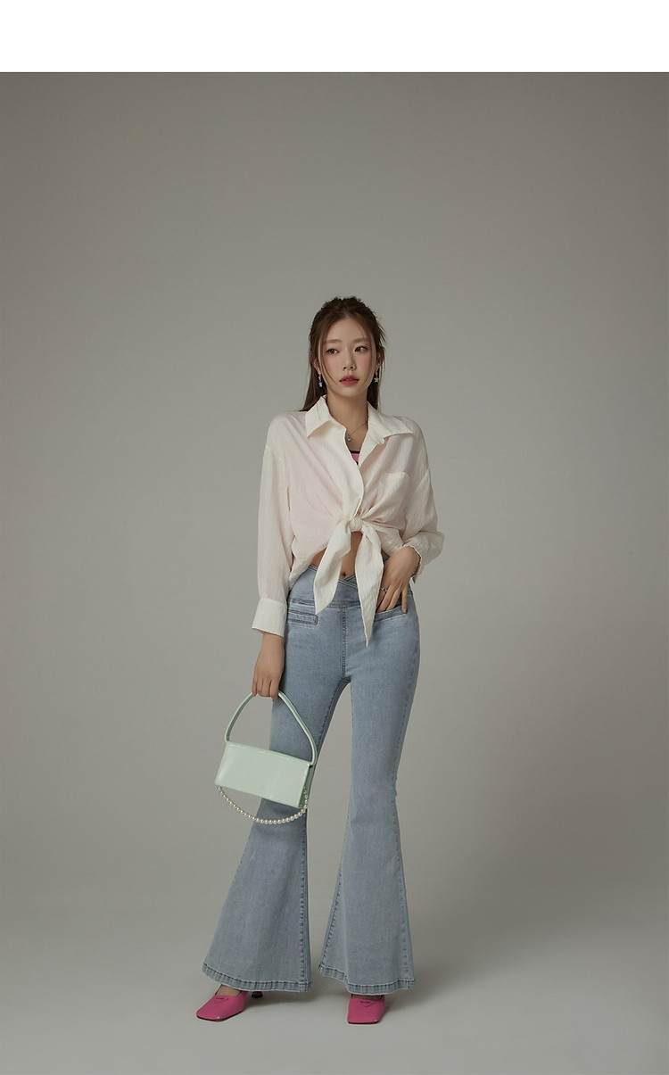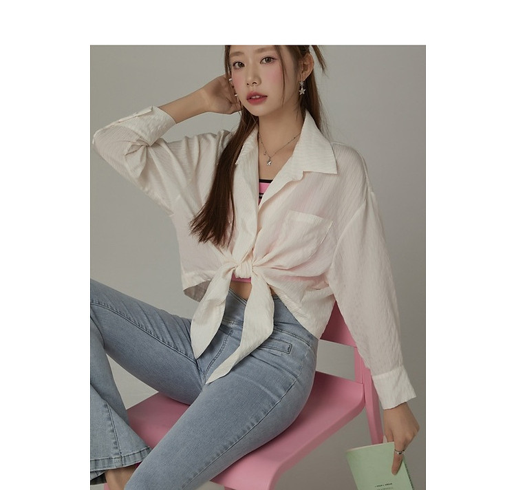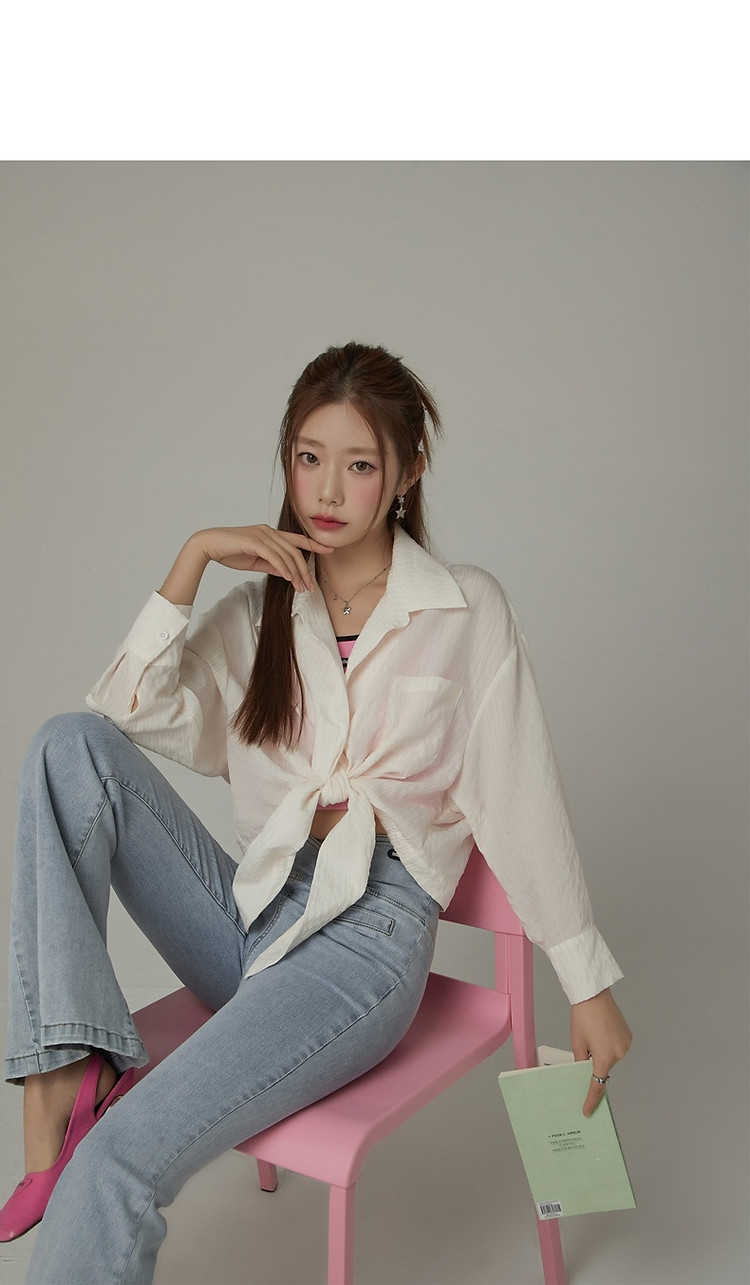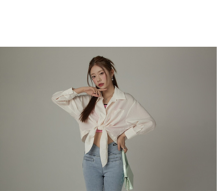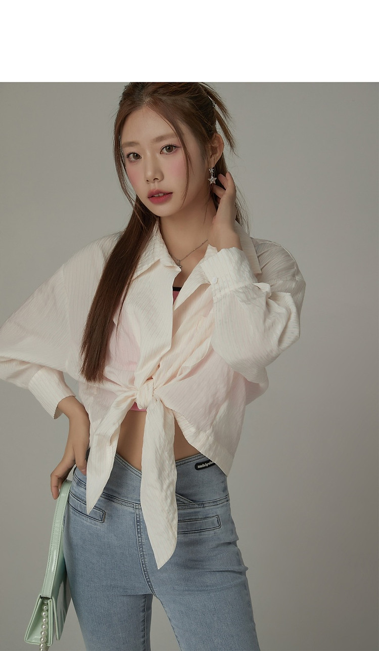 CHUU系带长袖衬衫女士夏小个子宽松短款衬衣上衣 252627